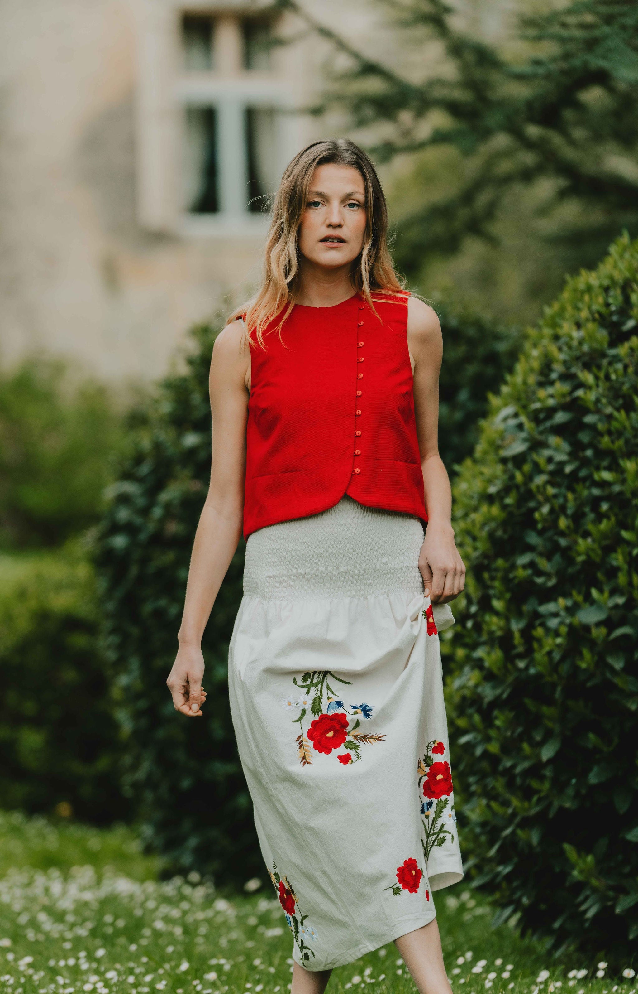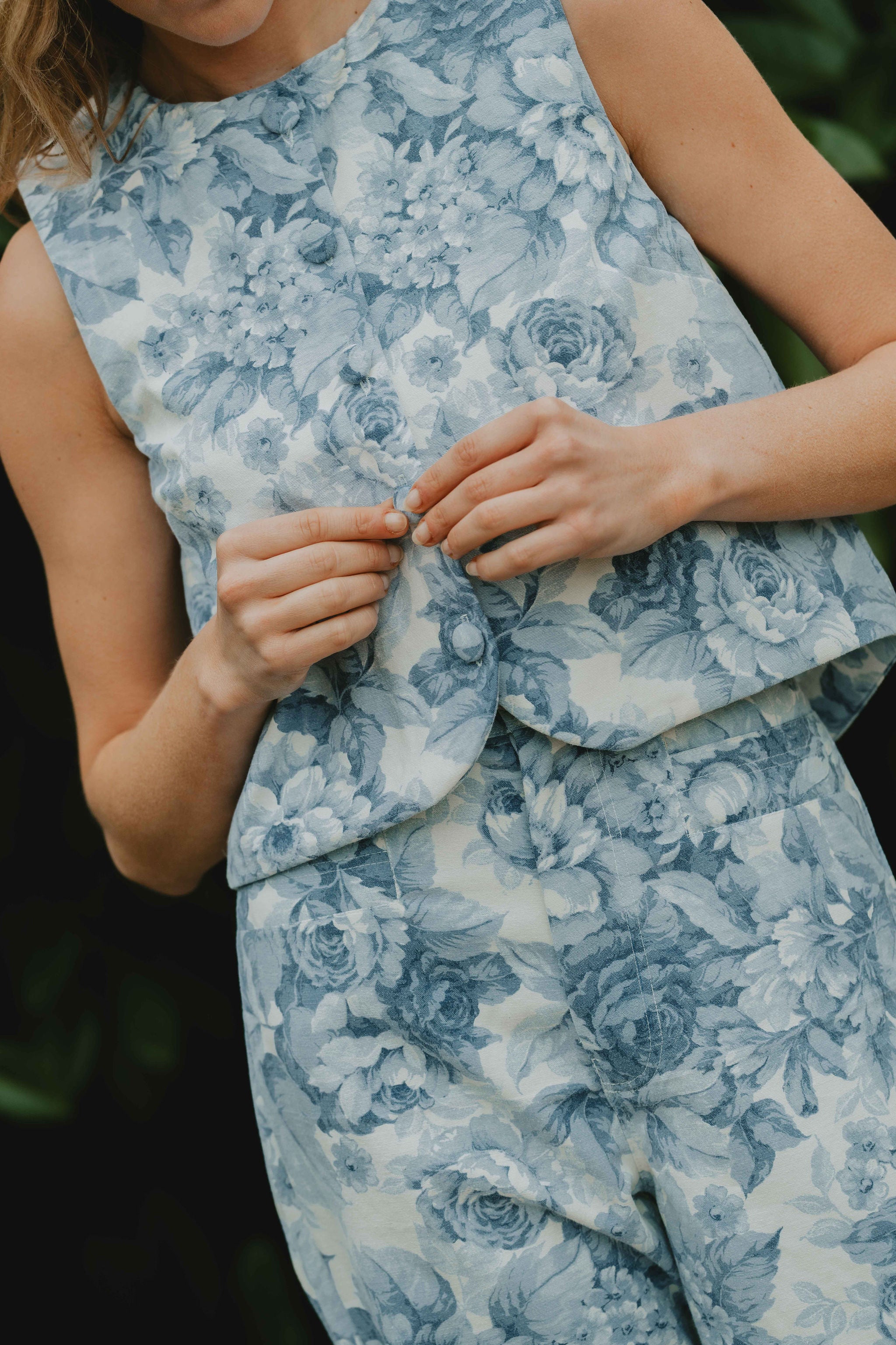 • Ce modèle nécessite peu de métrage : c’est le projet idéal pour valoriser de jolis coupons oubliés ou du linge de maison. Un drap imprimé ou fleuri, ou encore un rideau en coton offriront de beaux motifs parfaits pour l’été.