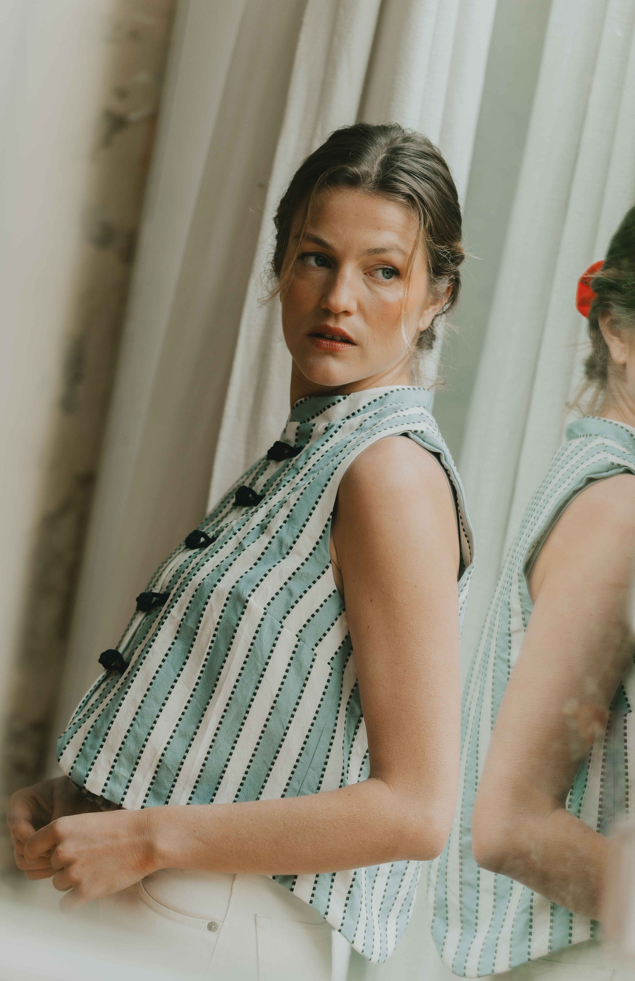 • Optez pour un tissu avec de la tenue (250 à 300 g/m²), comme une toile de coton, un denim léger, un canvas fin ou un coton épais. Ces matières mettront en valeur la structure du modèle tout en conservant un tombé confortable. Évitez les tissus trop fins ou trop fluides.