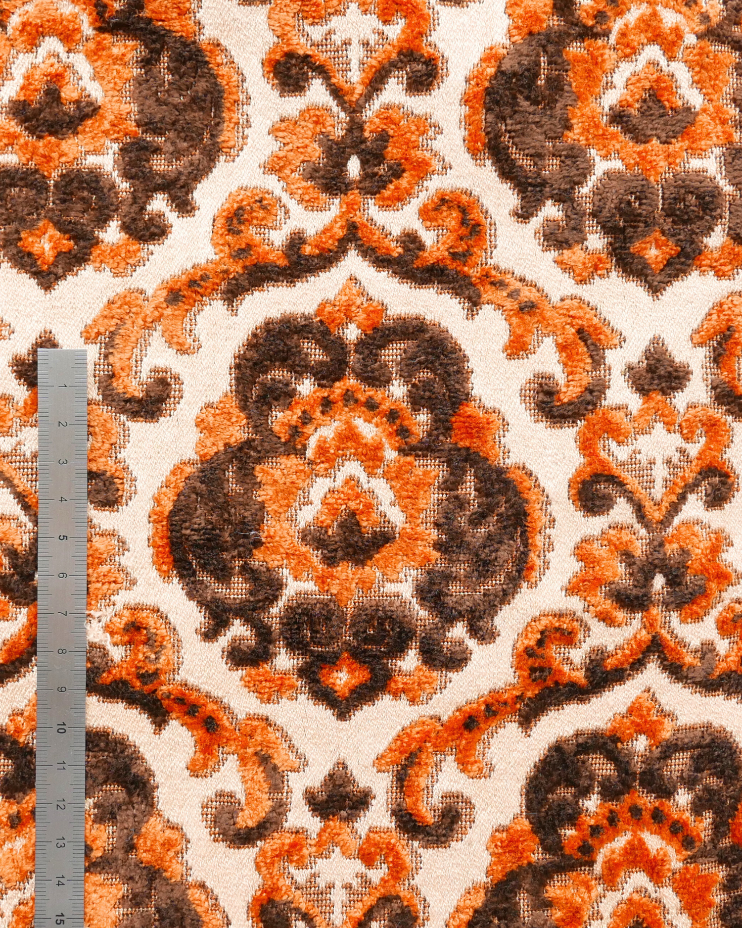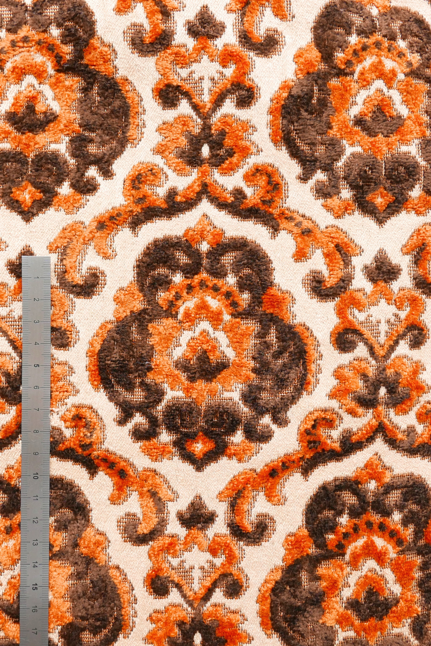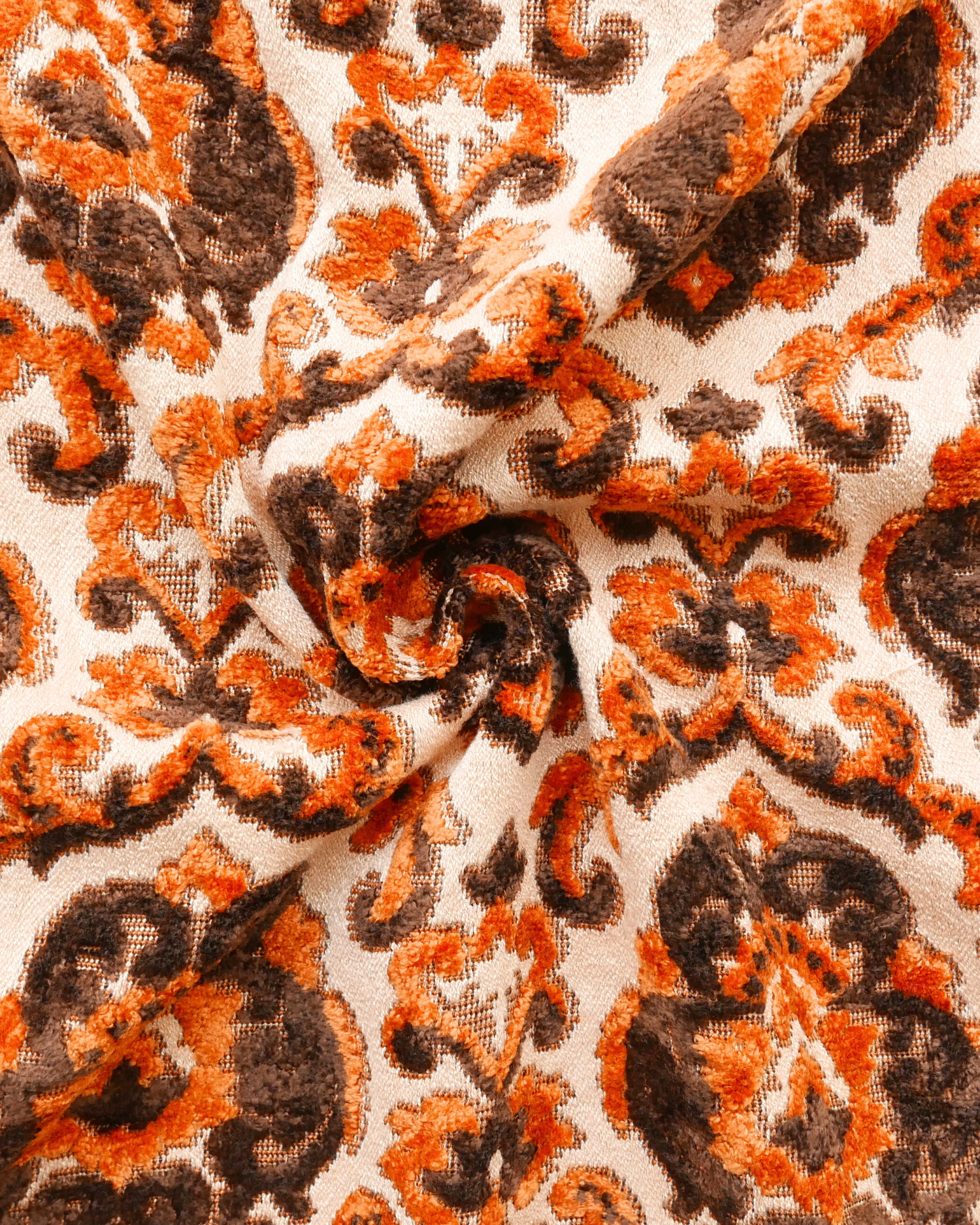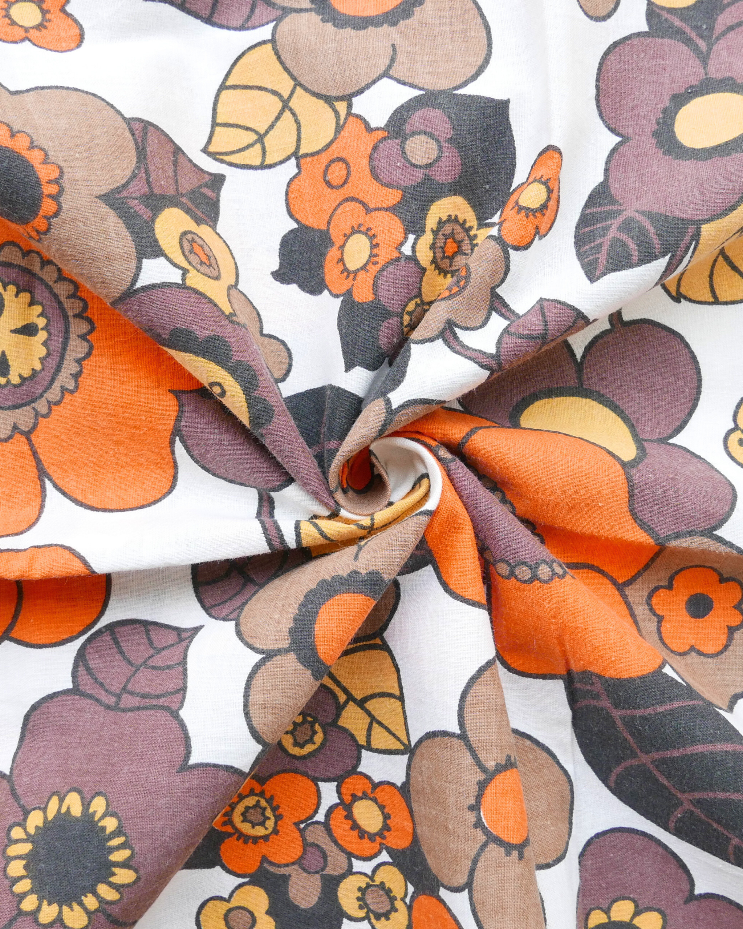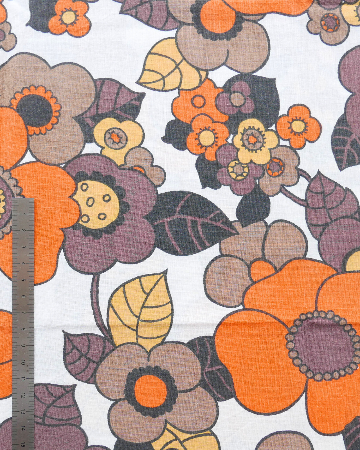 Tissu - Coton - Fond orange avec desmotifs floraux marron et verts - 137 * 246 cm