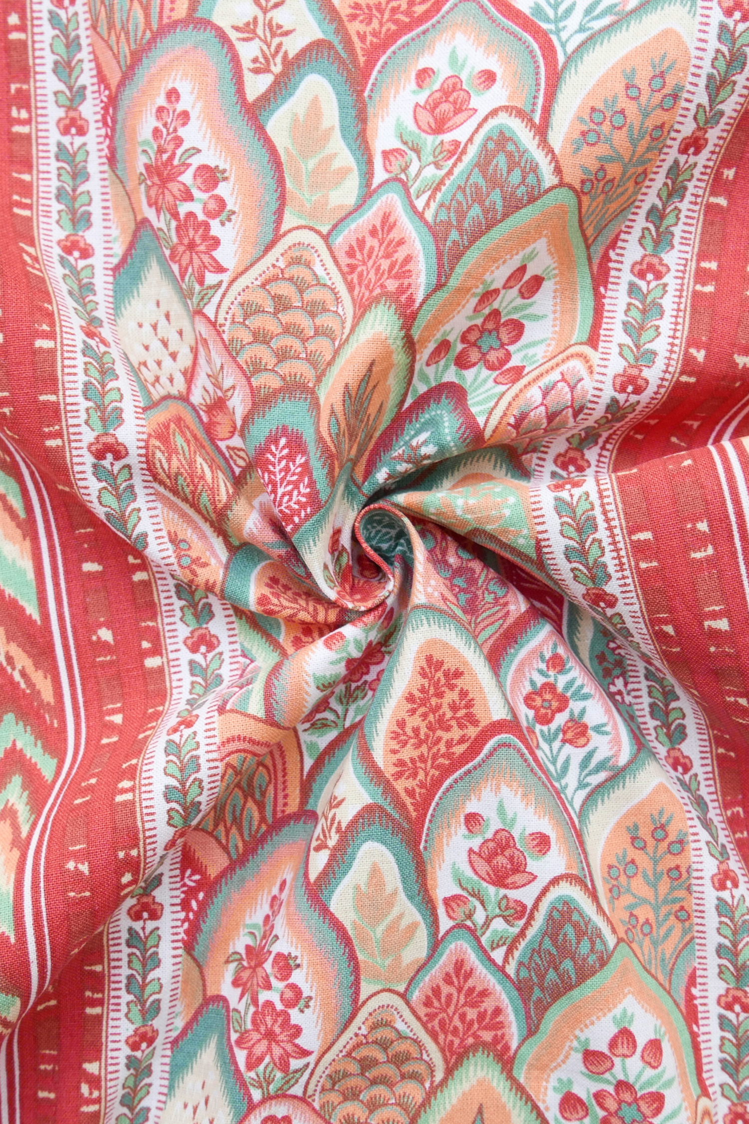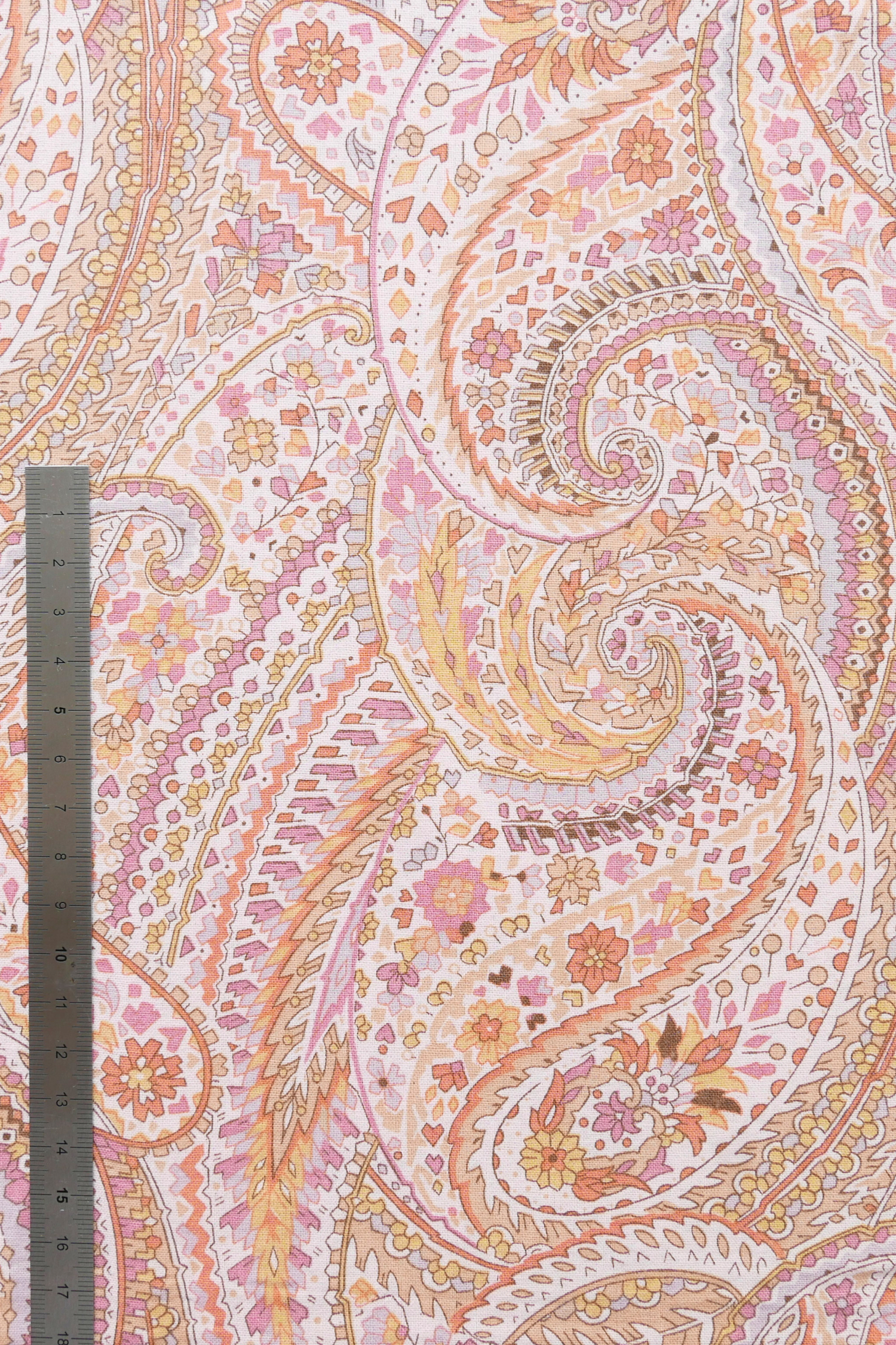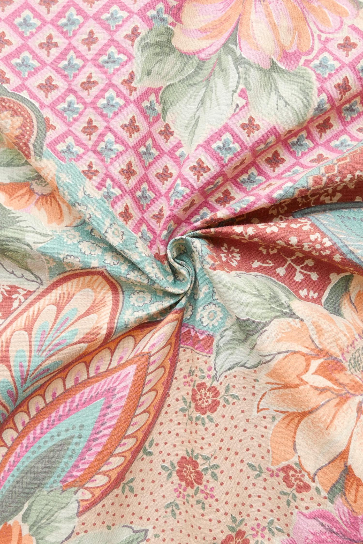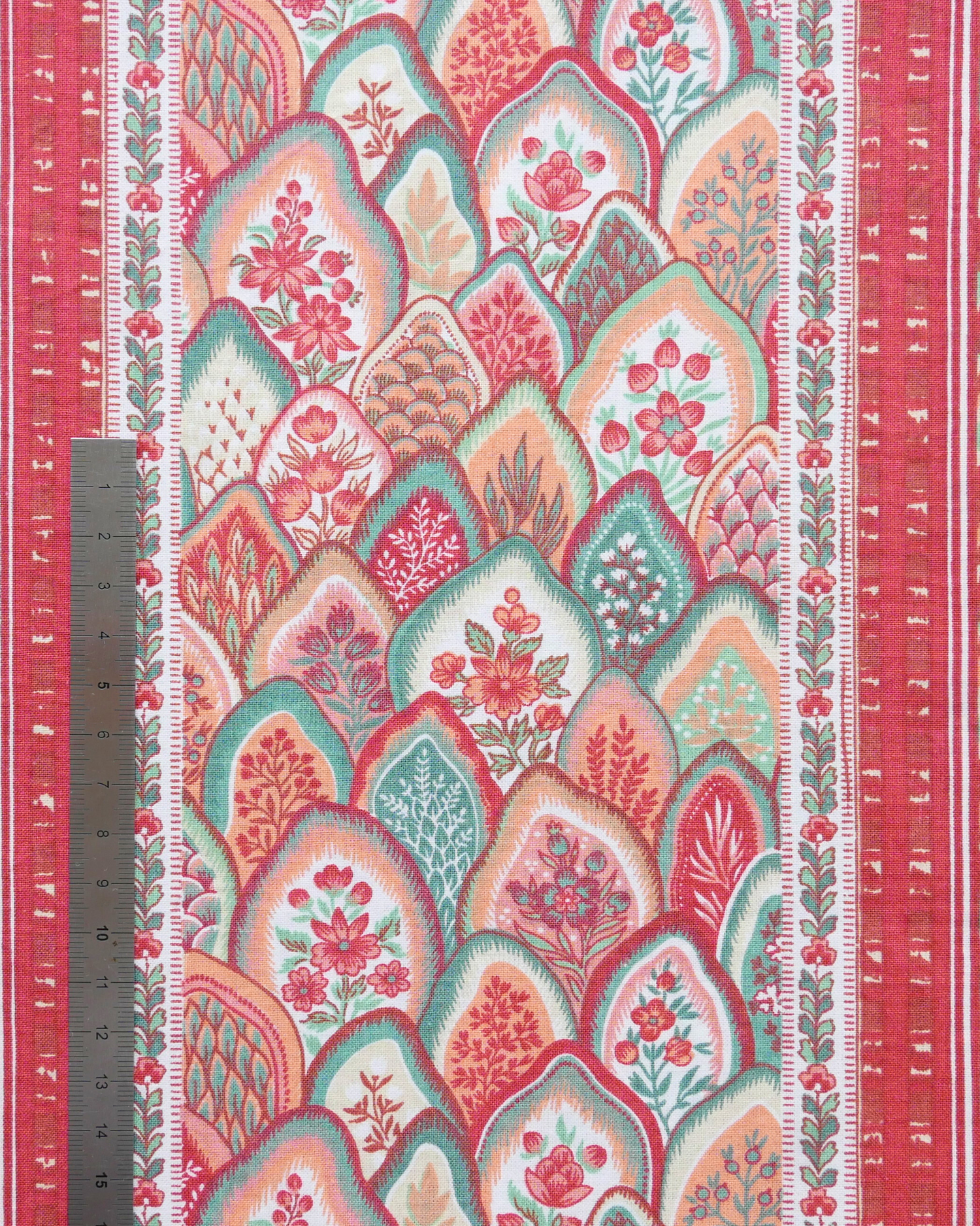 Tissu - Coton - Fond orange avec desmotifs floraux marron et verts - 137 * 246 cm