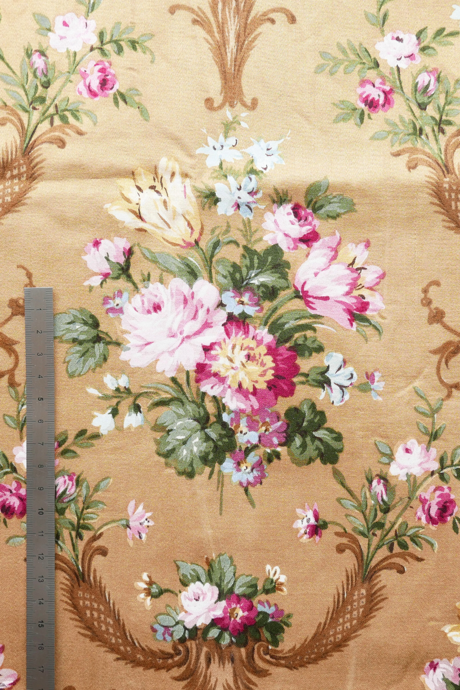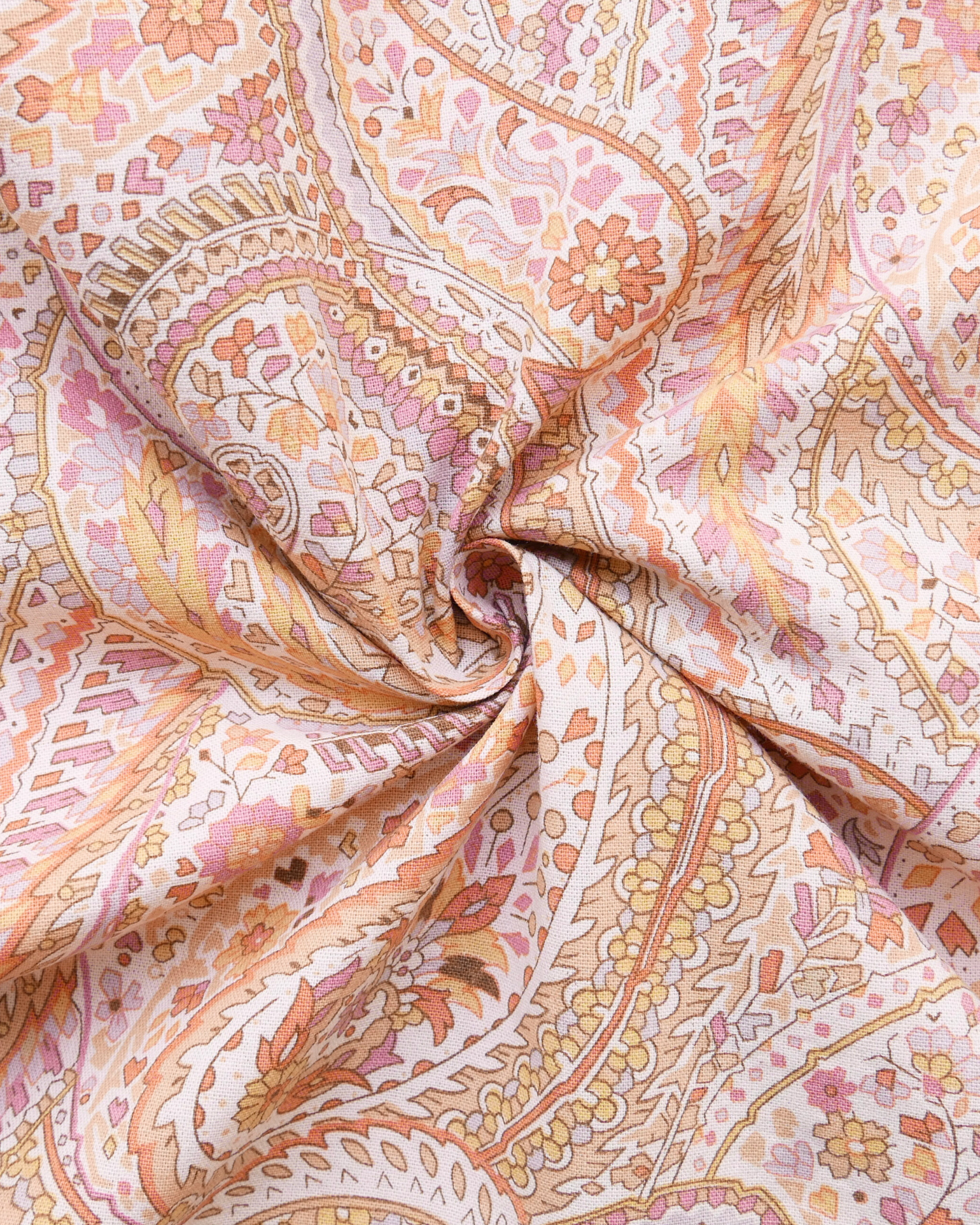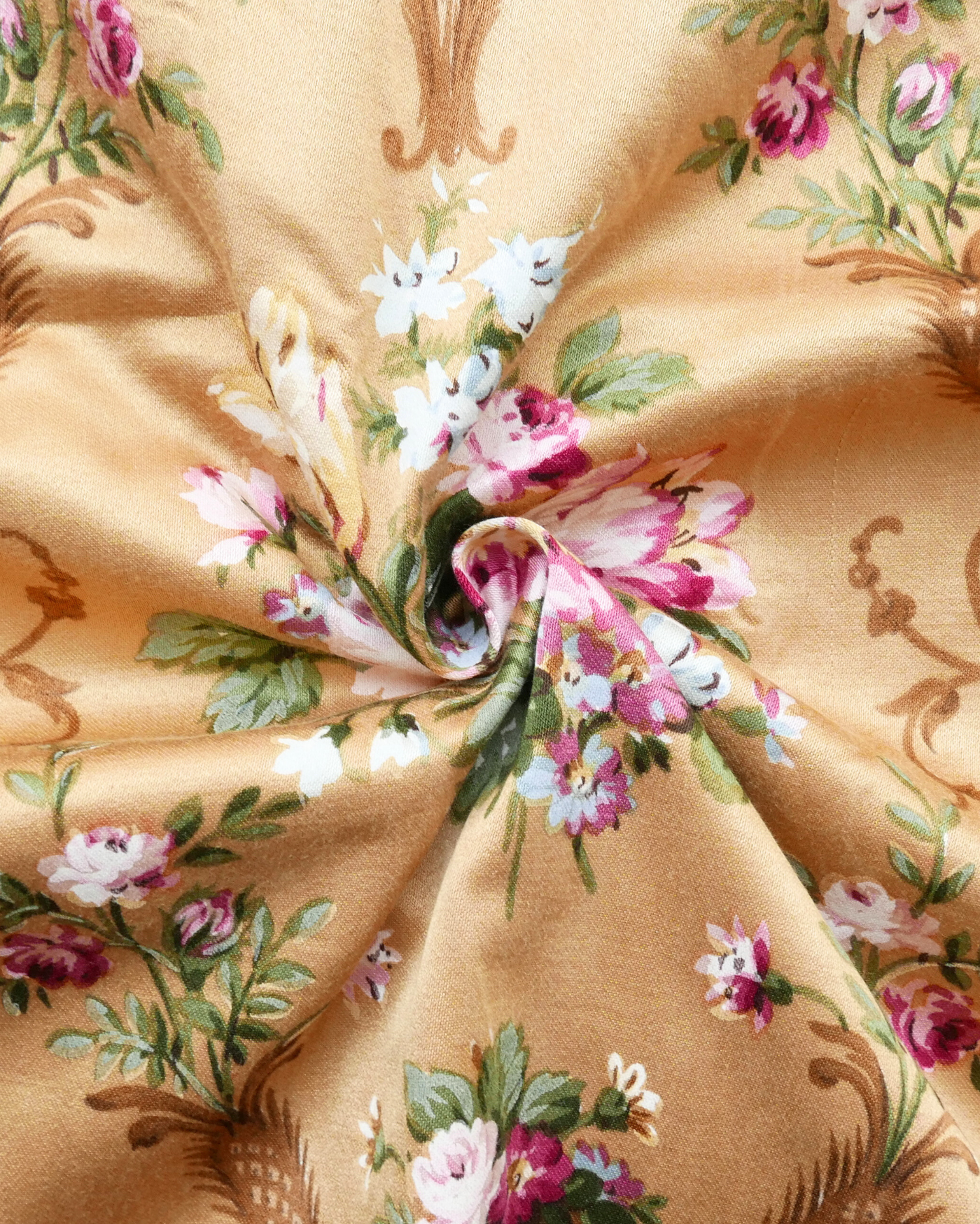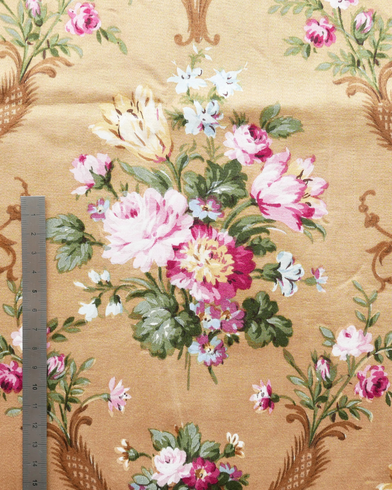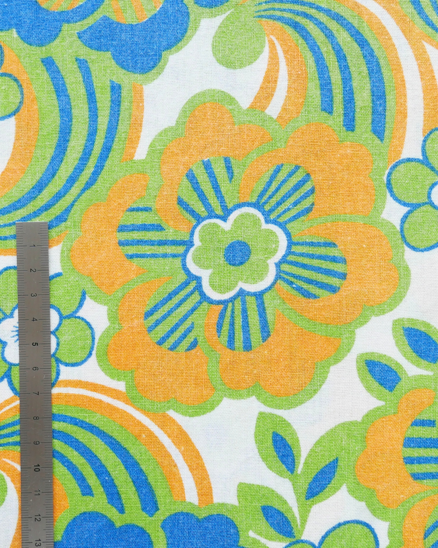 Tissu - Coton - Fond orange avec desmotifs floraux marron et verts - 137 * 246 cm