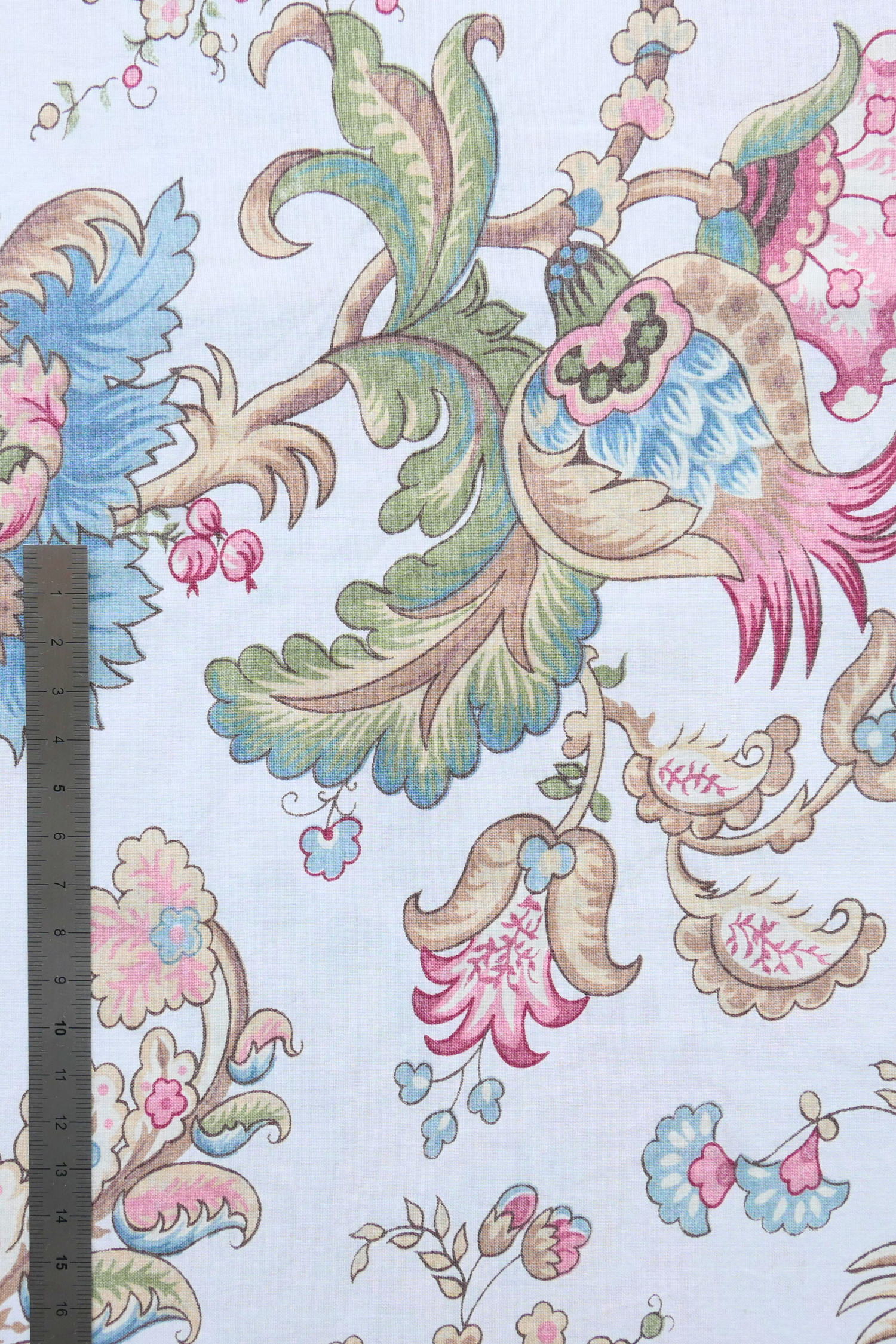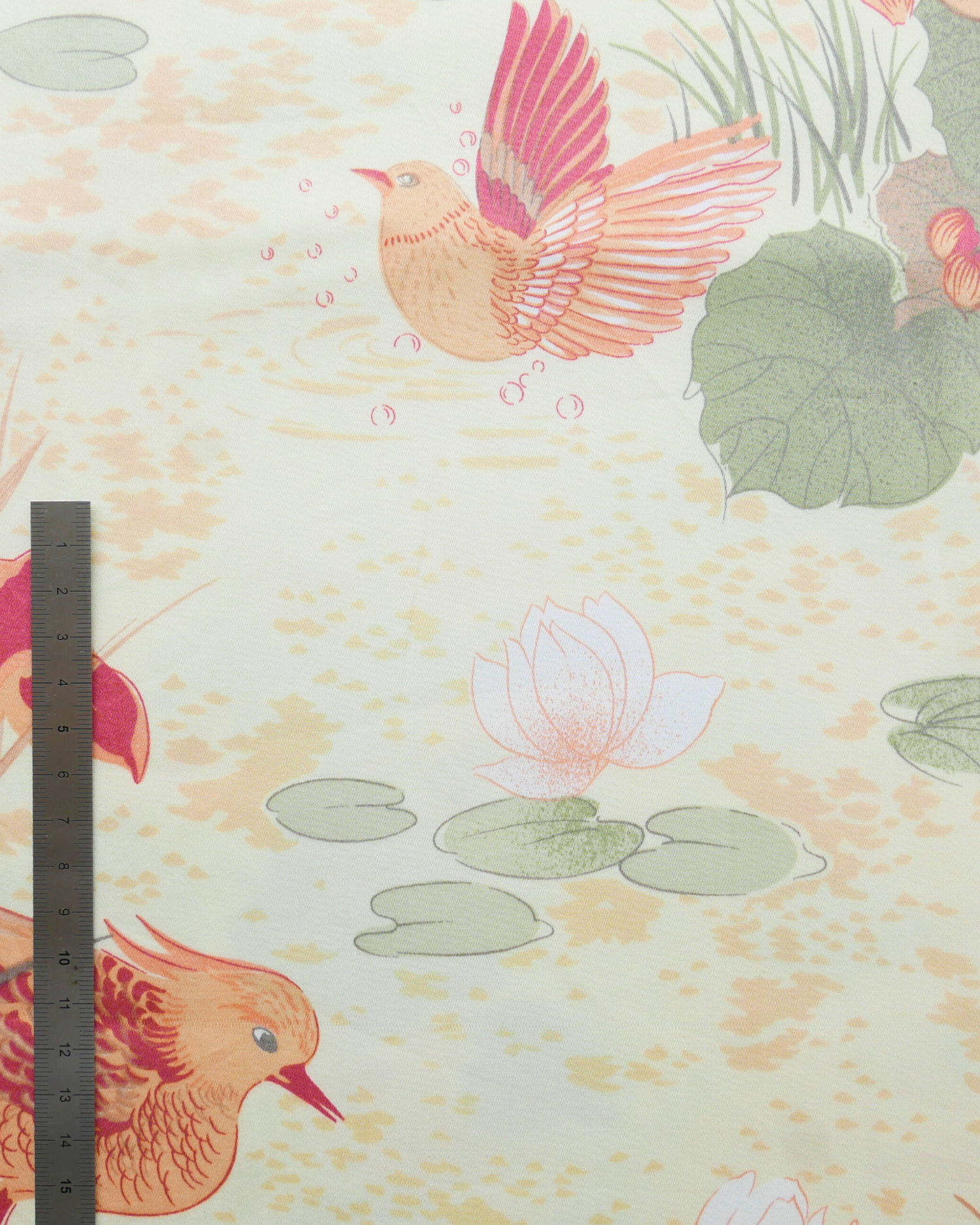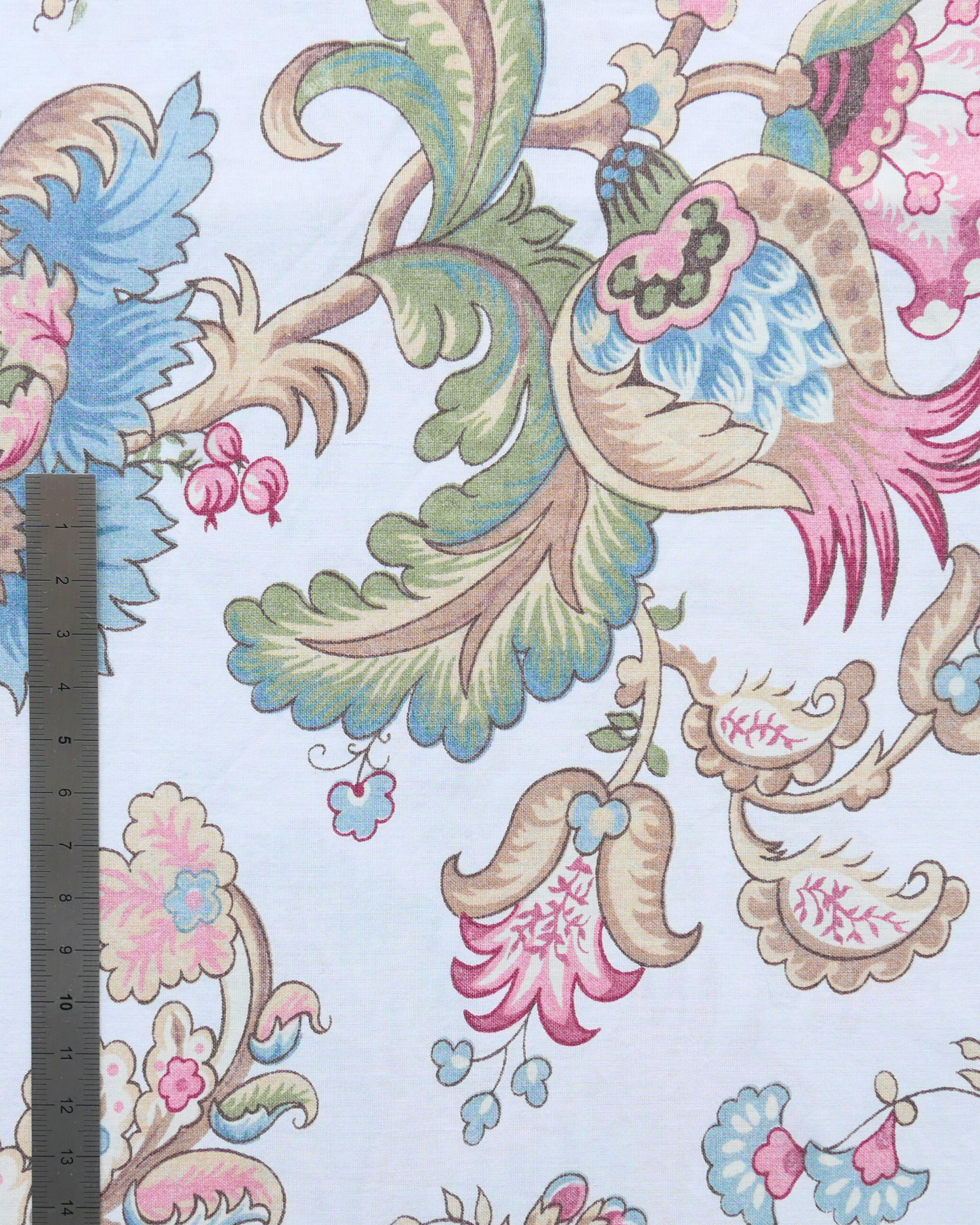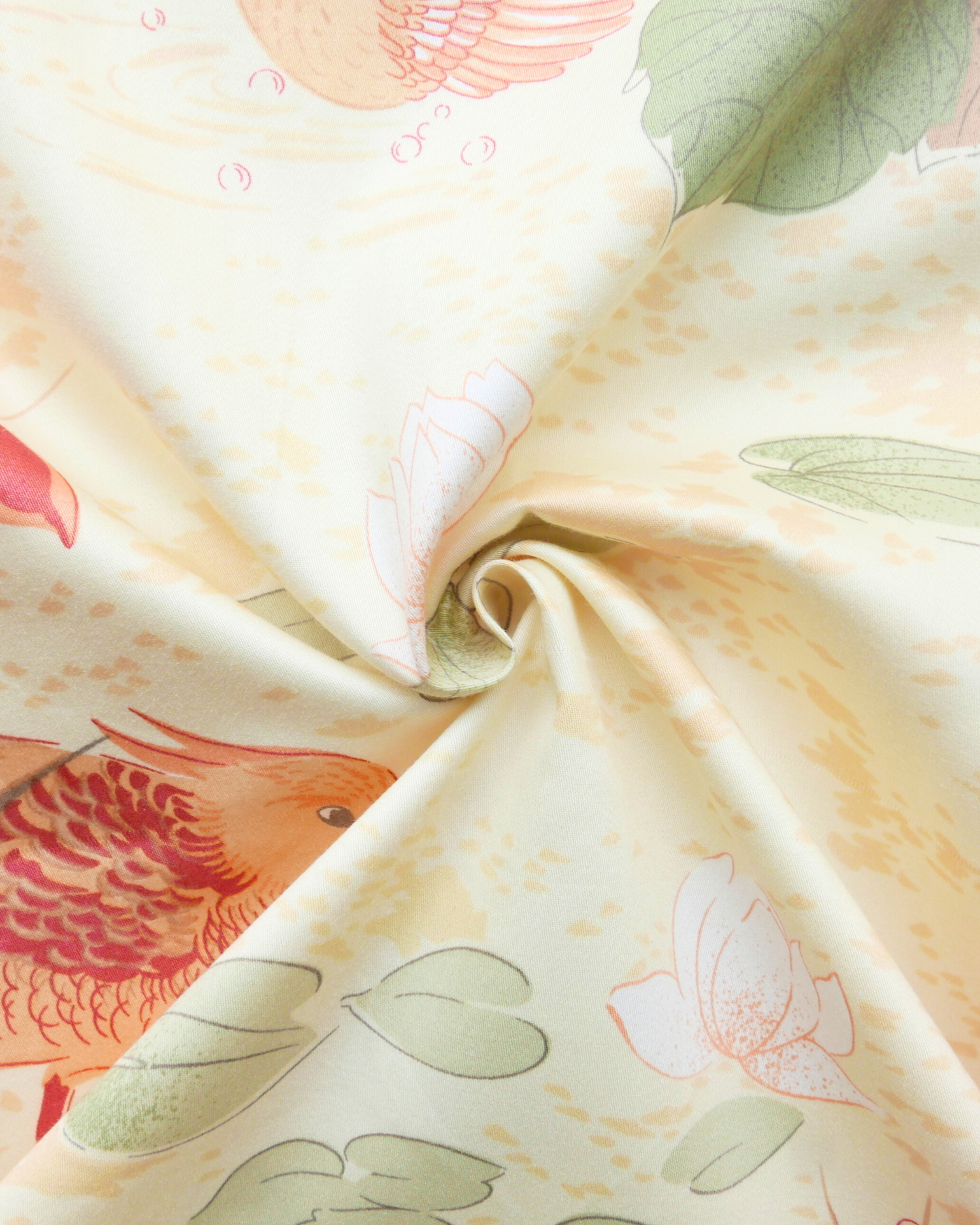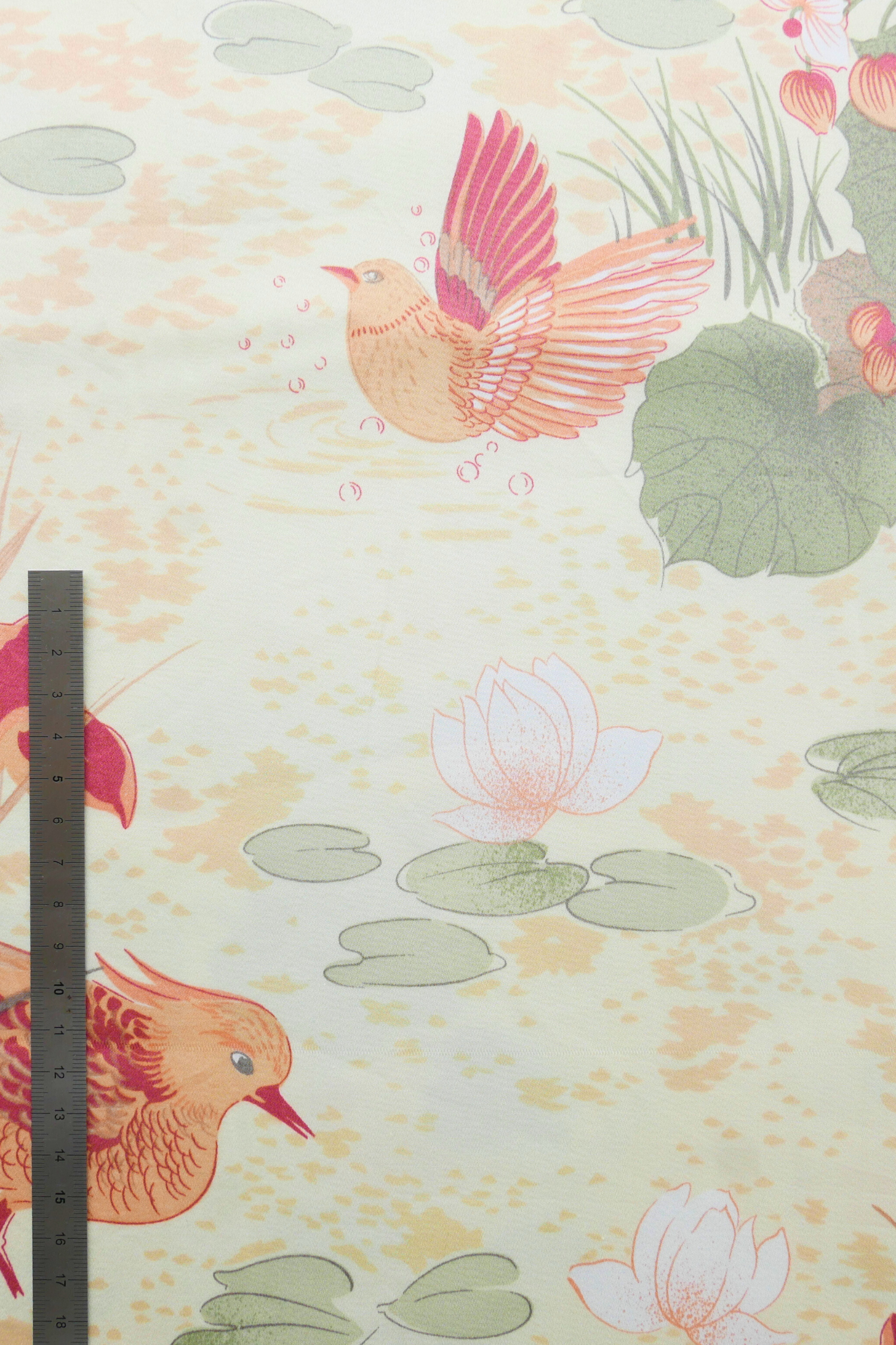 Tissu - Coton - Fond orange avec desmotifs floraux marron et verts - 137 * 246 cm