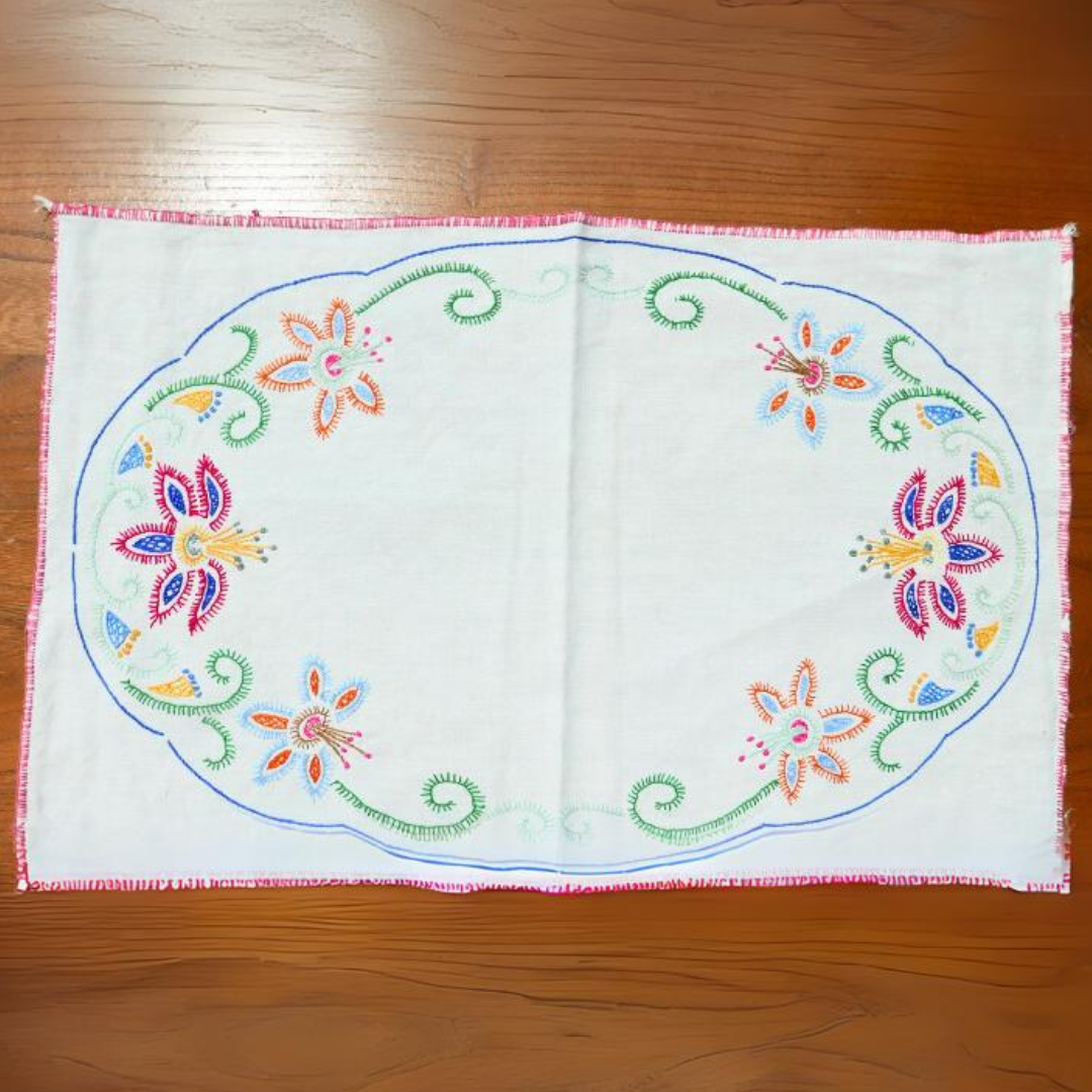 Tissu vintage brodé - Blanc avec broderies de couleurs - 35 cm * 52 cm