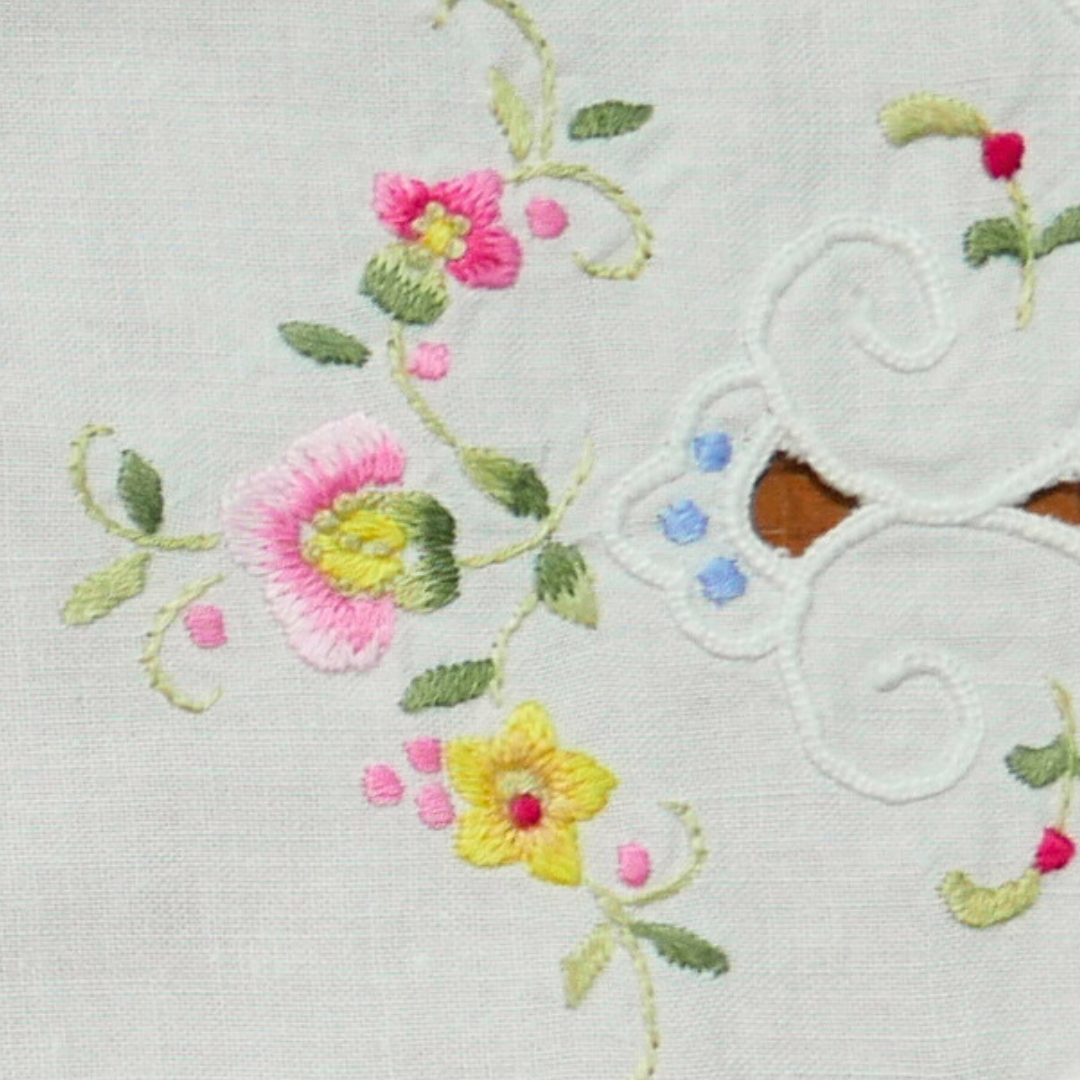 Napperon - Blanc avec fleurs rose et jaune brodées - 18 cm * 24 cm