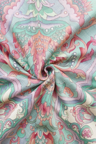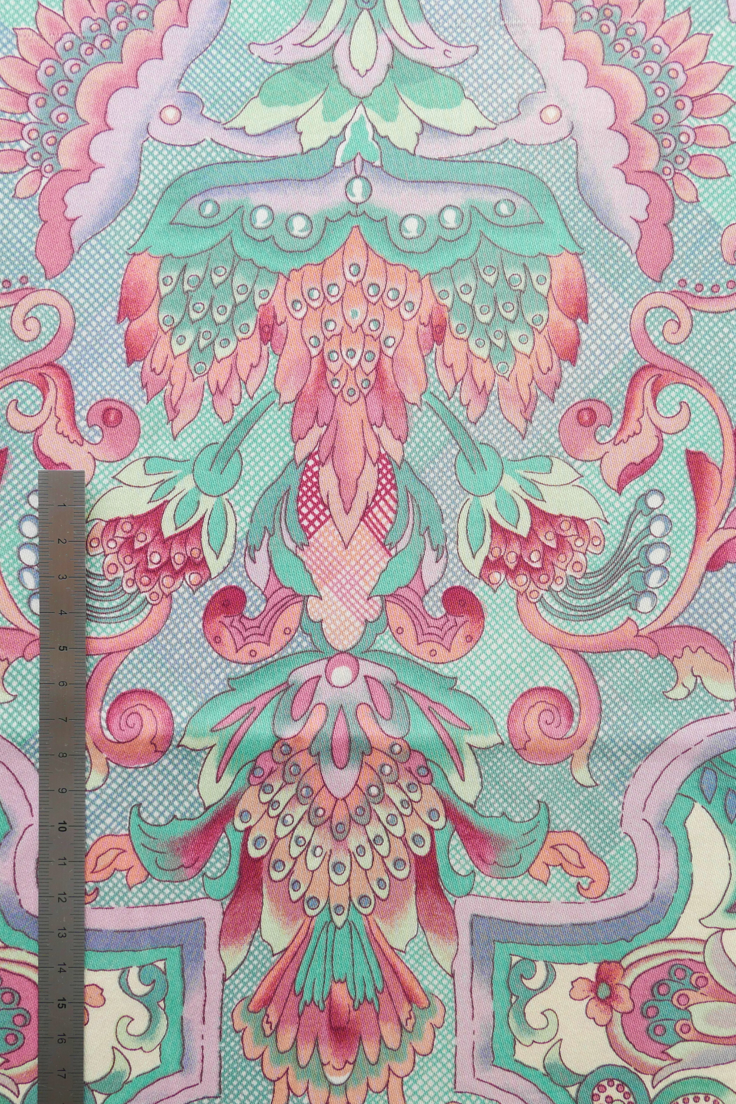 Tissu - Coton - Fond beige avec des arabesques fleuries aux teintes vertes et rosées - 124 cm * 141 cm