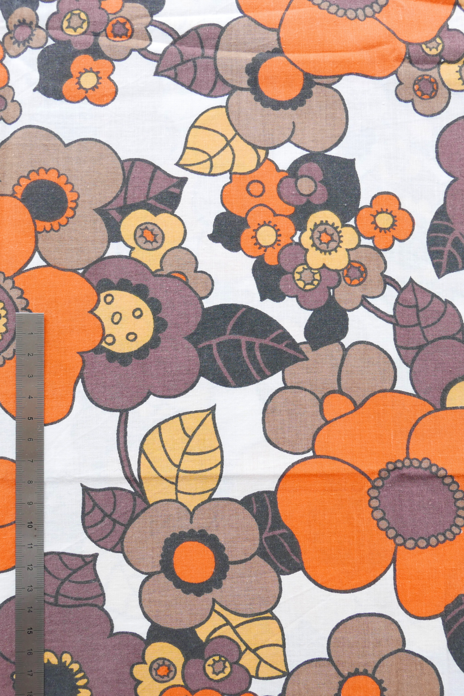 Tissu - Coton - Fond blanc avec de grosses fleurs aux teintes orangées et marron - 115 cm * 75 cm