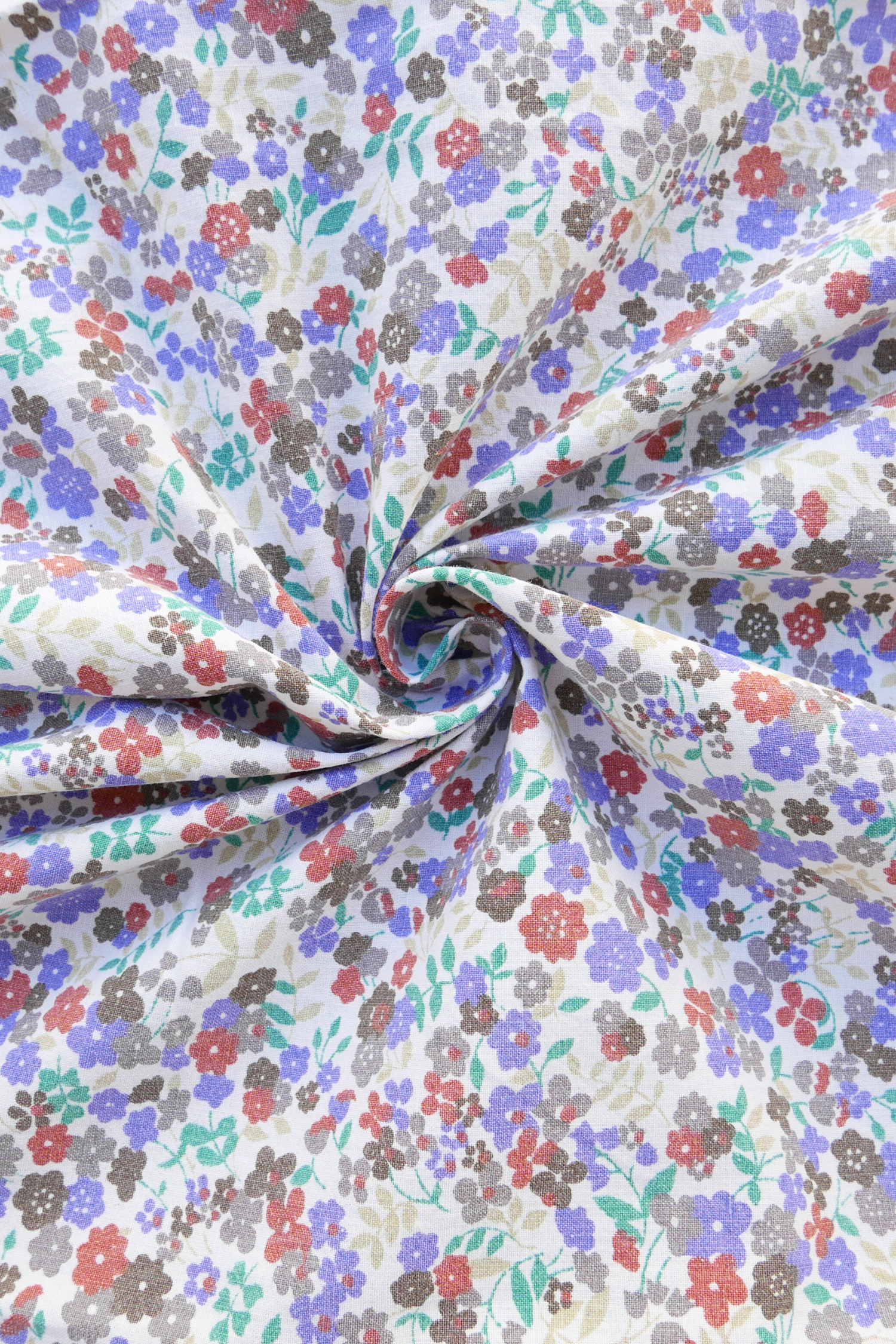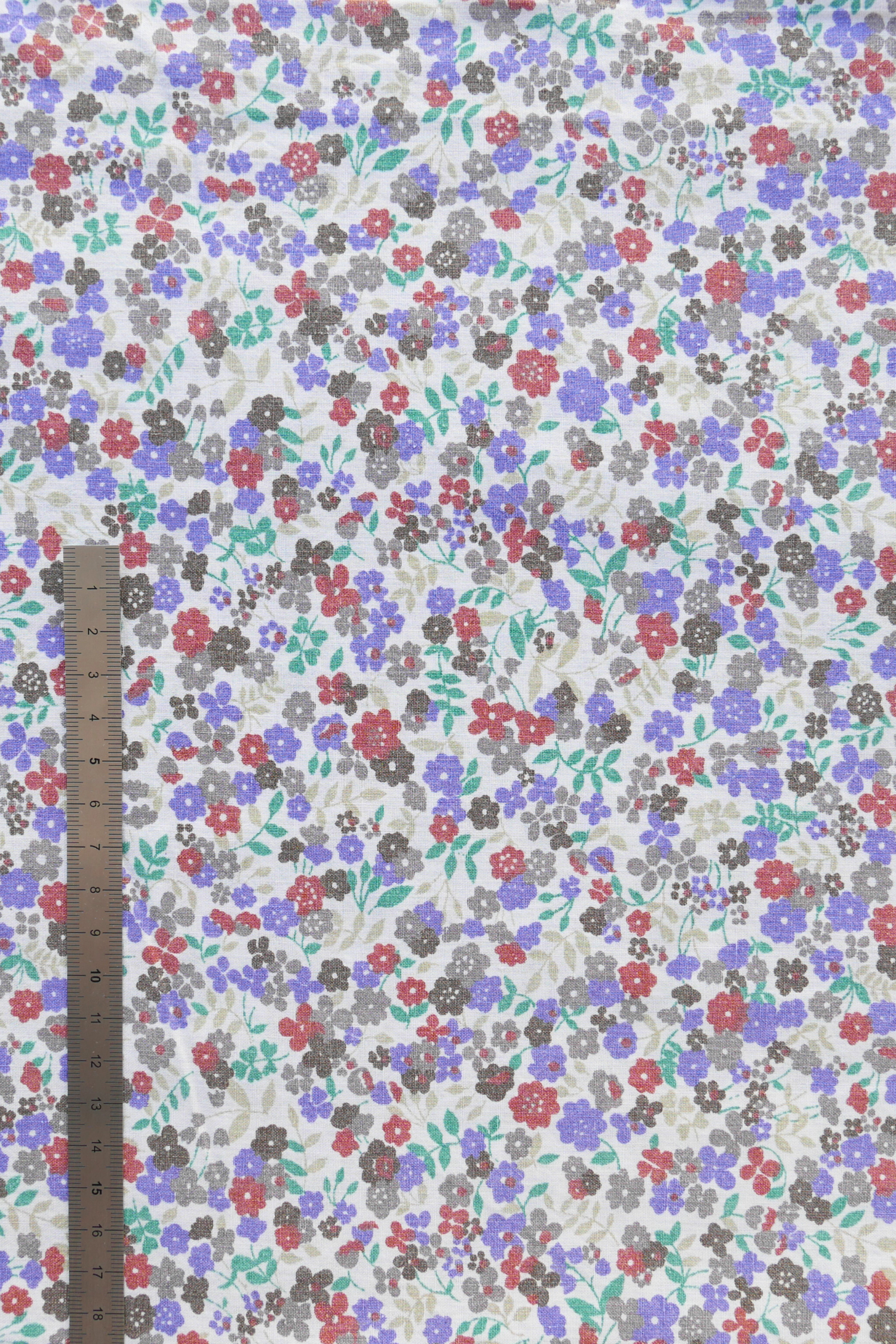 Tissu - Coton - Fond blanc avec de petites fleurs terracotta, marron et violettes - 235 * 287 cm