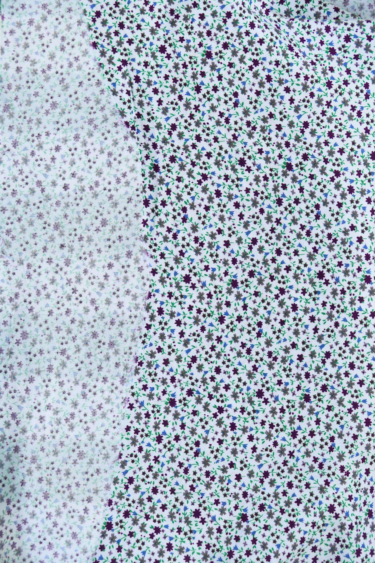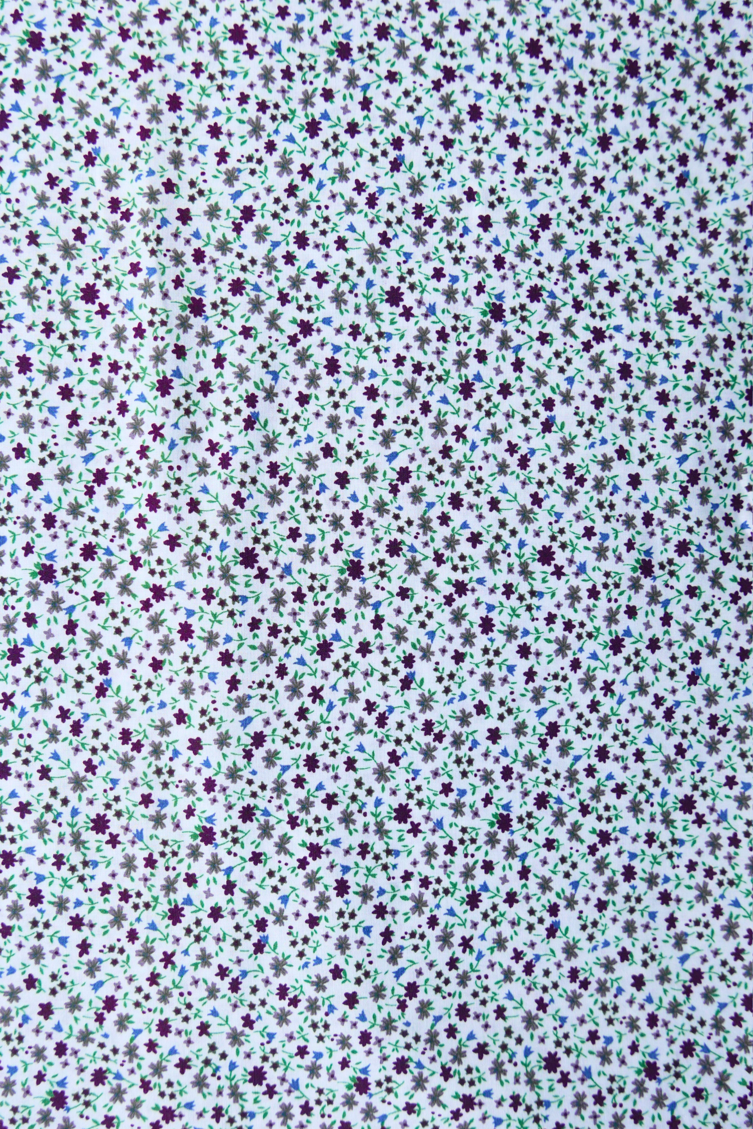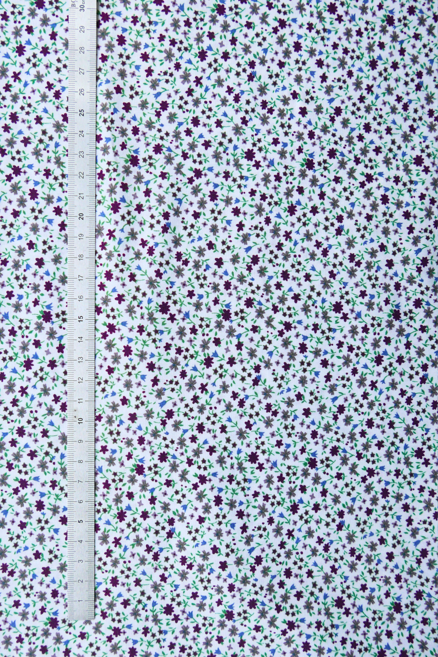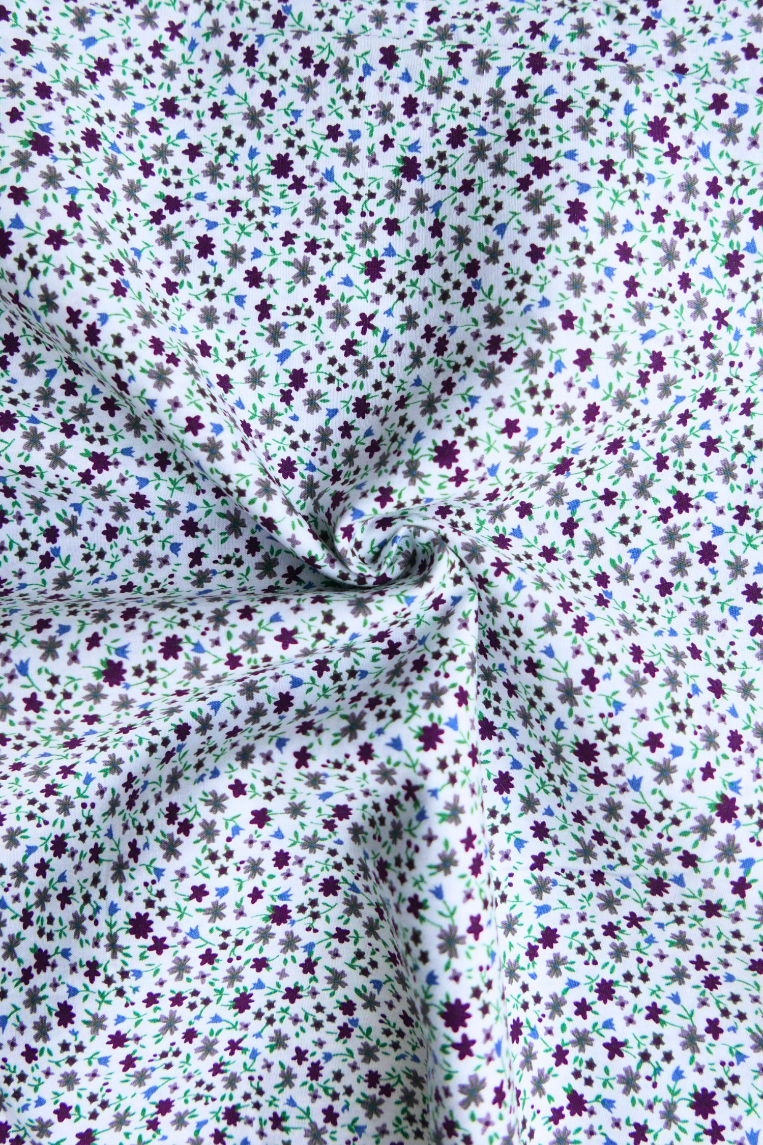 Tissu - Coton - Fond blanc avec de petites fleurs violettes et vertes - 144 cm * 259 cm
