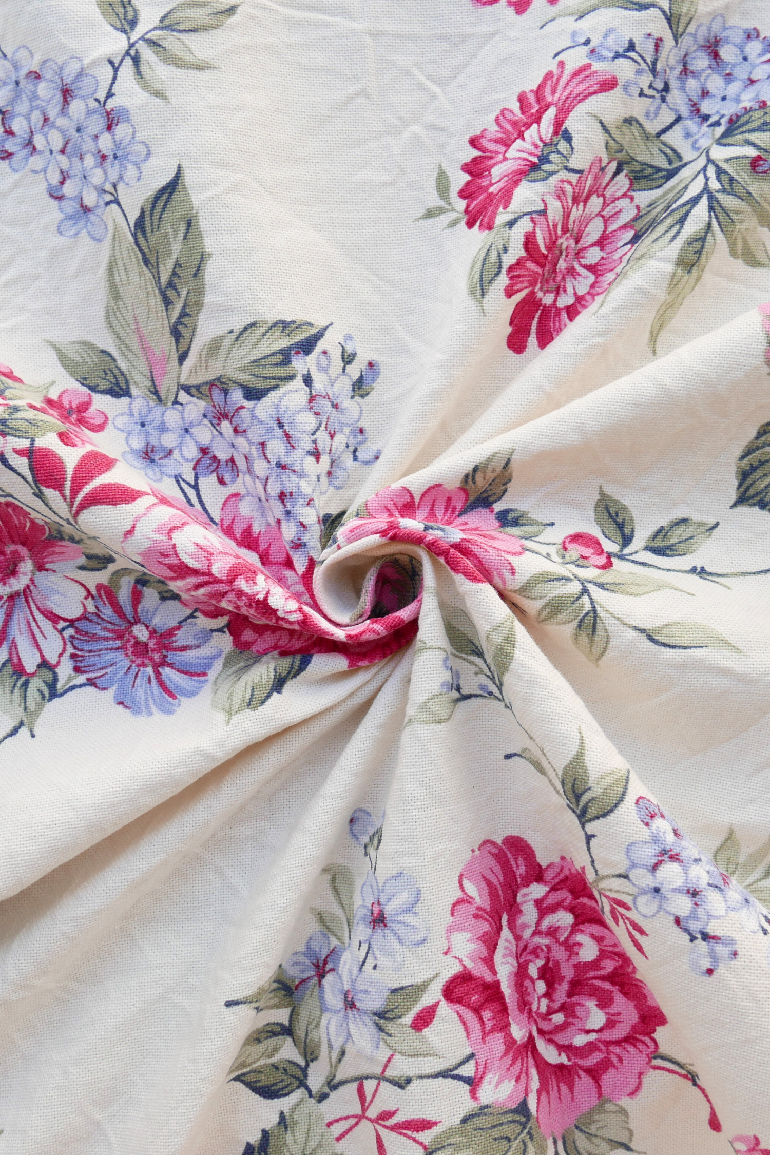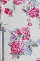 Tissu - Coton - Fond blanc avec des fleurs aux teintes bleues et roses - 128 * 265 cm