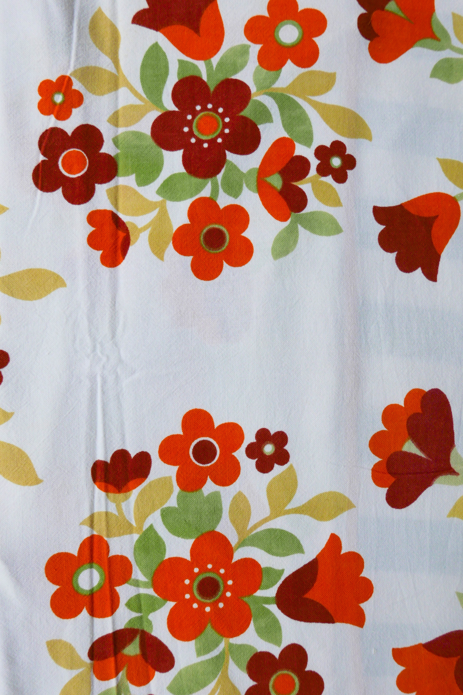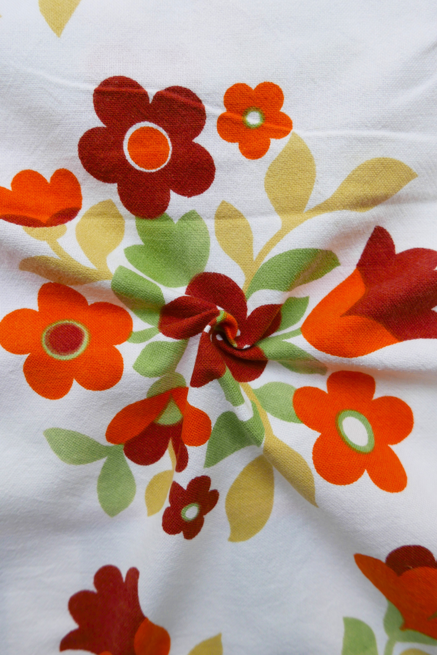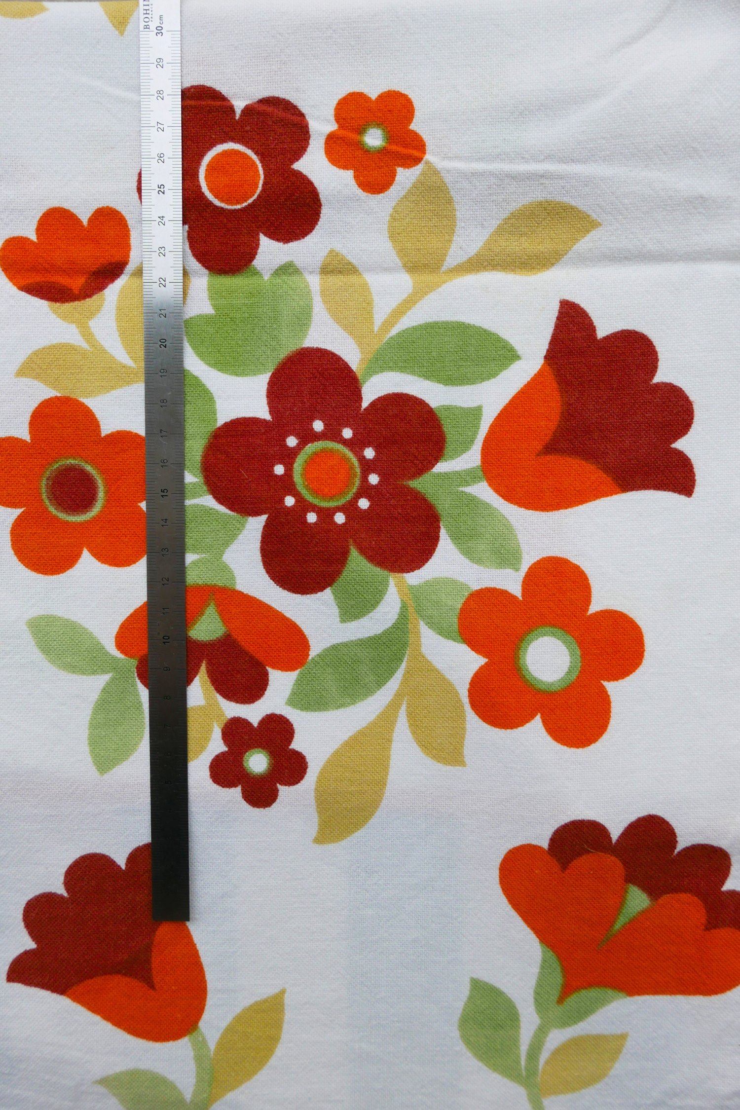 Tissu - Coton - Fond blanc avec des fleurs orangées - 63 cm * 140 cm