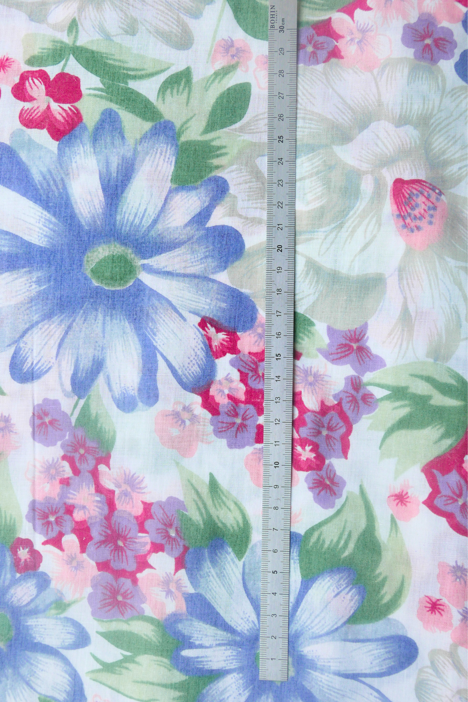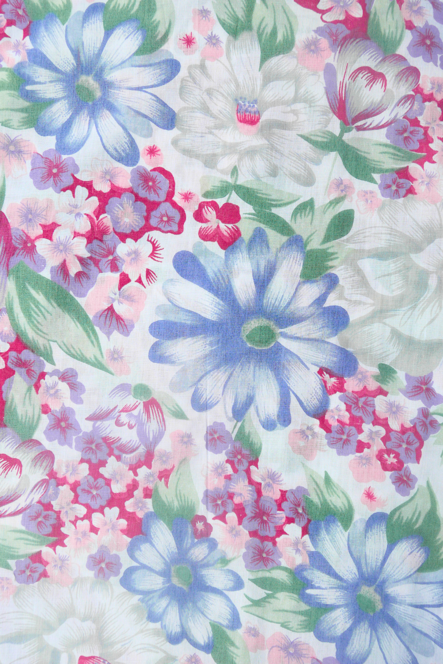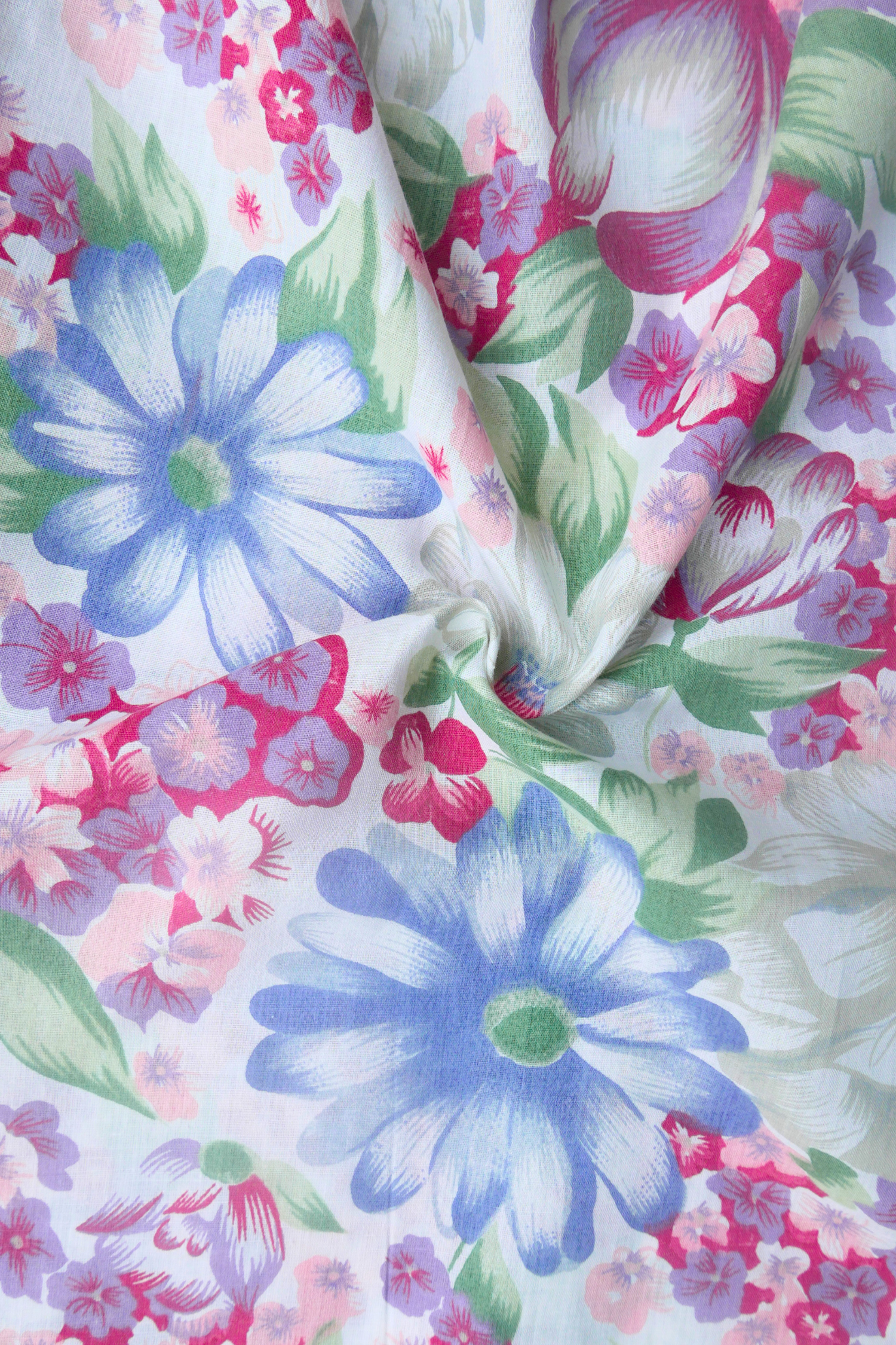 Tissu - Coton - Fond blanc avec des fleurs aux teintes roses et bleues - 120 cm * 240 cm