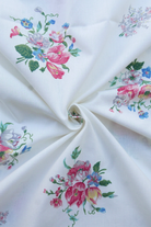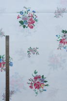 Tissu - Coton - Fond blanc avec des fleurs aux teintes roses, grises et bleues - 184 * 187 cm