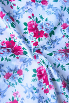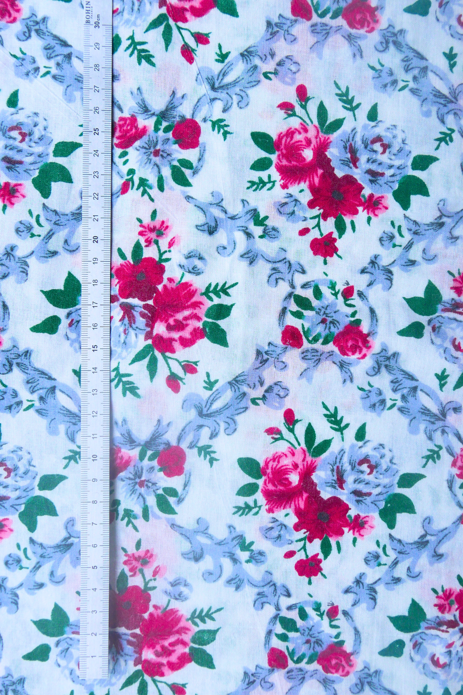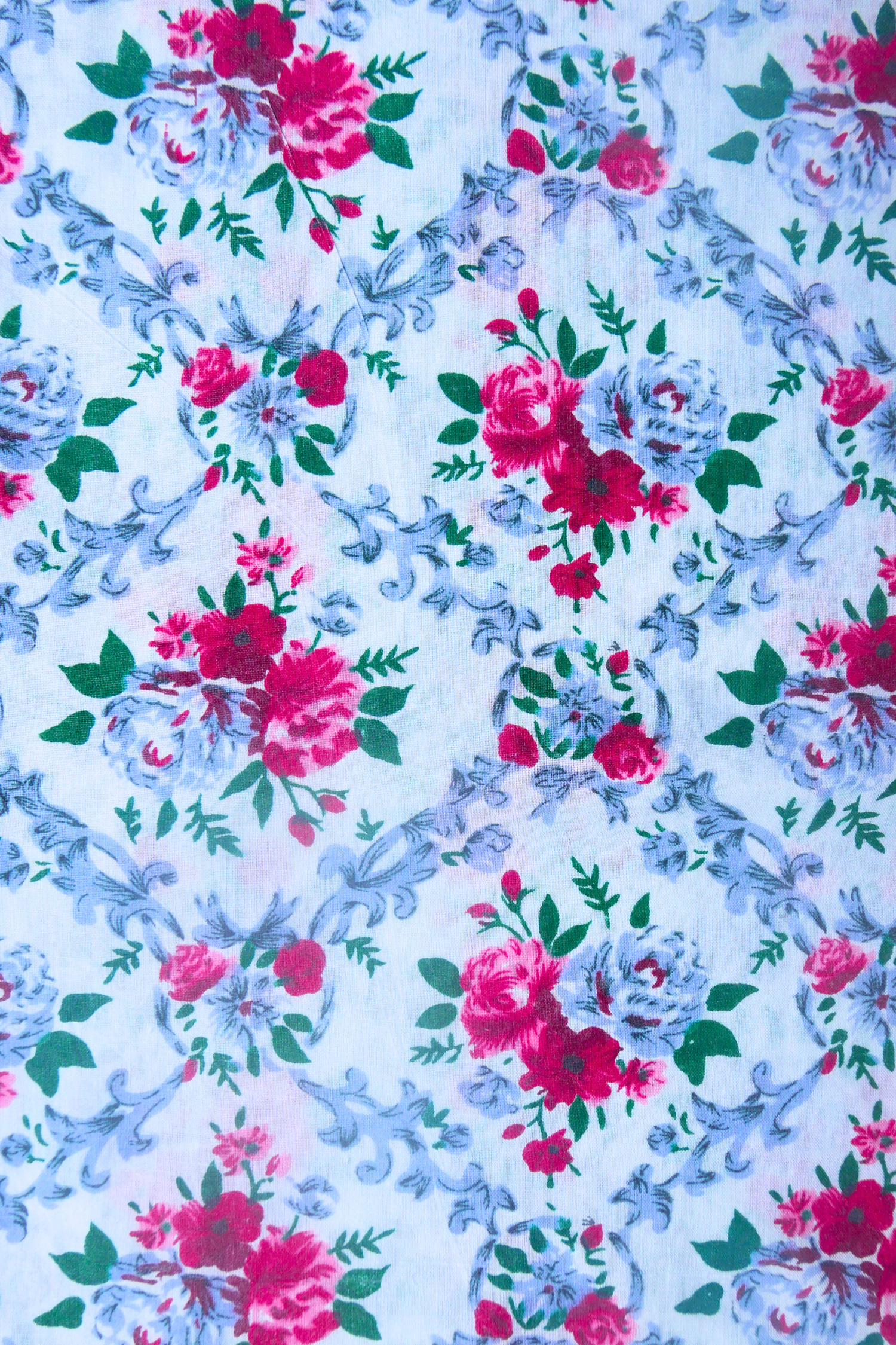 Tissu - Coton - Fond blanc avec des fleurs bleues et roses - 153 cm * 179 cm