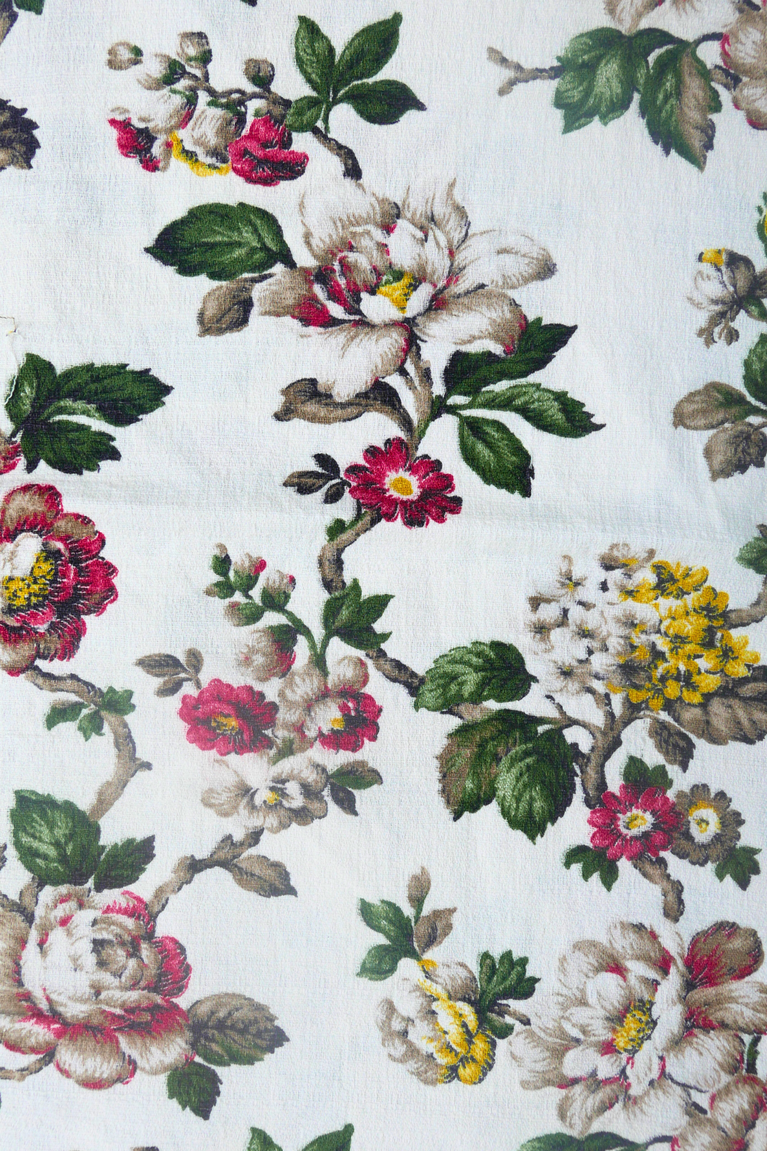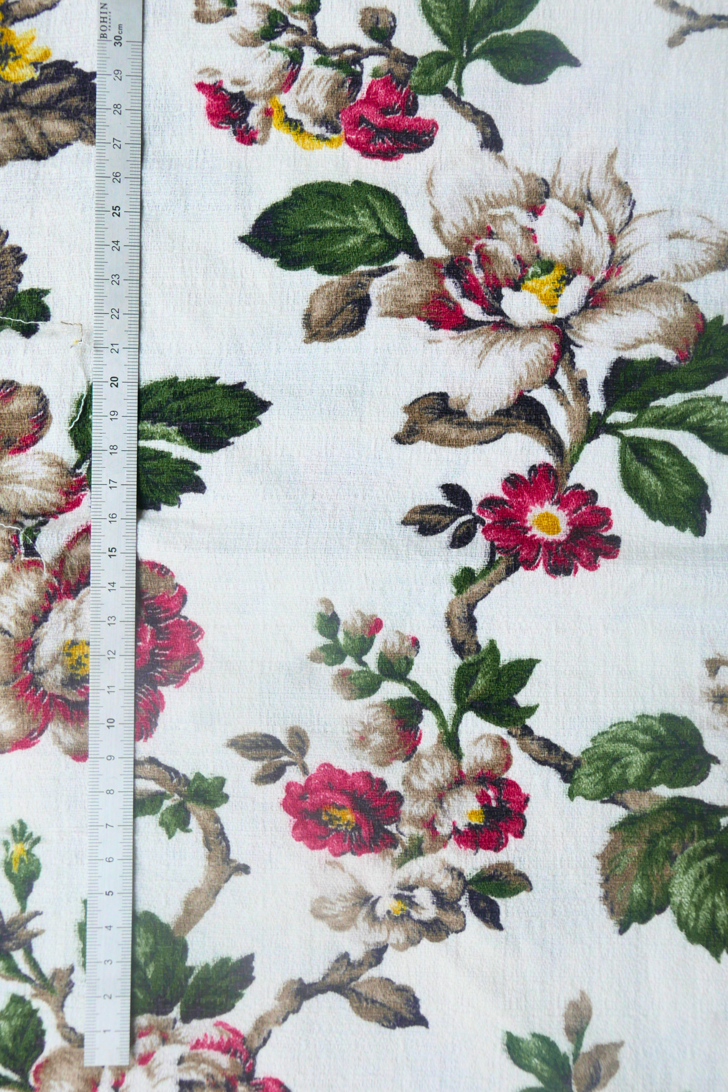 Tissu - Coton - Fond blanc avec des fleurs roses et marron - 39 cm * 260 cm