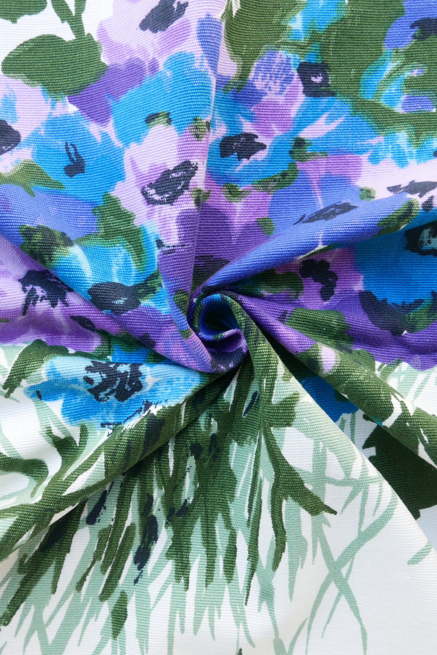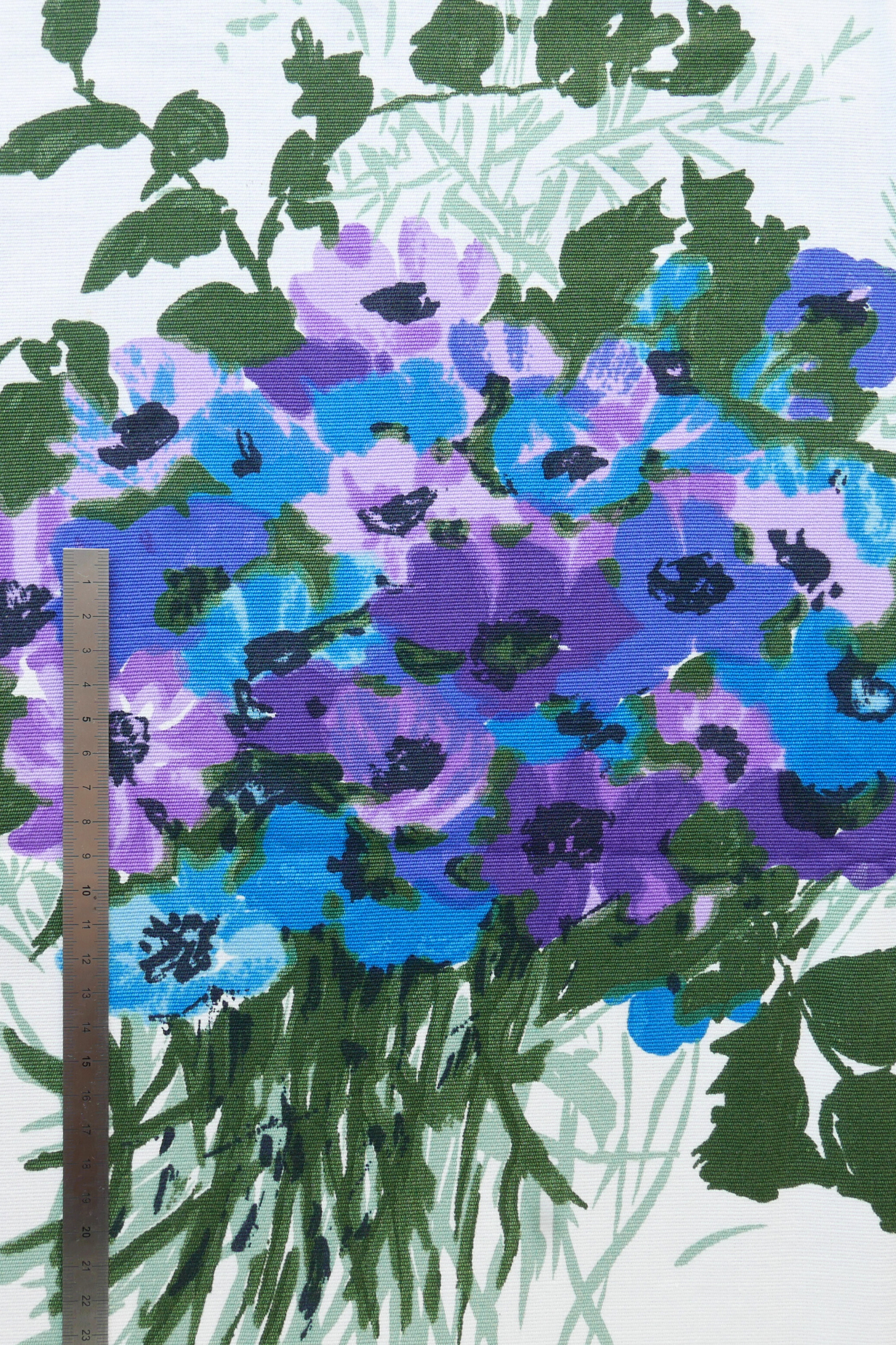 Tissu - Coton - Fond blanc avec des fleurs violettes et bleues - 125 * 269 cm