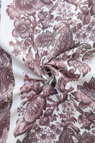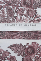 Tissu - Coton - Fond blanc avec des imprimés floraux aux teintes marron Inscription : "Romanex de Boussac" Grand teint ameublement - 98 * 150 cm