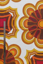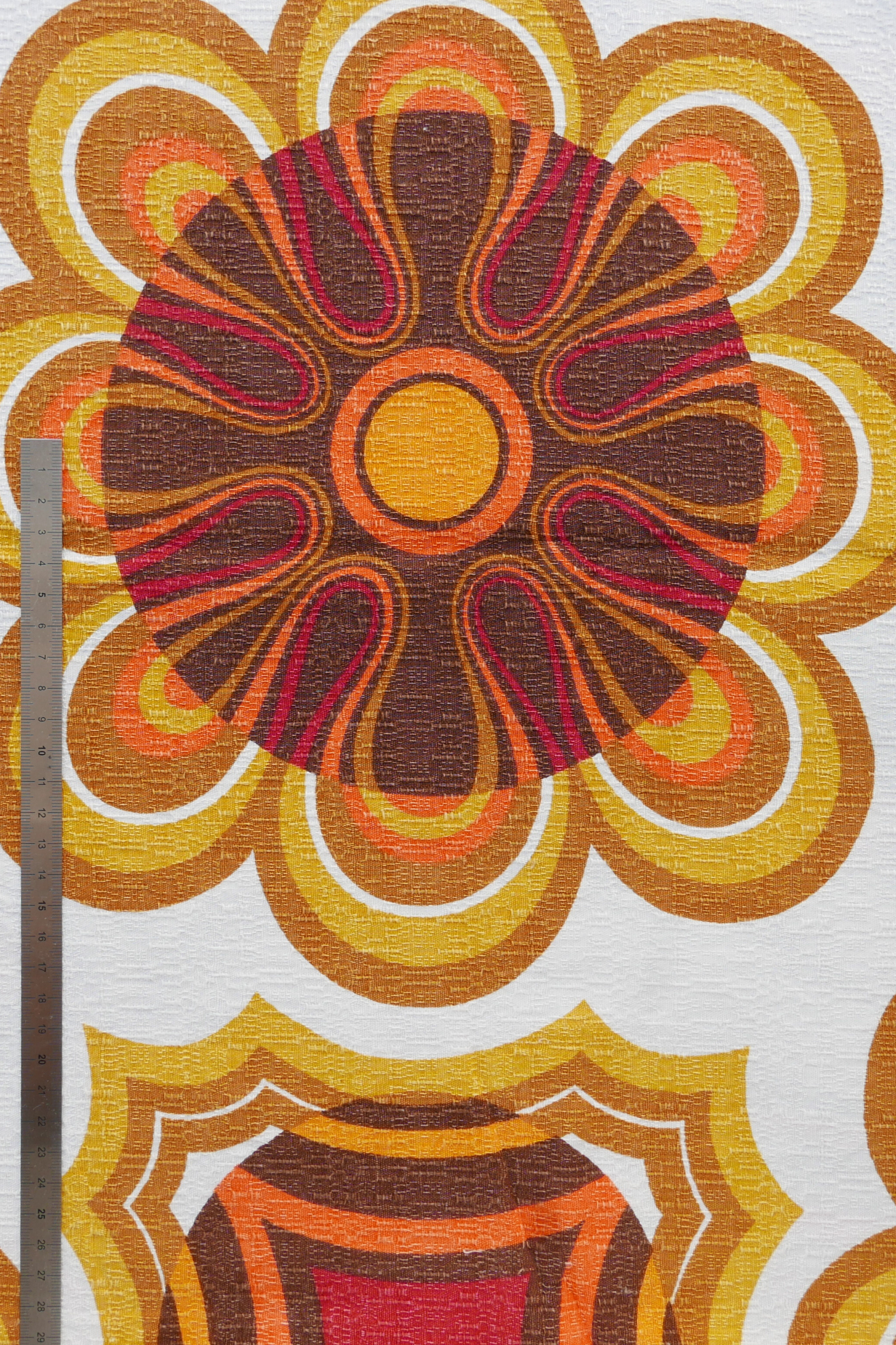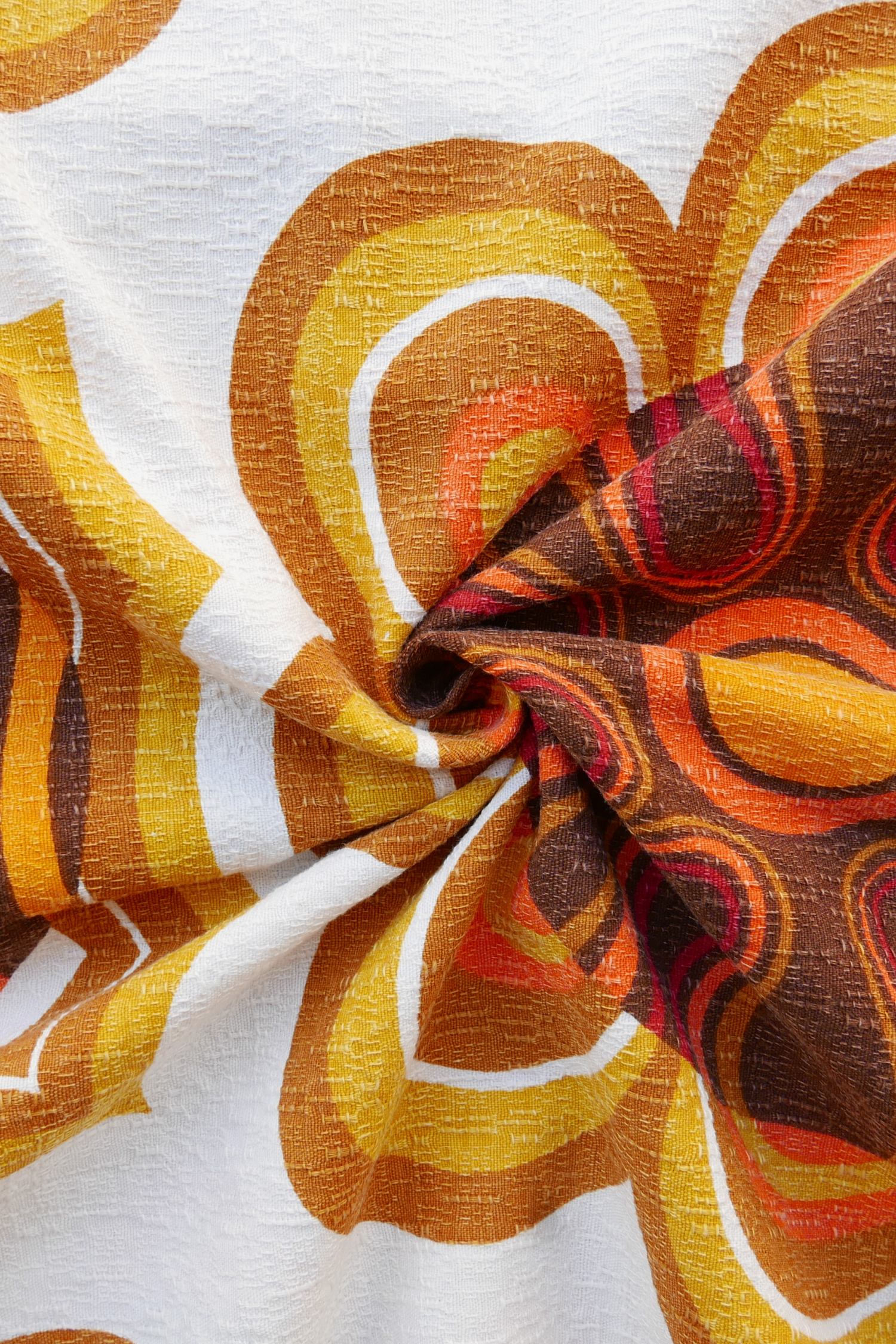 Tissu - Coton - Fond blanc avec imprimés marron, orange et jaunes - 120 * 192 cm