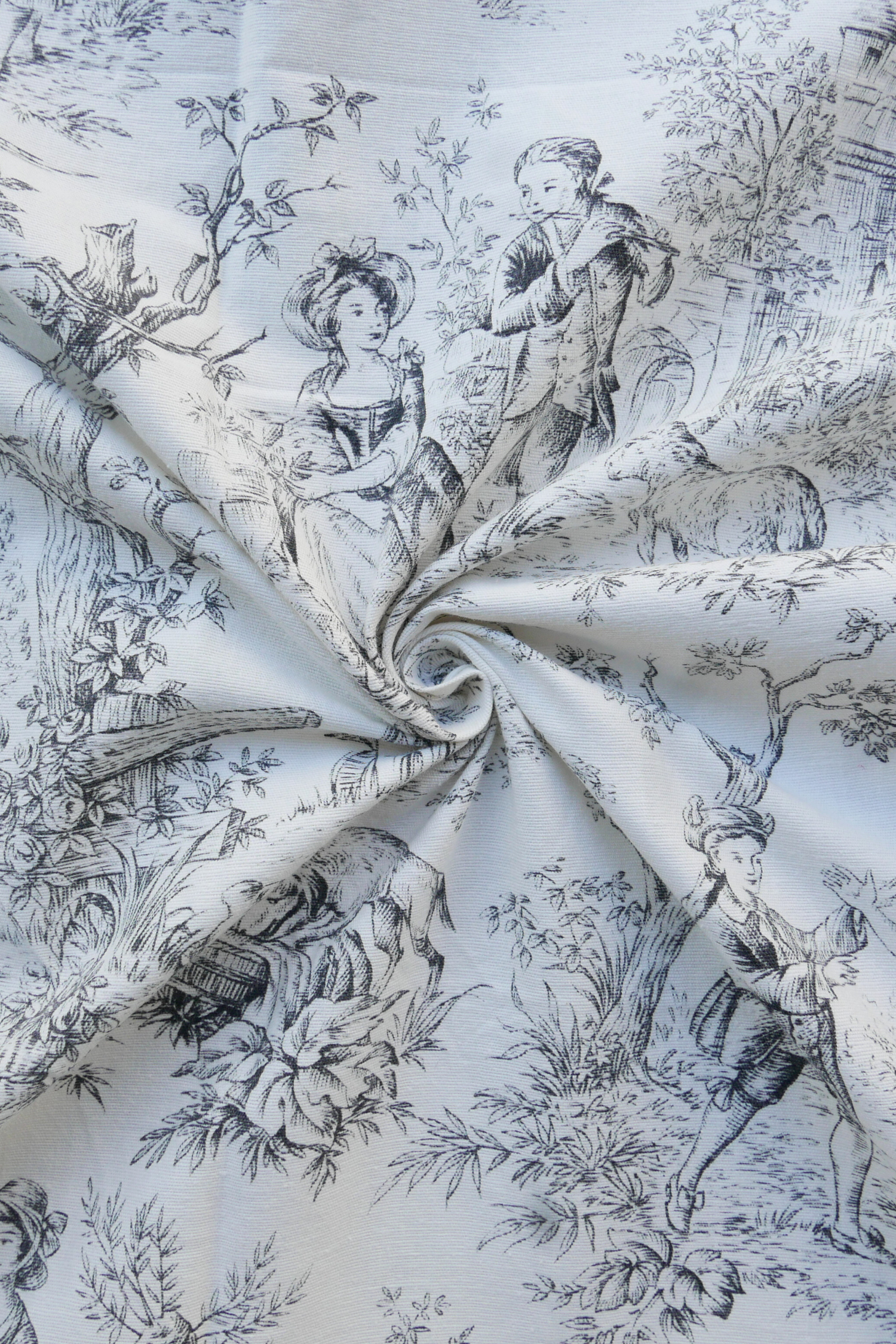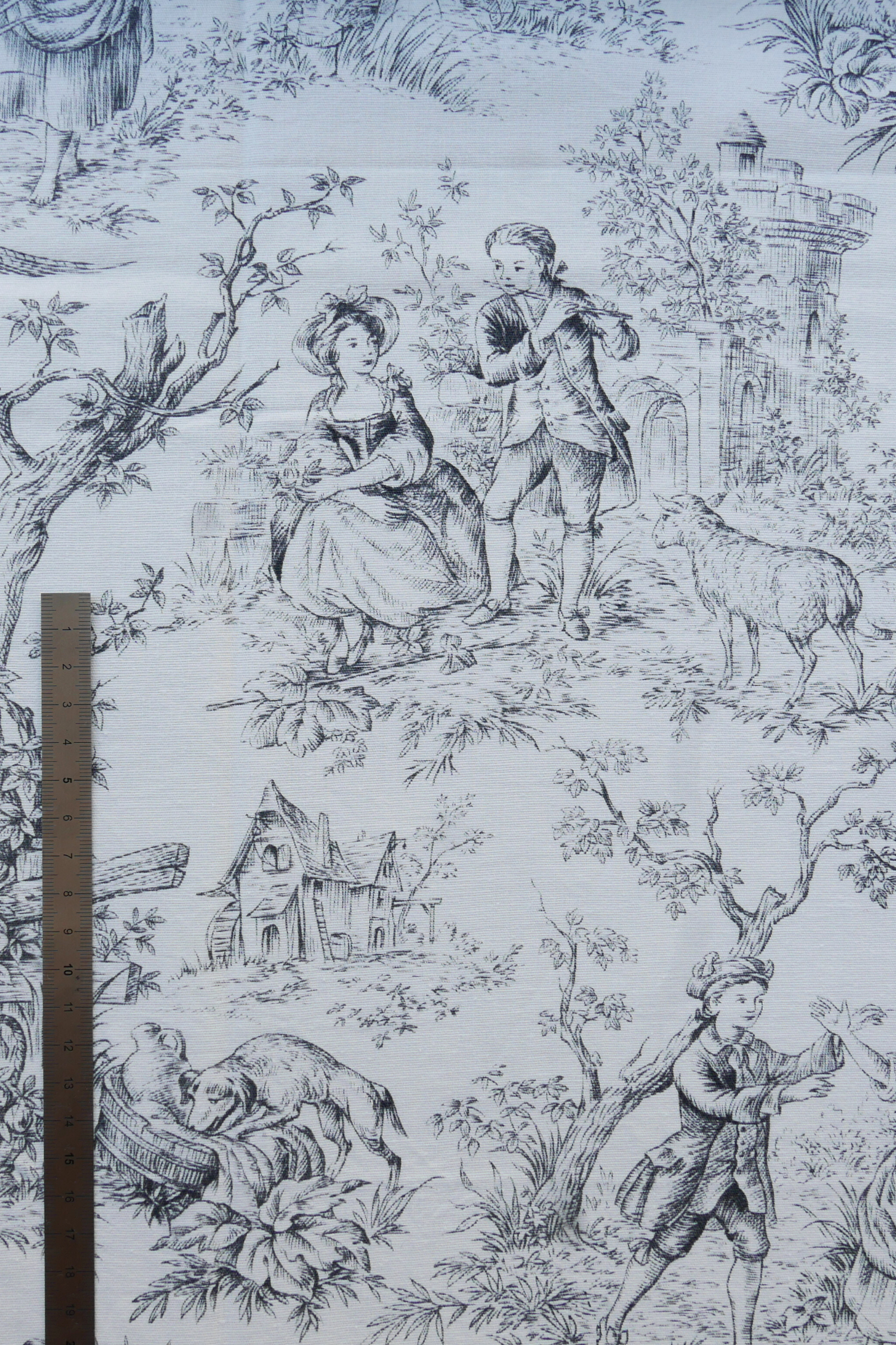Tissu - Coton - Fond blanc, imprimé toile de Jouy - 119 * 200 cm