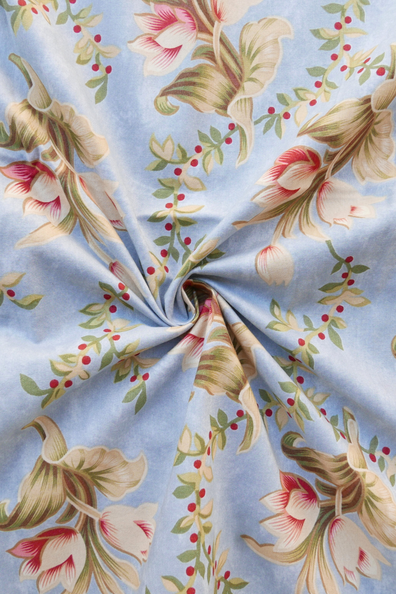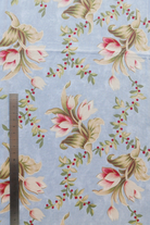 Tissu - Coton - Fond bleu avec des fleurs aux teintes roses et beiges - 105 * 112 cm