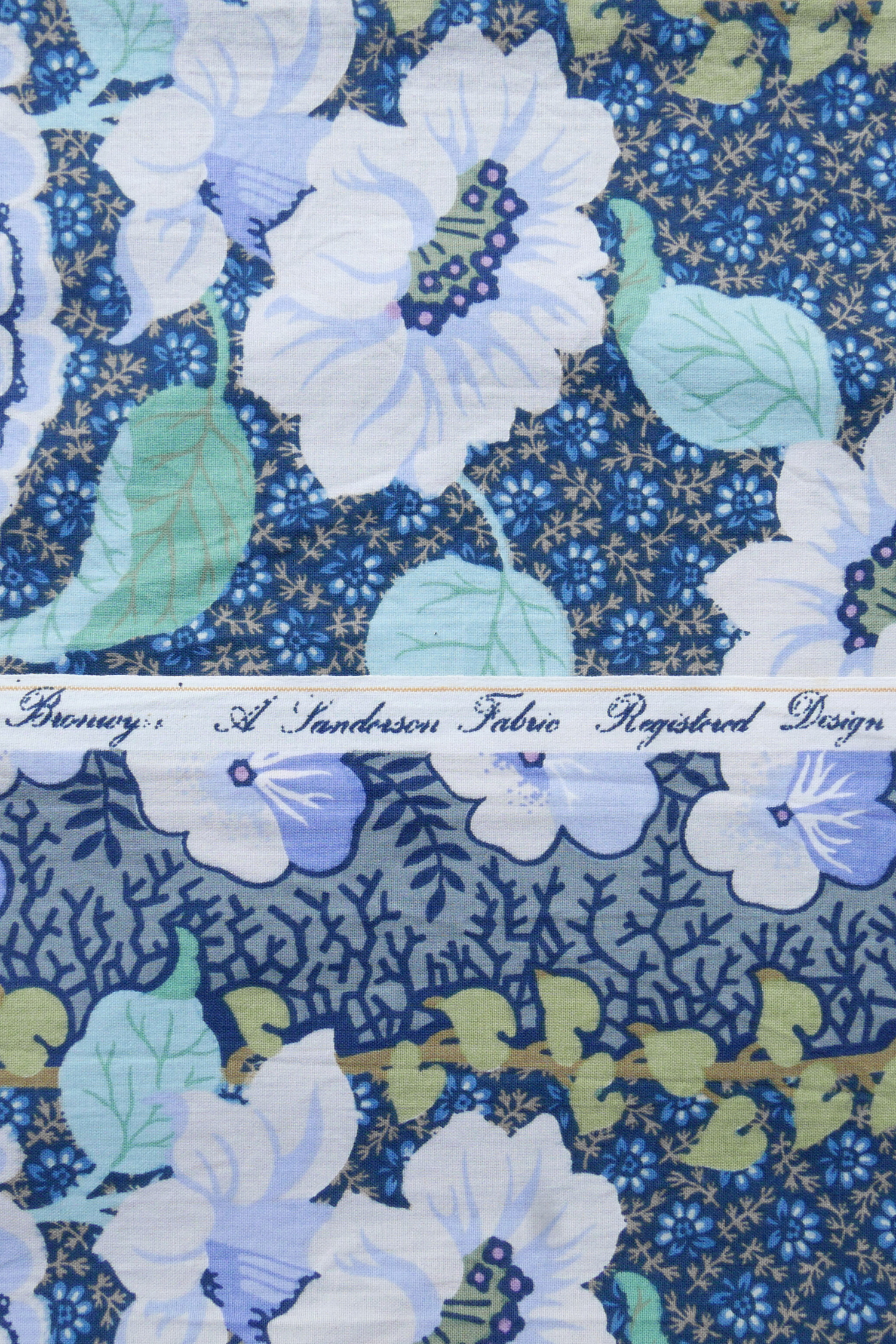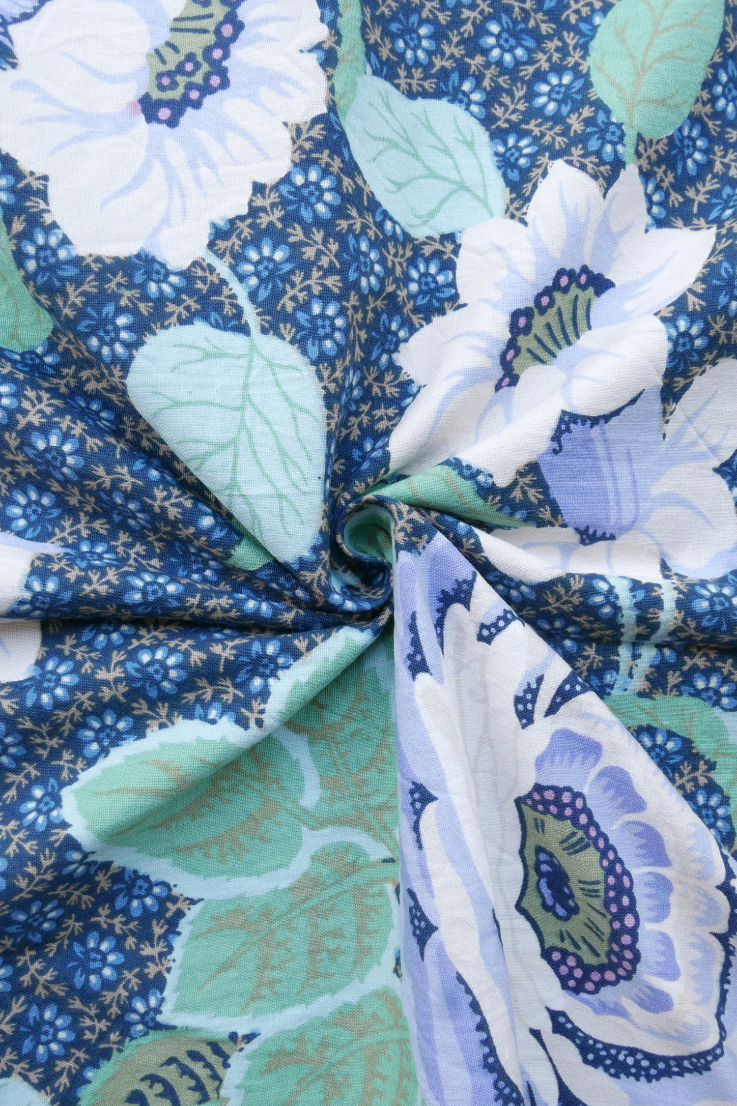 Tissu - Coton - Fond bleu avec des fleurs blanches et bleues - 125 * 211 cm