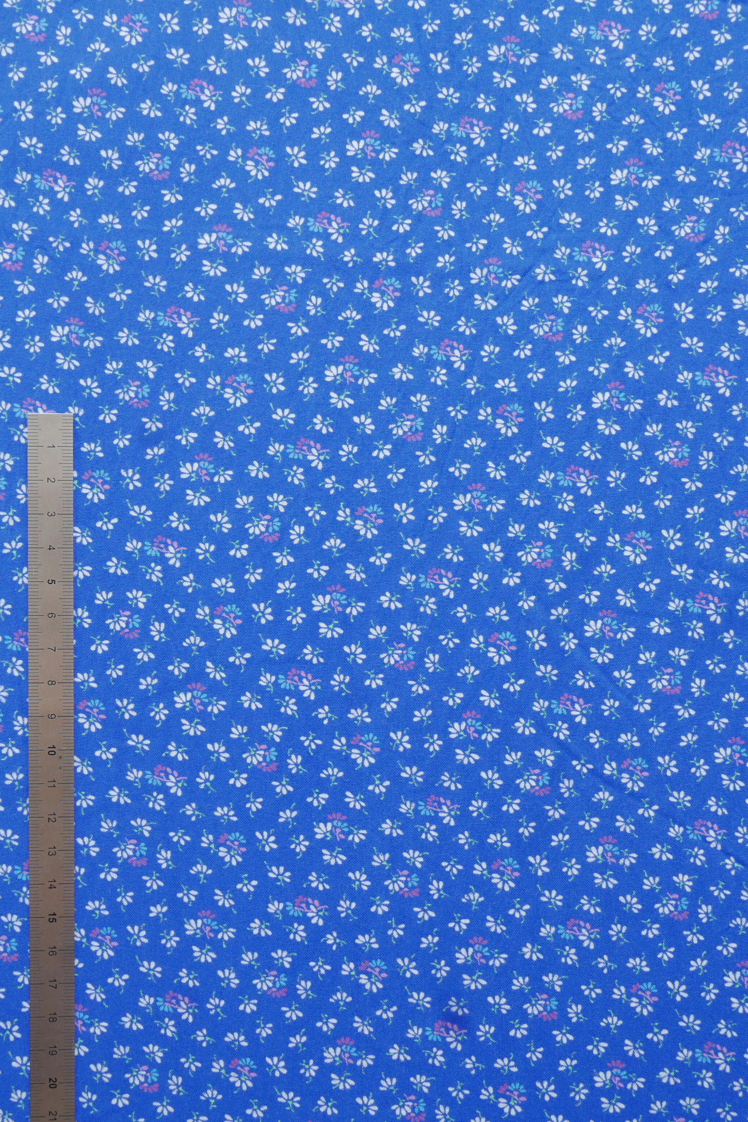 Tissu - Coton - Fond bleu avec des fleurs blanches et roses - 87 * 217 cm