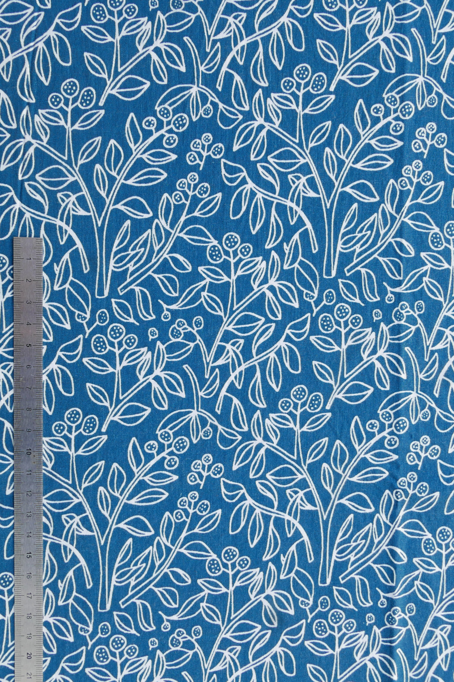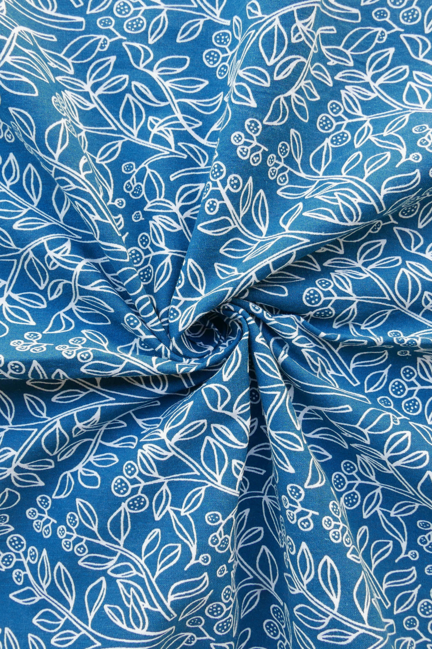 Tissu - Coton - Fond bleu avec des motifs blancs - 54 * 226 cm