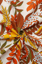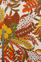 Tissu - Coton - Fond écru avec des fleurs blanches, orange et jaunes - 73 * 124 cm