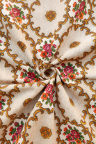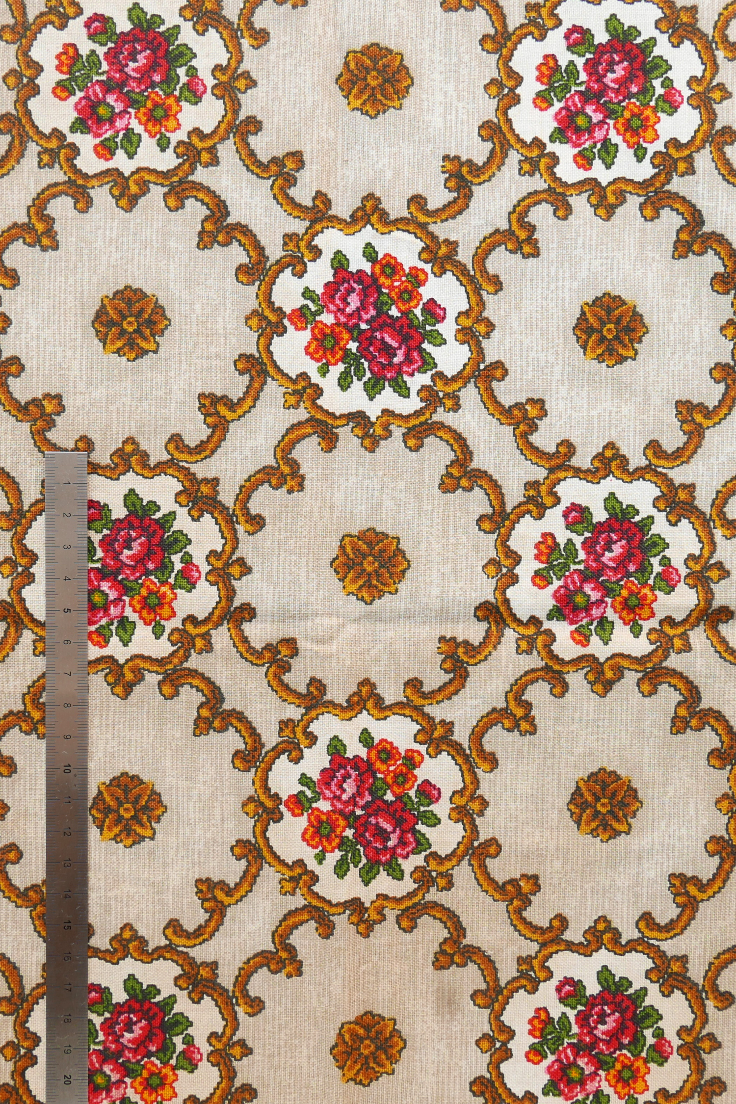 Tissu - Coton - Fond écru avec des motifs aux teintes roses et jaunes - 91 * 127 cm