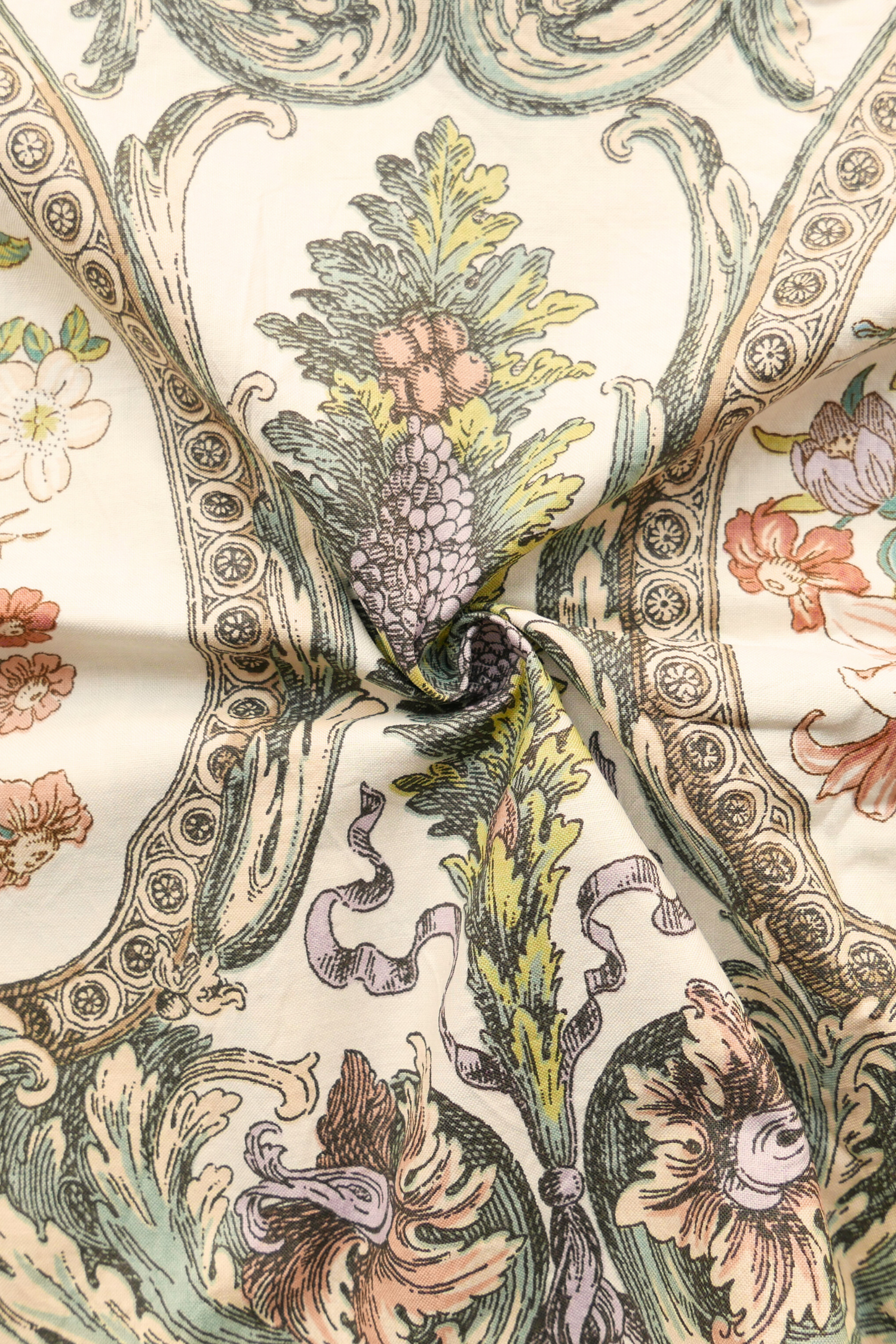 Tissu - Coton - Fond écru avec des motifs floraux - 119 cm * 246 cm