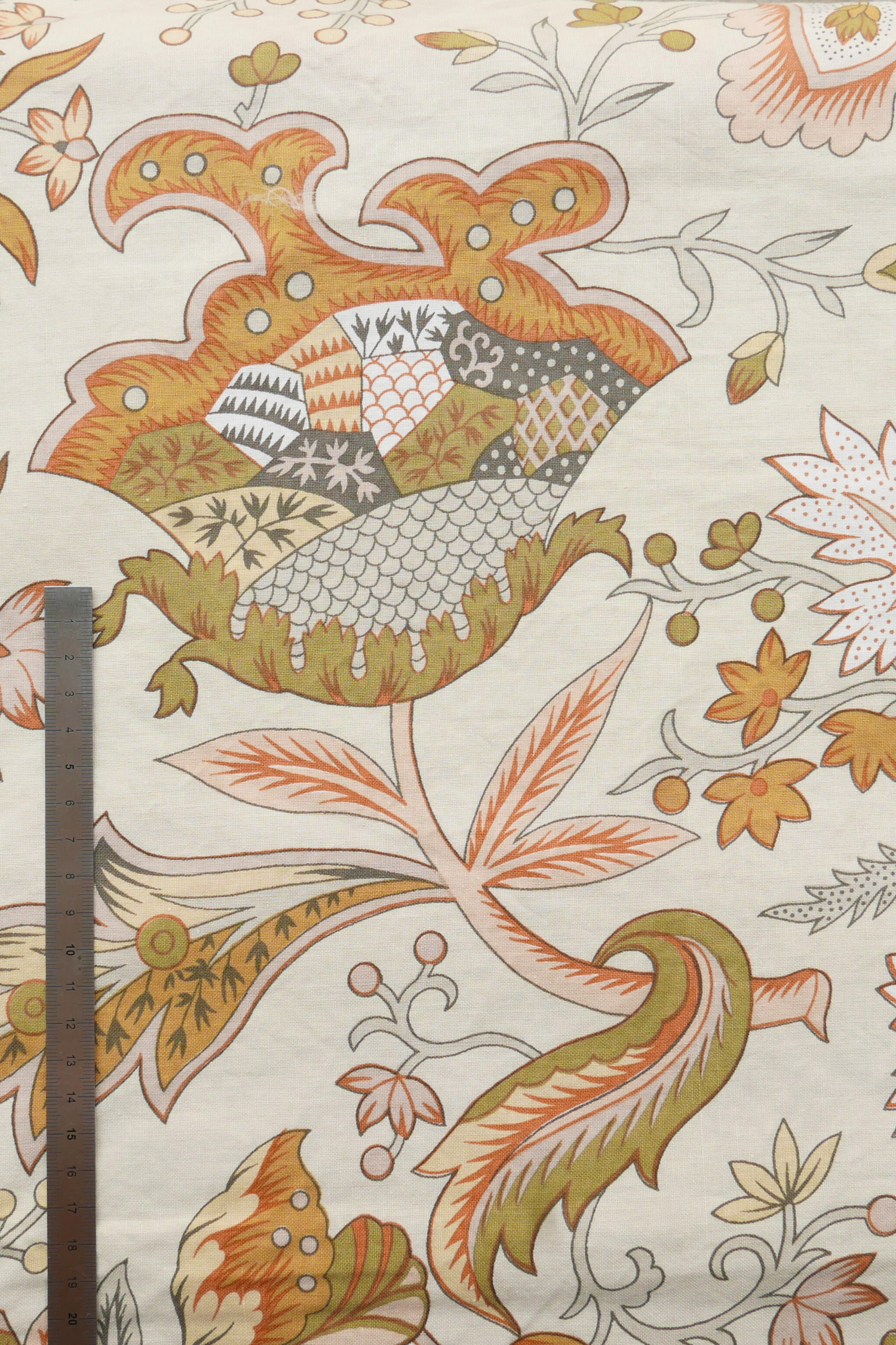 Tissu - Coton - Fond écru avec divers motifs aux teintes beiges, orangées et jaunes - 136 * 266 cm