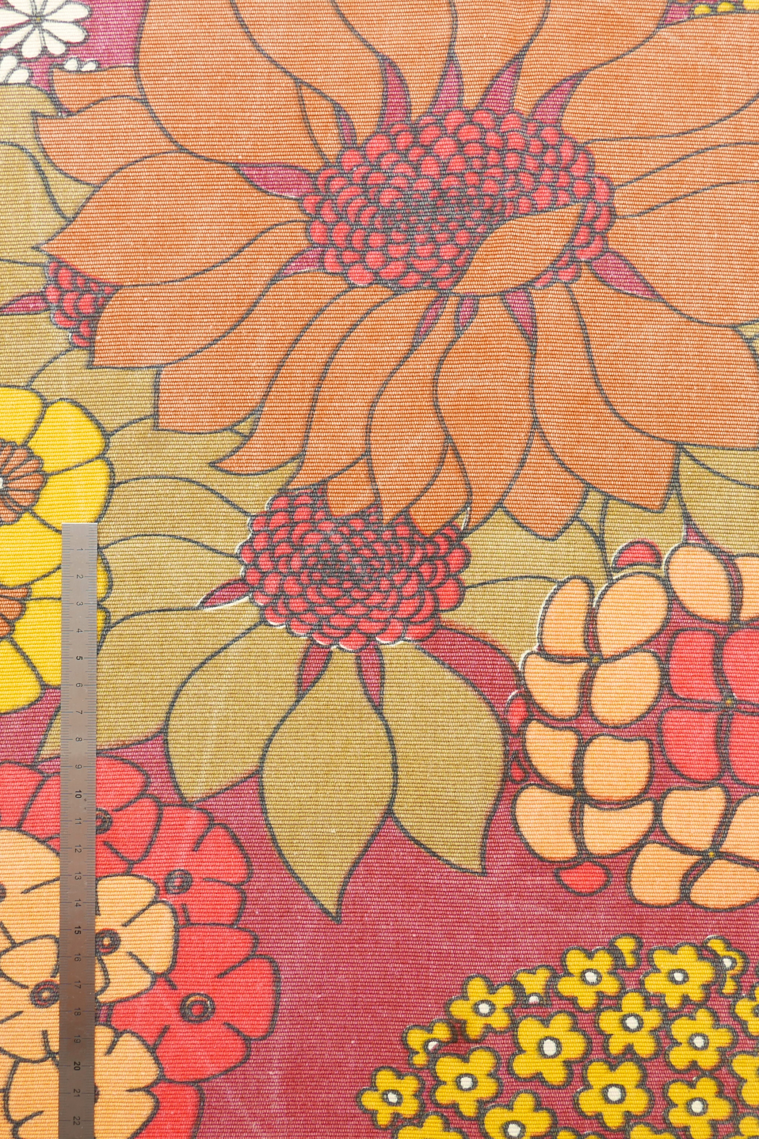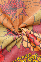 Tissu - Coton - Fond marron avec des fleurs jaunes, blanches , rouges et marron - 138 * 168 cm