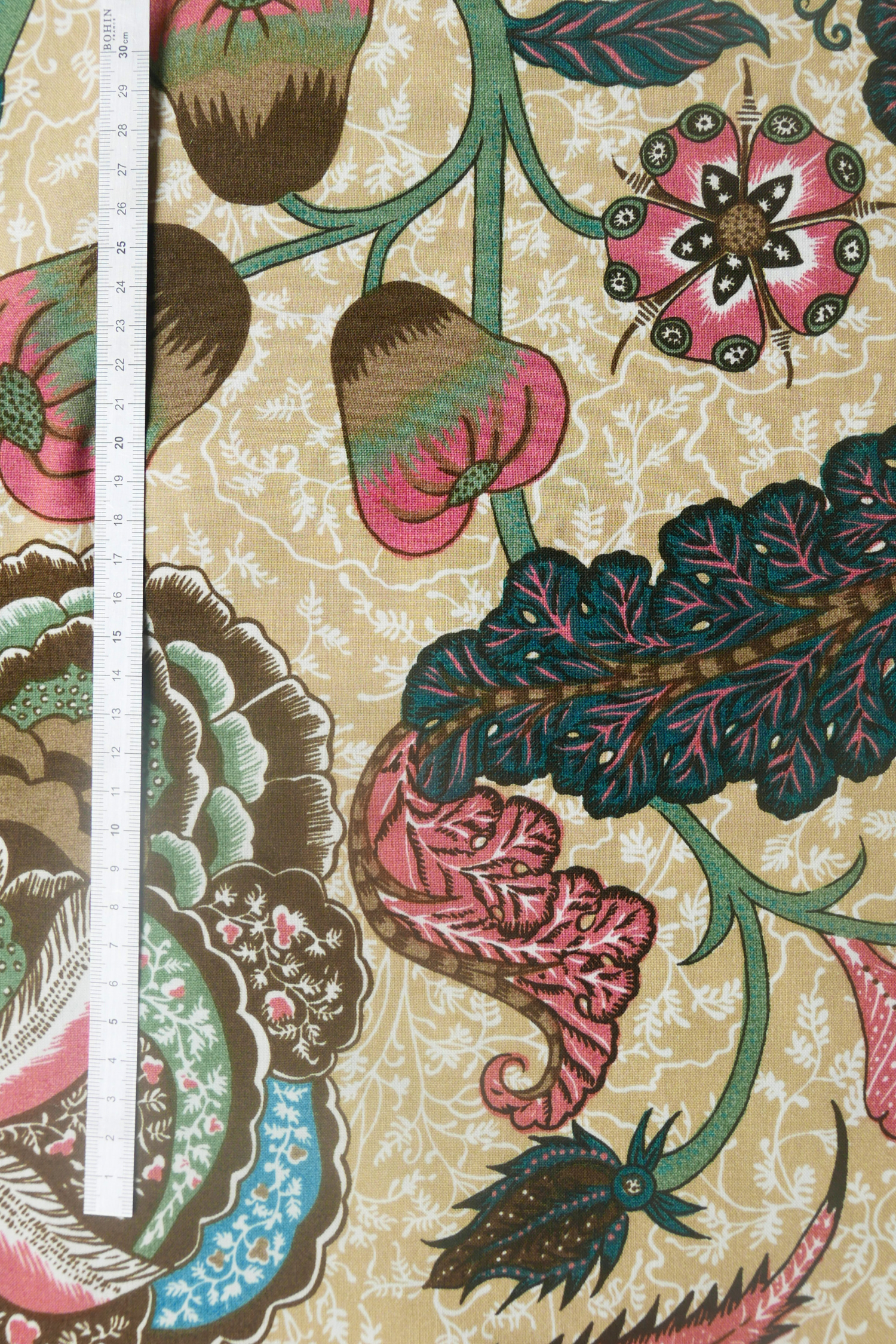 Tissu - Coton - Fond marron avec des fleurs roses - 125 cm * 226 cm