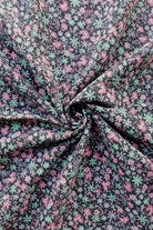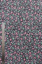 Tissu - Coton - Fond noir avec des fleurs vertes et roses - 77 * 367 cm