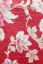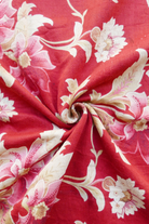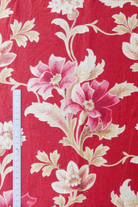 Tissu - Coton - Fond rouge avec des fleurs roses - 77 * 217 cm