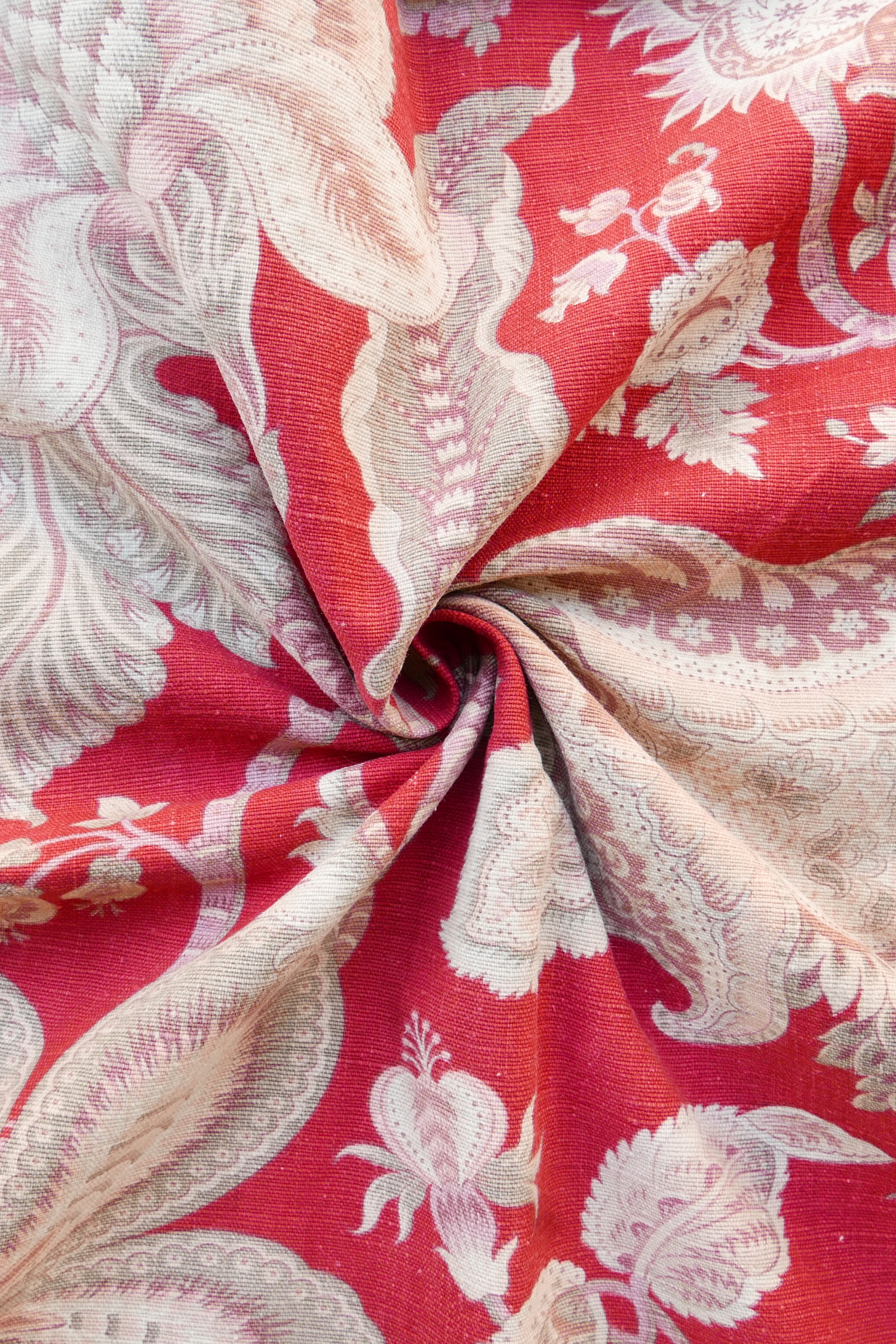 Tissu - Coton - Fond rouge avec des motifs écru - 63 * 163 cm