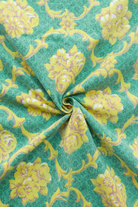 Tissu - Coton - Fond vert avec des fleurs jaunes