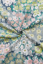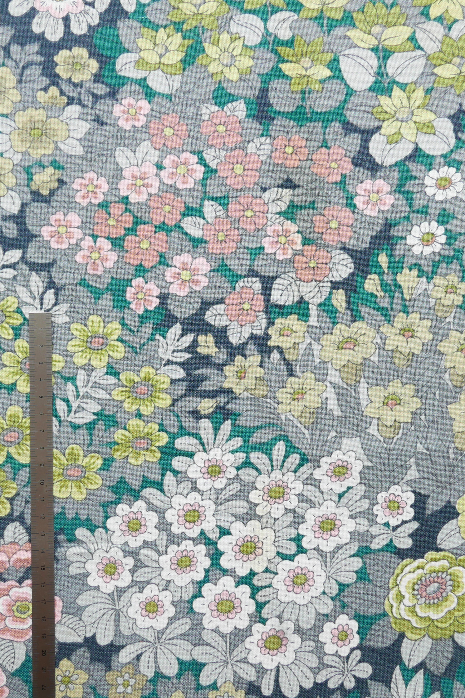 Tissu - Coton - Imprimé floral aux teinte vertes, roses et blanches - 77 * 147 cm