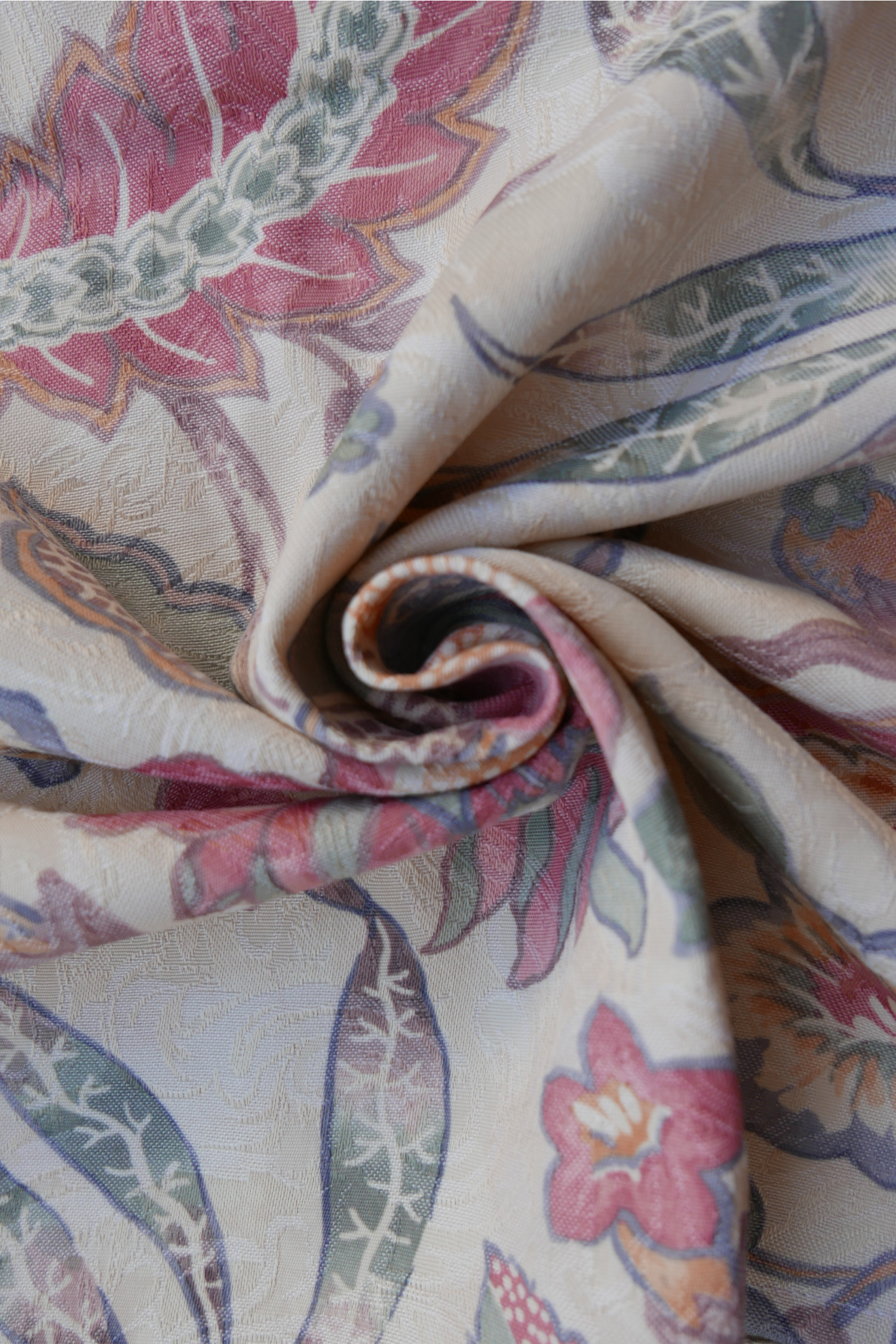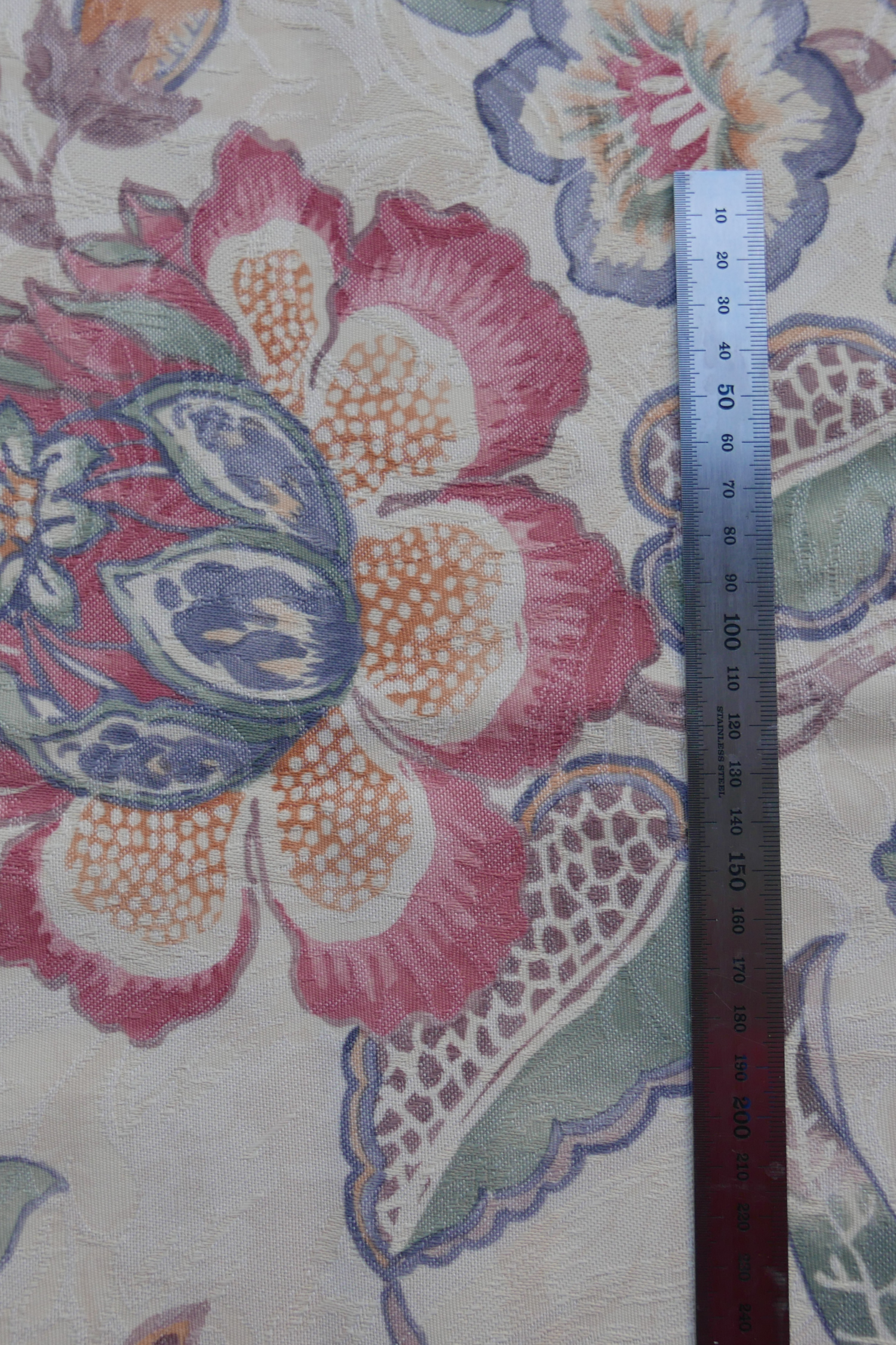 Tissu - Polyester - Ecru avec grandes fleurs colorées - 130 cm * 86 cm
