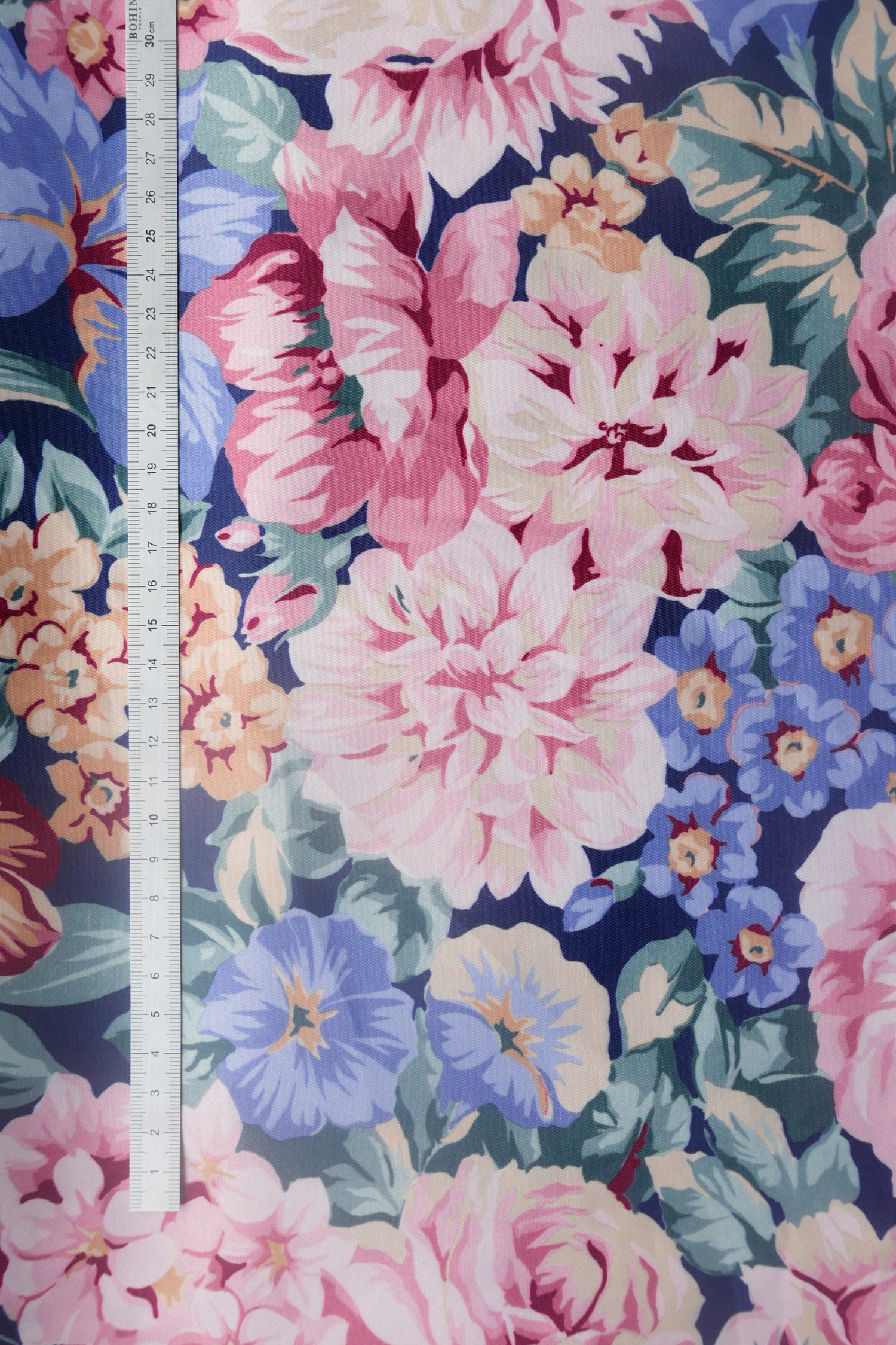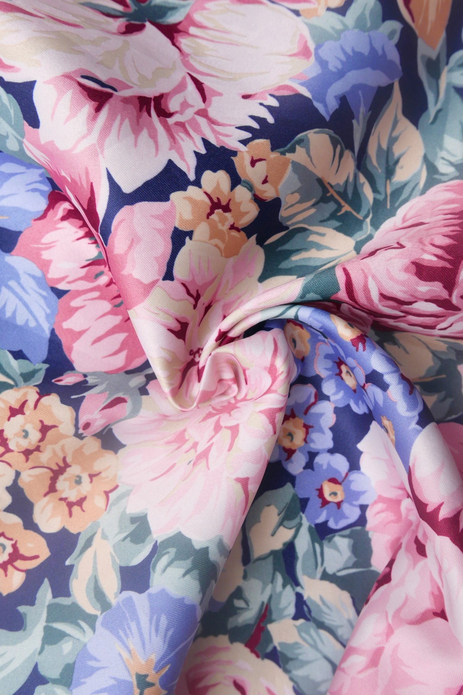 Tissu - polyester - Effet satiné - Fond bleu avec des fleurs roses - 68 cm * 210 cm