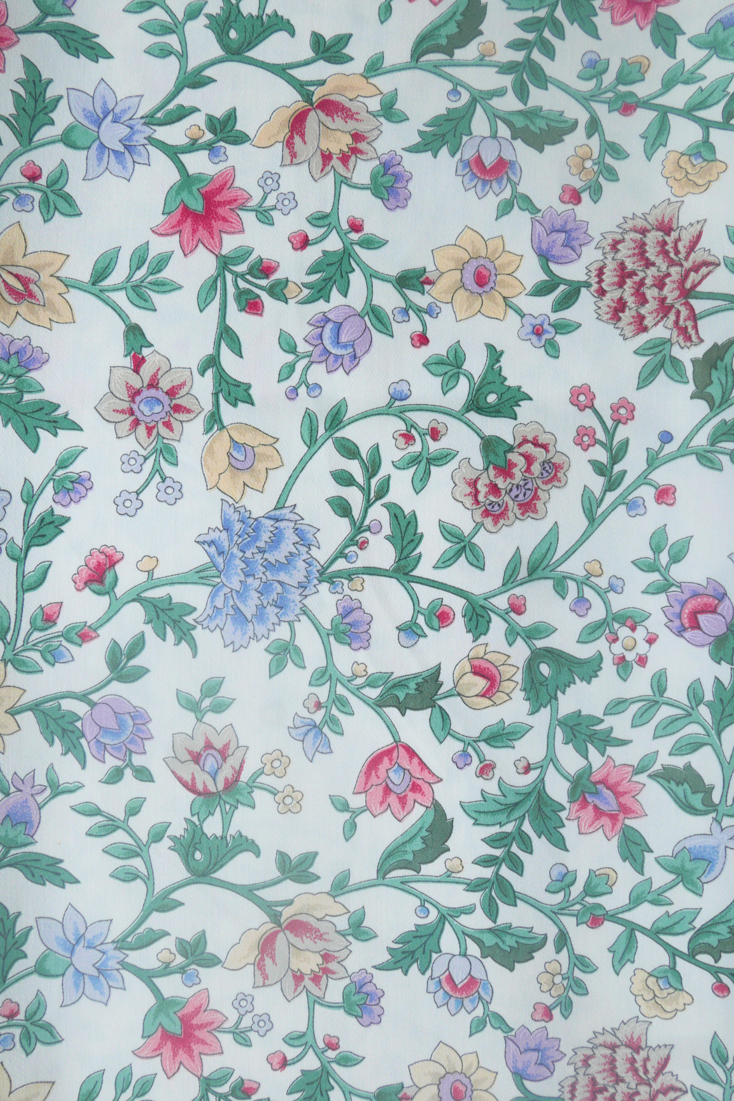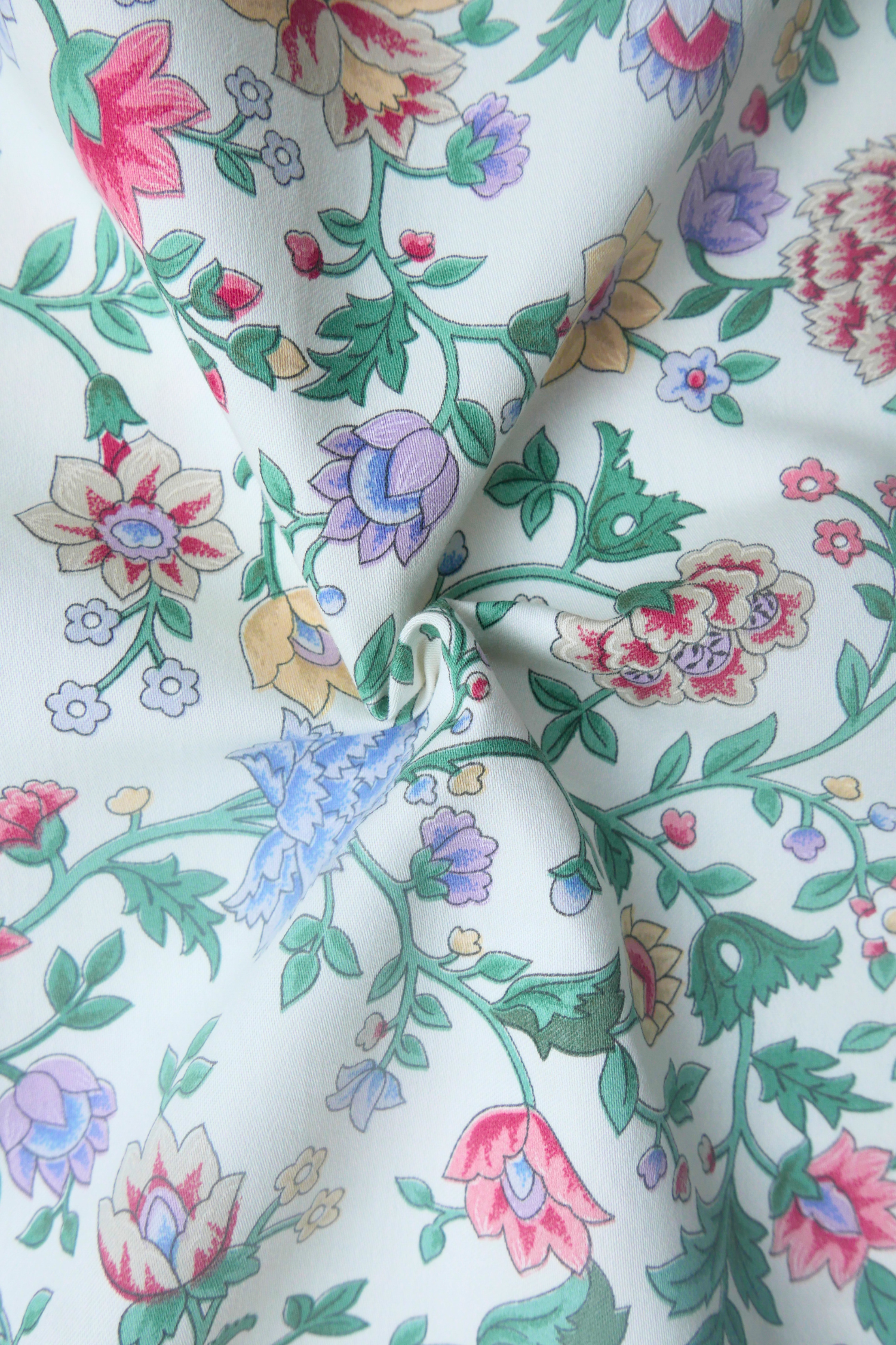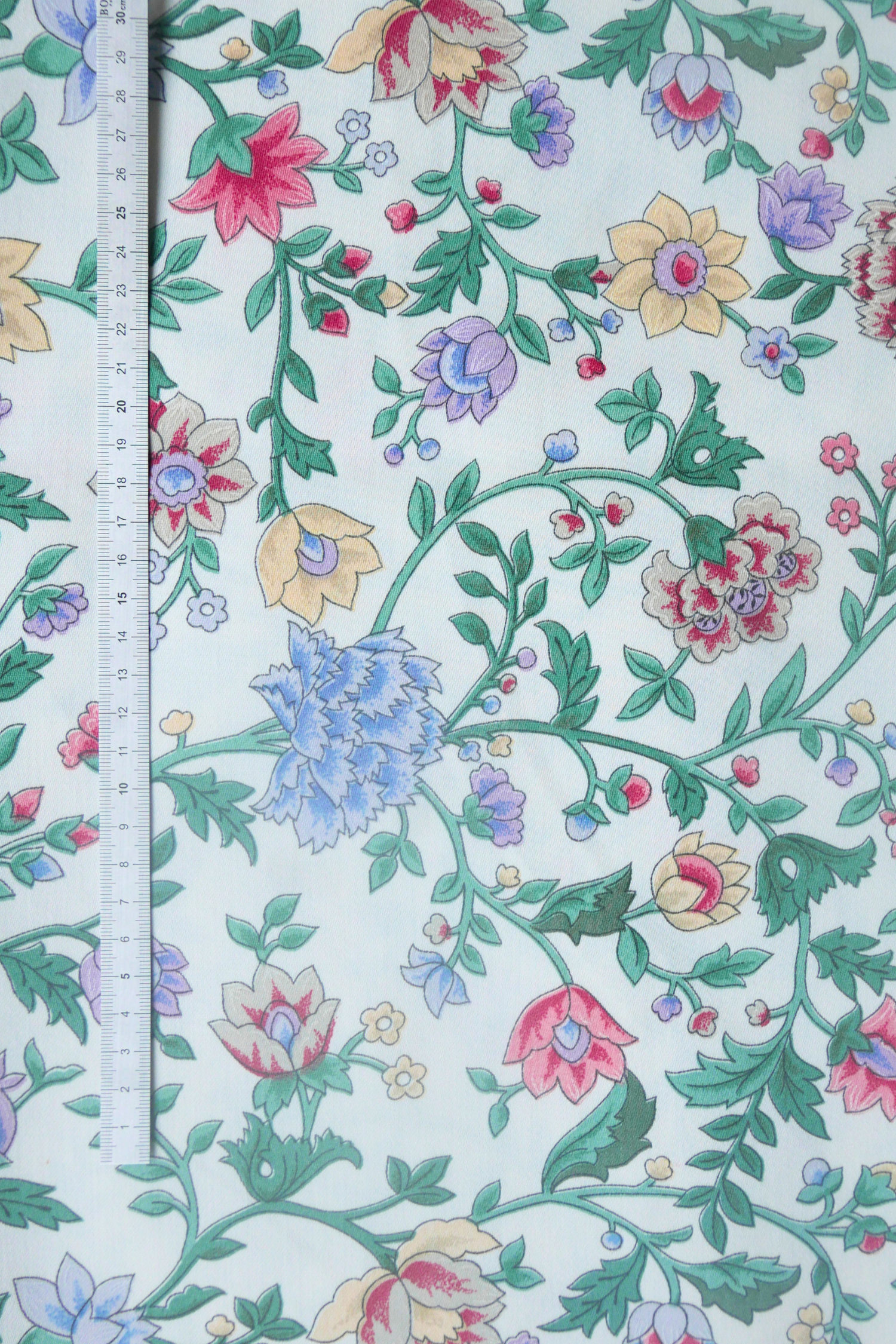 Tissu - Polyester - Fond beige avec des fleurs aux teintes bleues et vertes - 135 cm * 195 cm