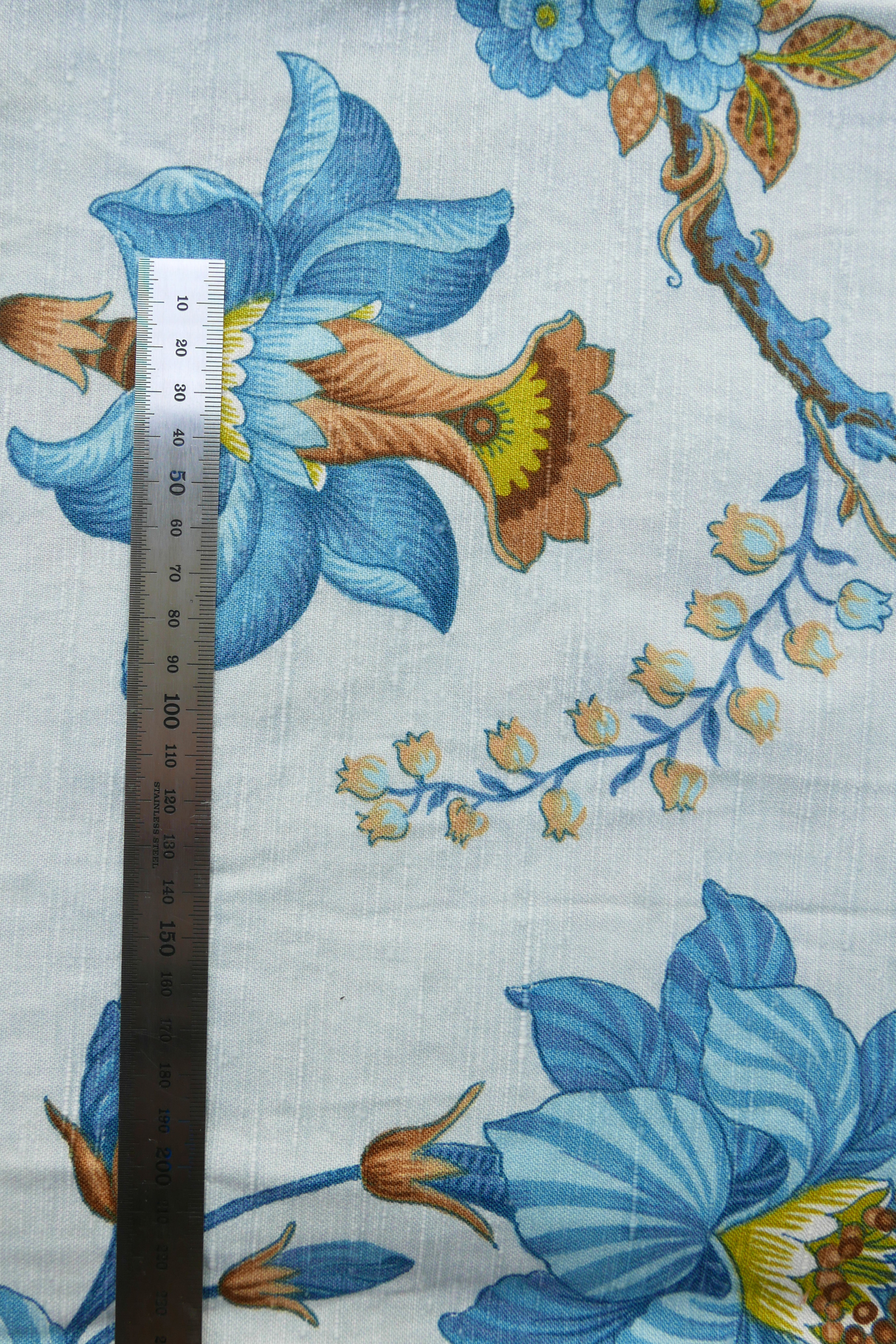 Tissu - Polyester - Fond bleu avec des fleurs aux teintes bleues - 125 cm * 336 cm