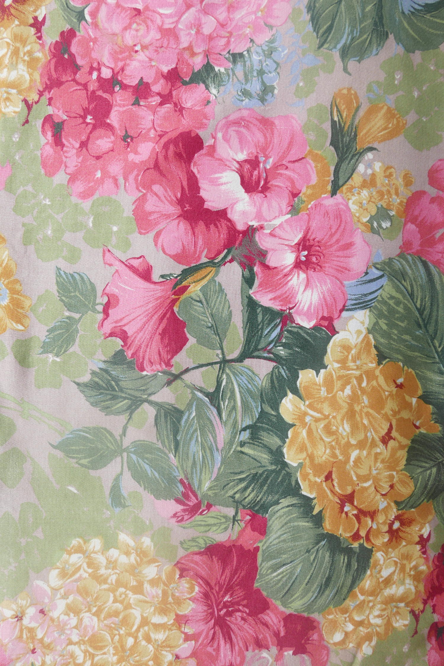 Tissu - Polyester - Fond mauve avec des fleurs aux teintes roses - 235 cm * 280 cm