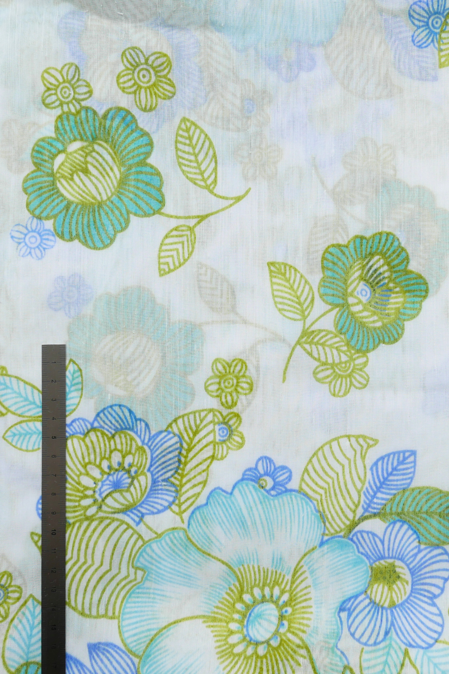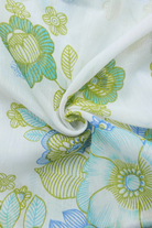 Tissu - Polyester - Voile - Fond blanc avec des fleurs bleues et vertes - 156 * 296 cm