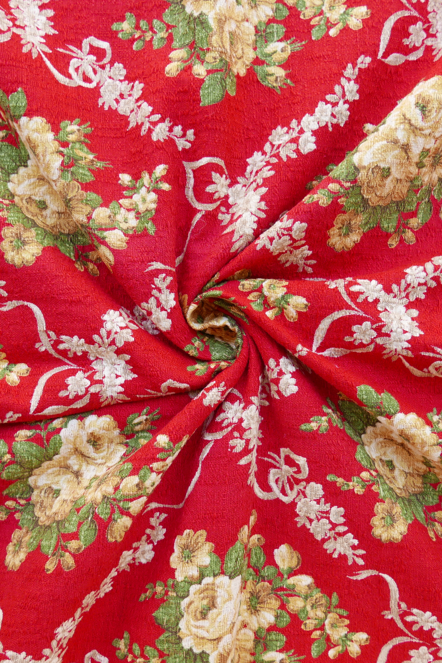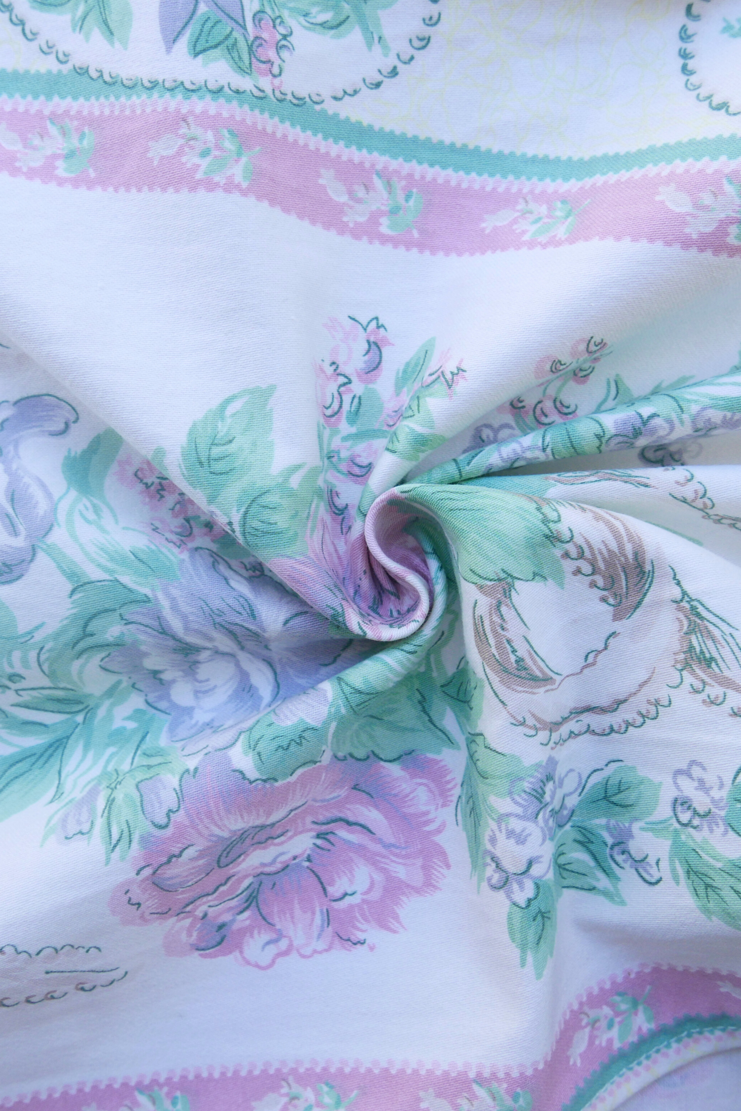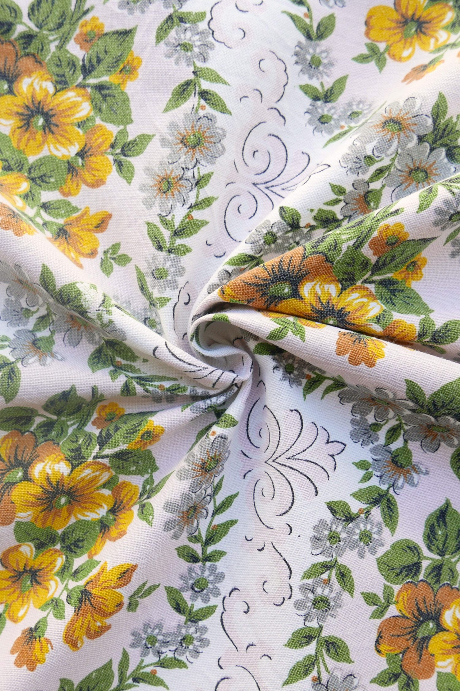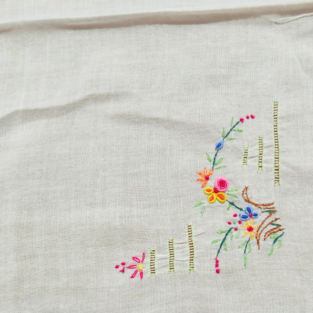 Tous nos tissus sont issus de la revalorisation textile : draps et rideaux anciens, nappes vintage, coupons oubliés…