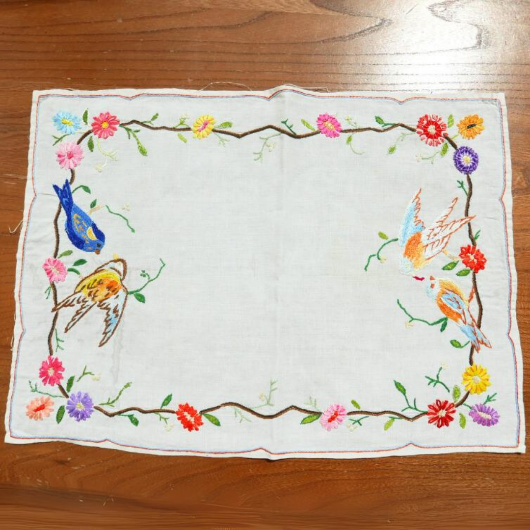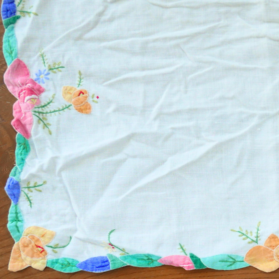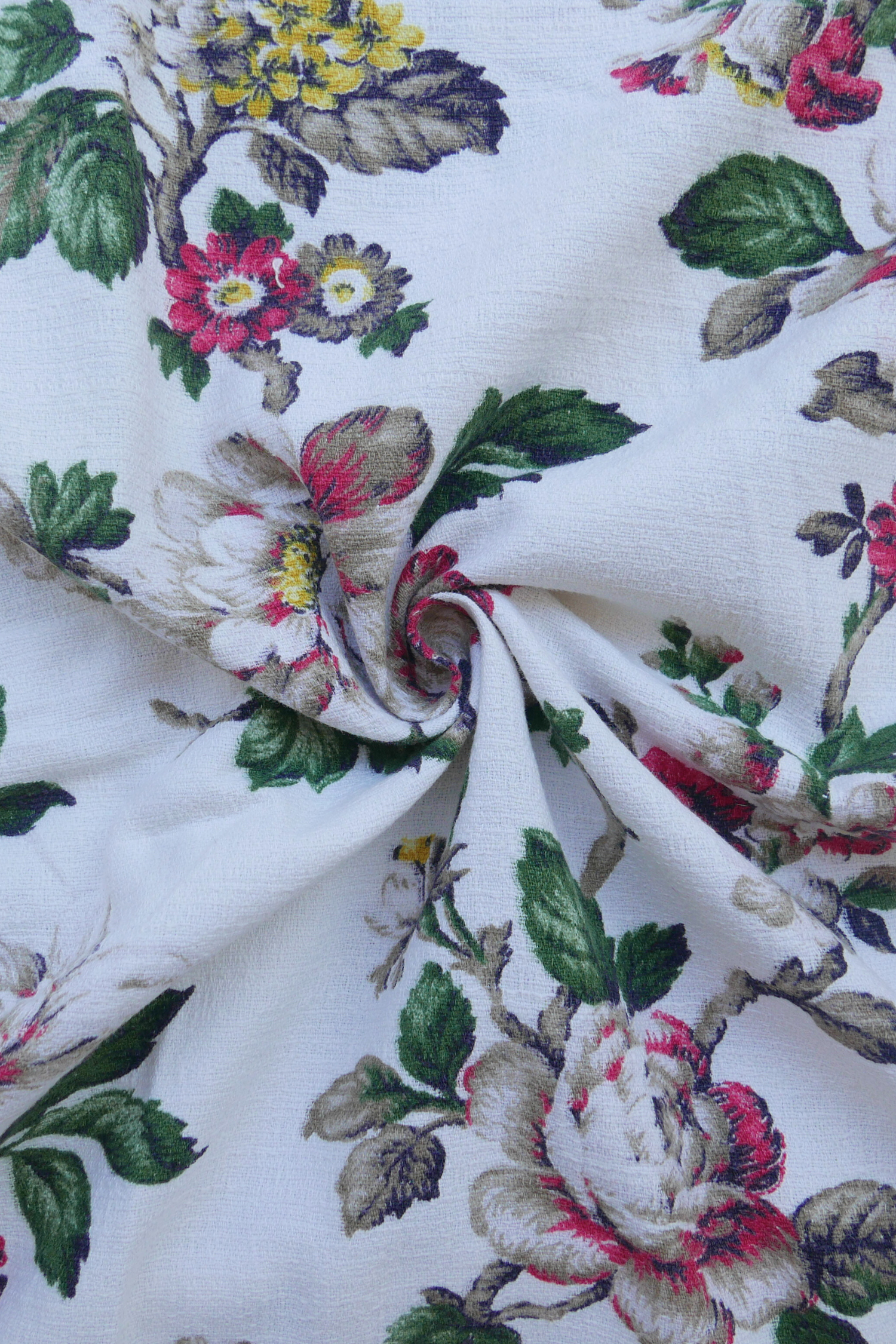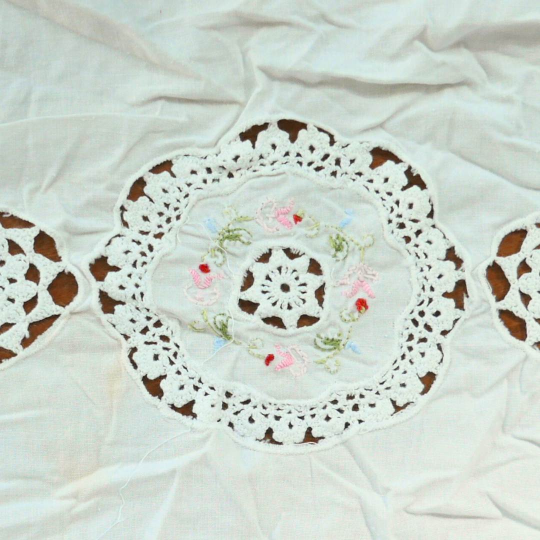 Tous nos tissus sont issus de la revalorisation textile : draps et rideaux anciens, nappes vintage, coupons oubliés…
