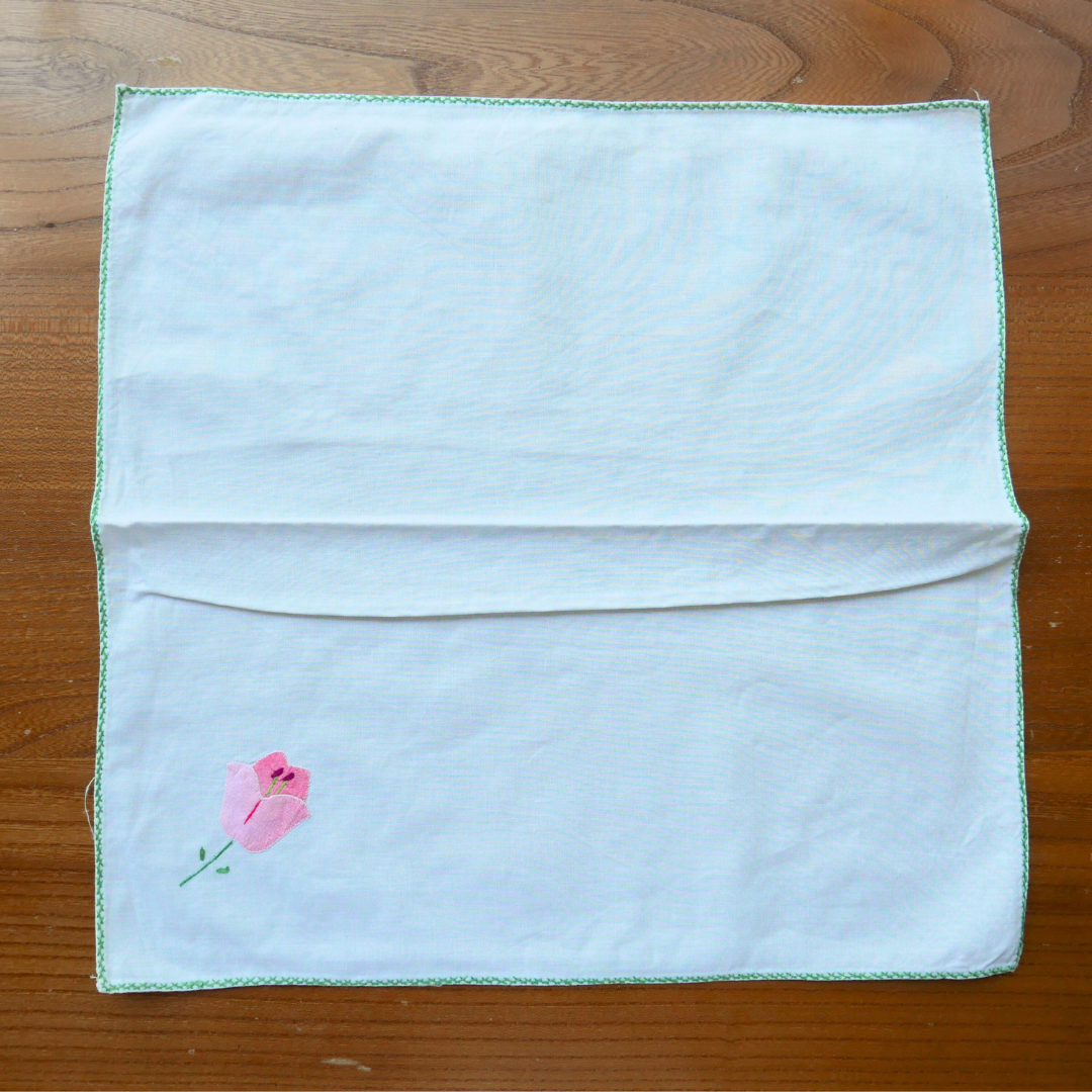 Tous nos tissus sont issus de la revalorisation textile : draps et rideaux anciens, nappes vintage, coupons oubliés…