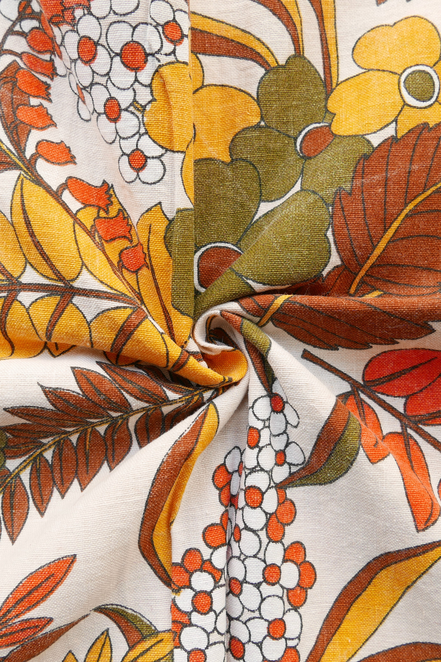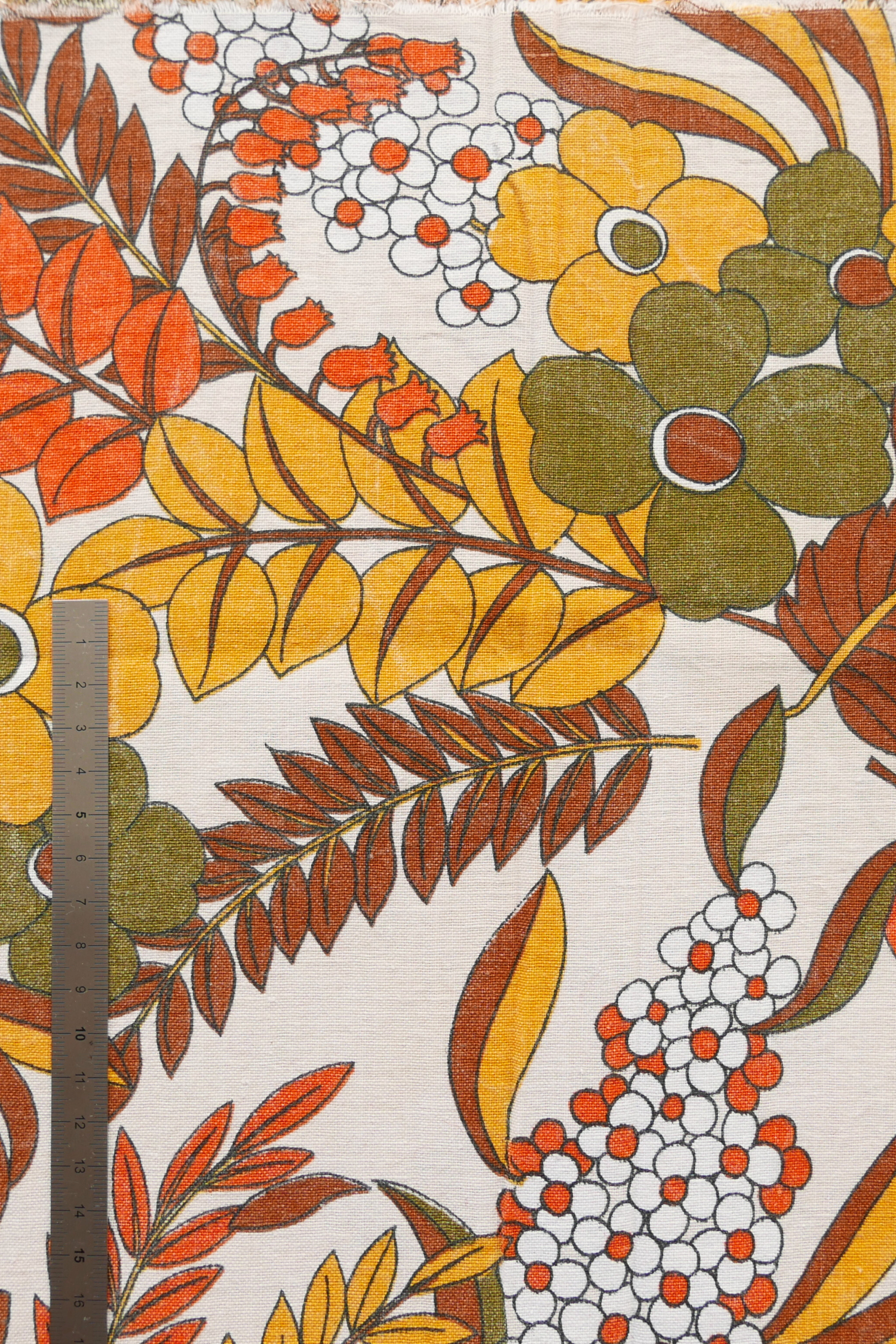 Tissu - Coton - Fond beige avec des fleurs aux teintes orangées - 47 cm * 154 cm