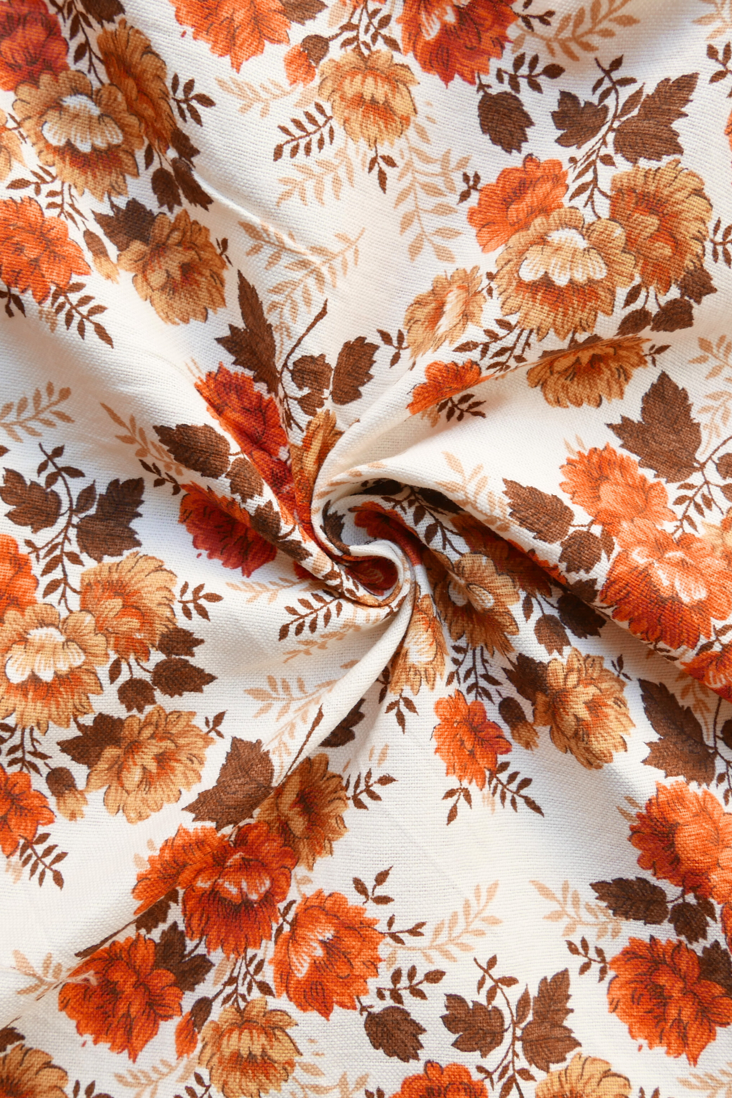 Tissu - Coton - Fond beige avec des fleurs aux teintes orangées et marron - 86 cm * 194 cm