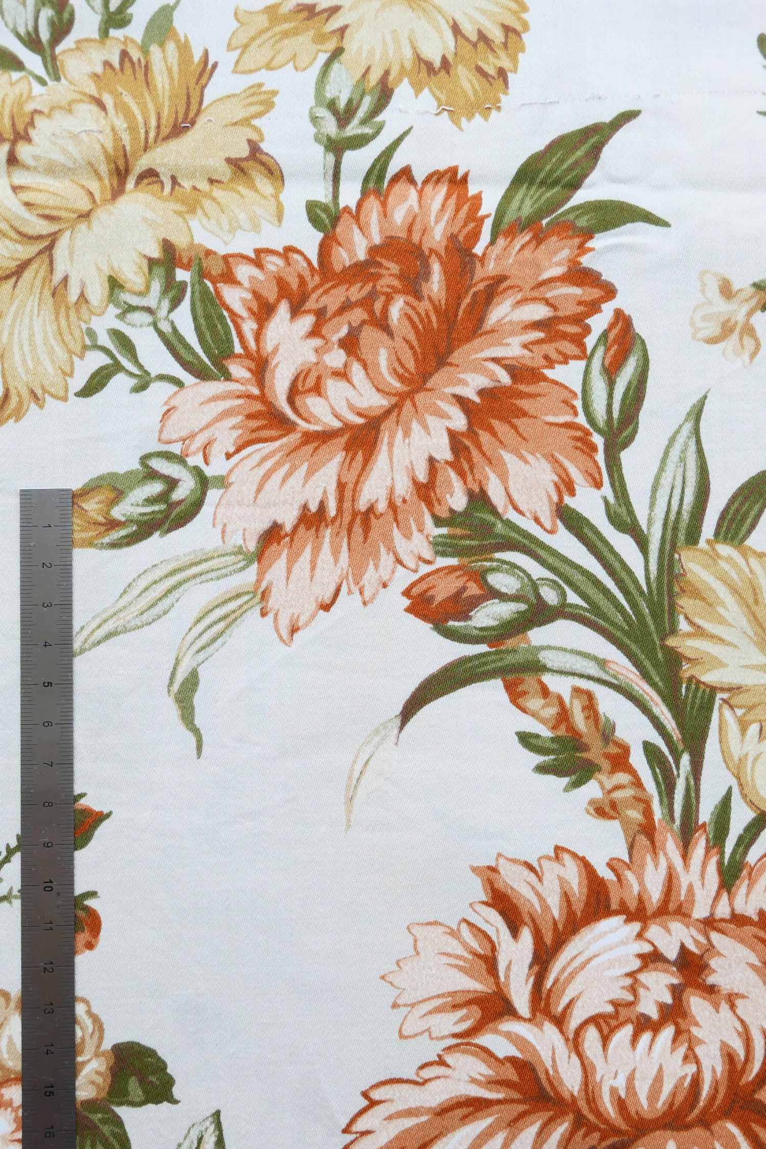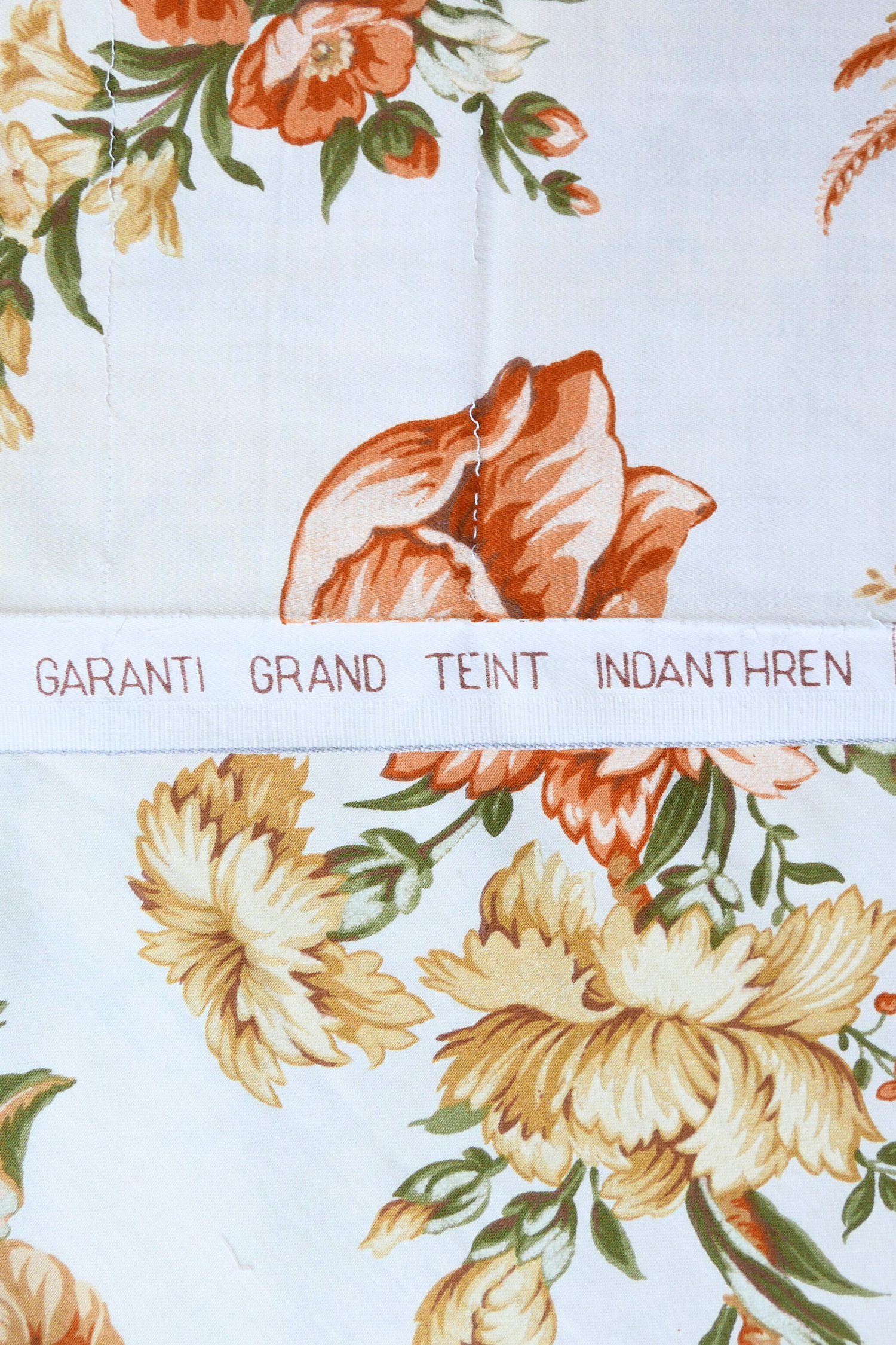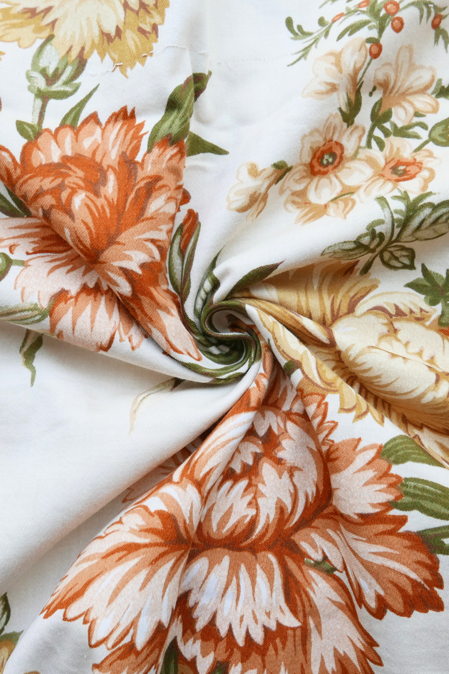 Tissu - Coton - Fond beige avec des fleurs aux teintes orangées - 130 cm * 250 cm
