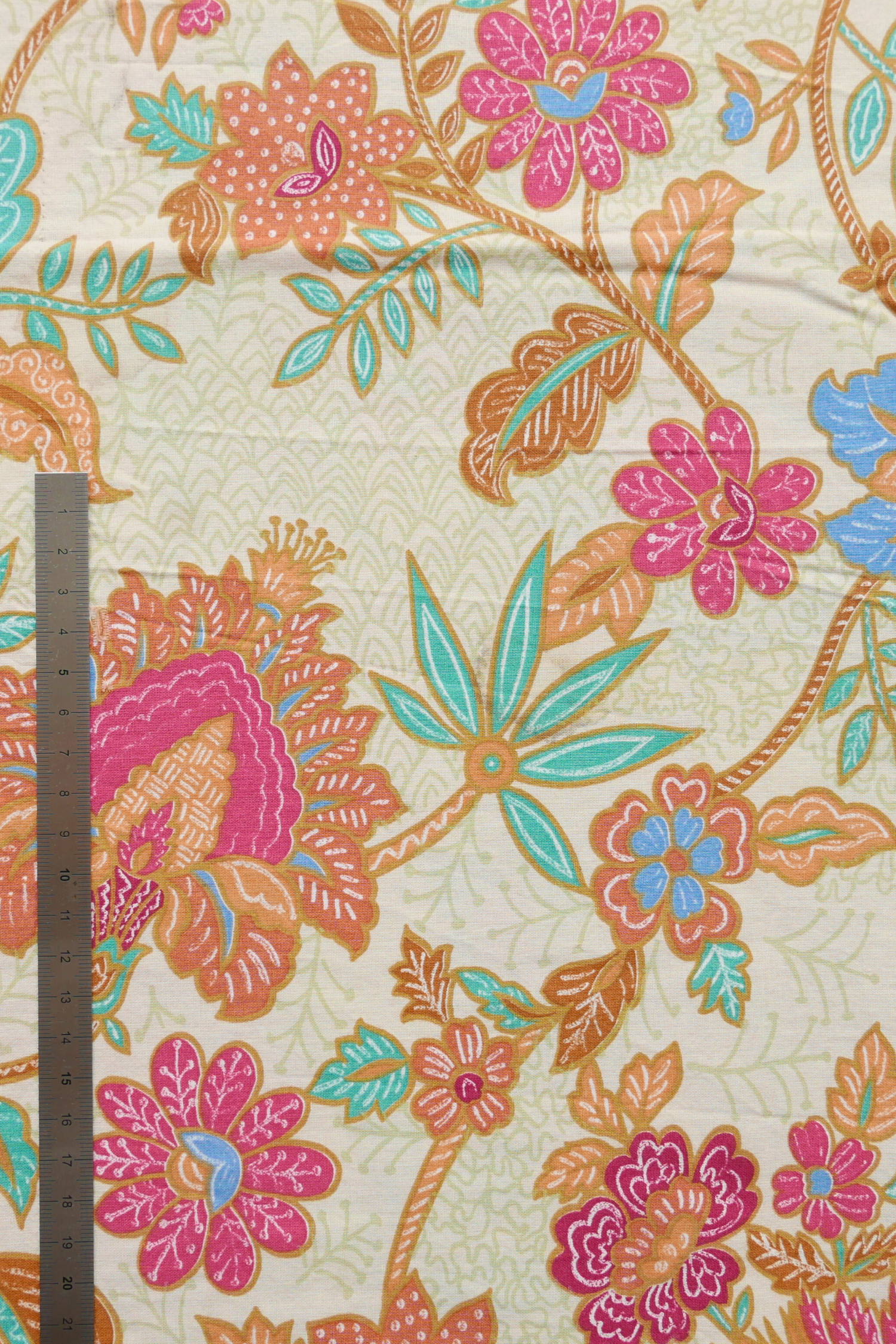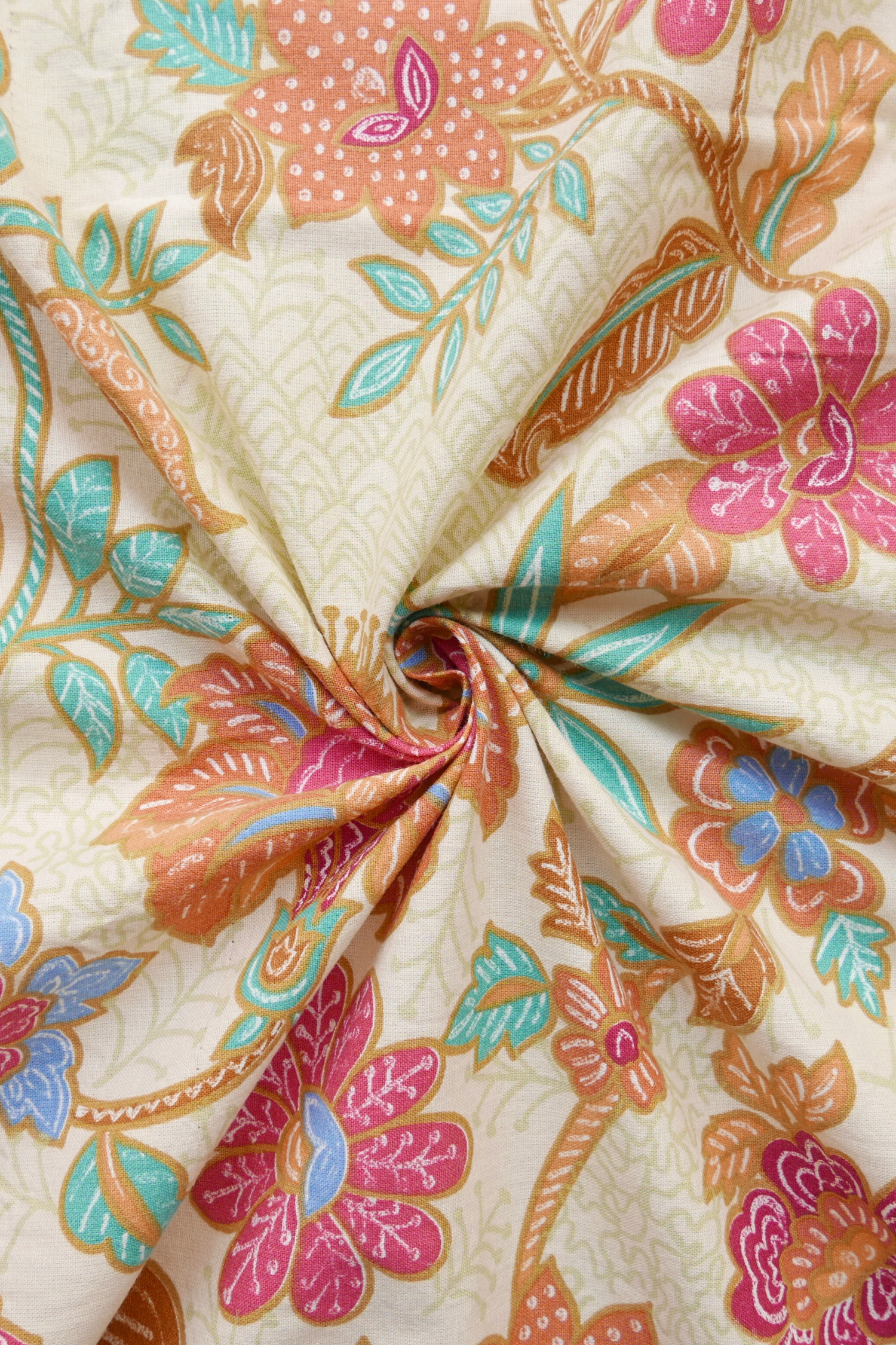 Tissu - Coton - Fond beige avec des motifs floraux aux teintes roses et marron - 195 cm * 200 cm